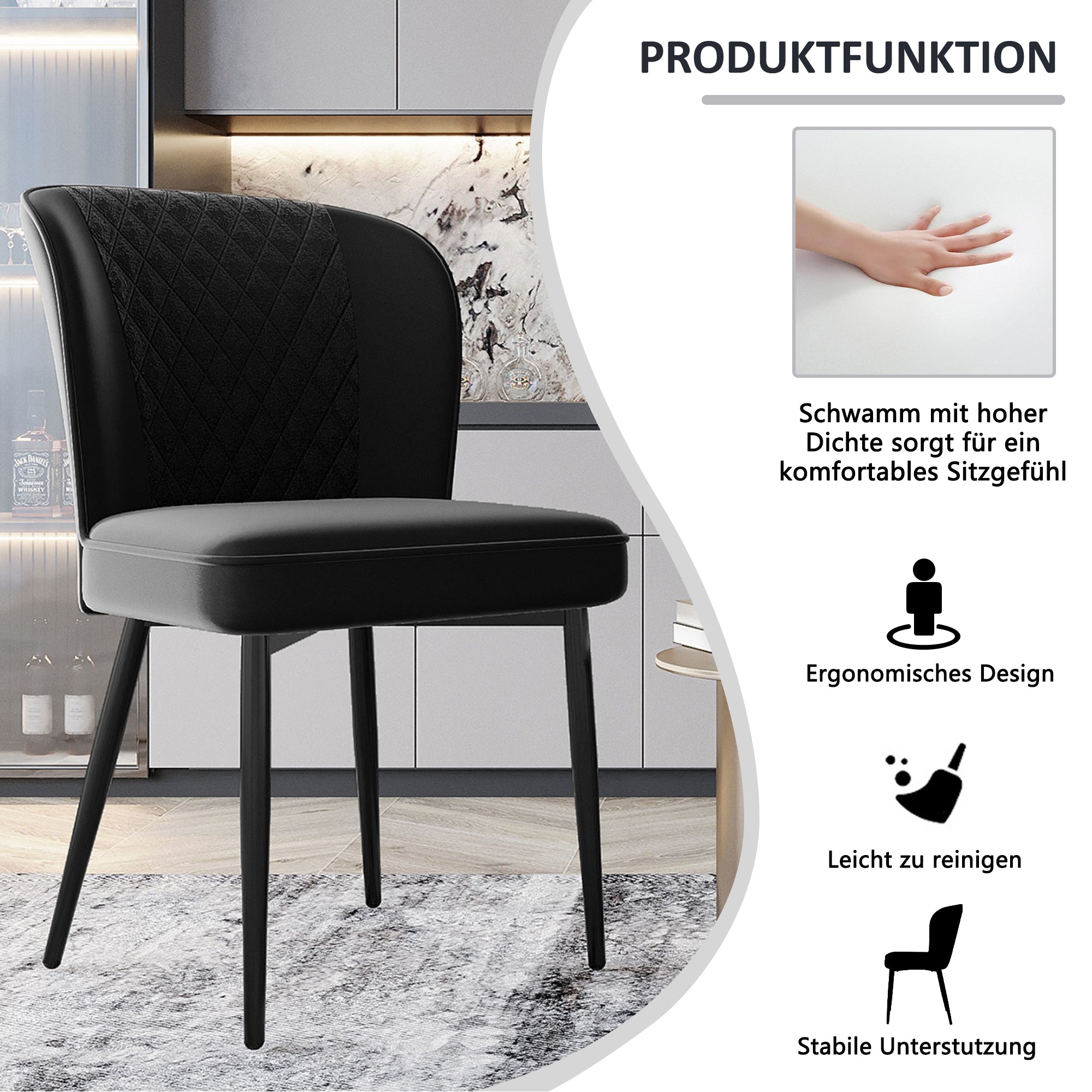 Dining Chair, Upholstered Design with Backrest, Velvet & Metal, Black (Set of 6)