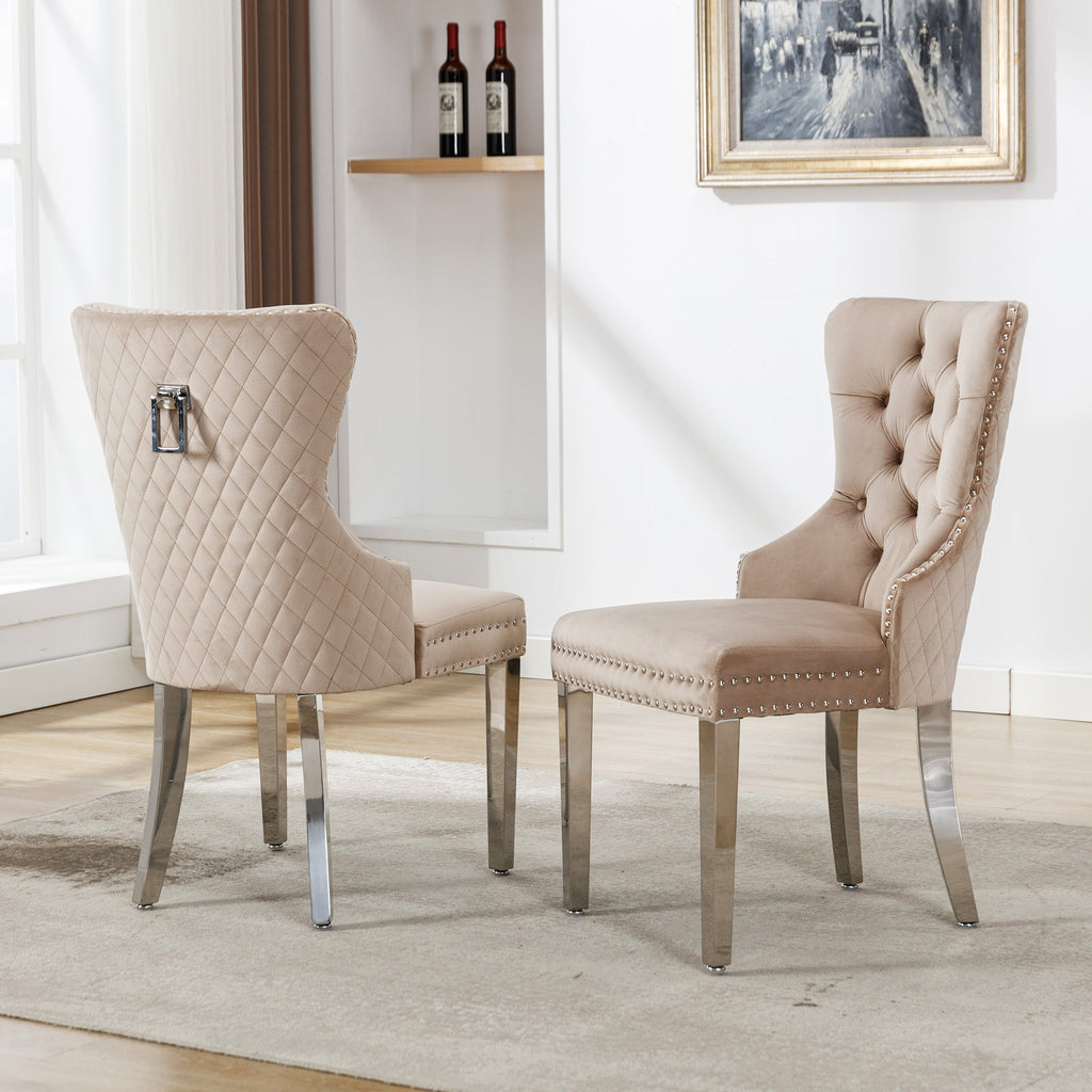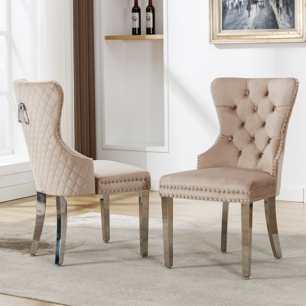 Dining Chair - Upholstered, Nailhead Trim, Metal Legs, Velvet, Beige