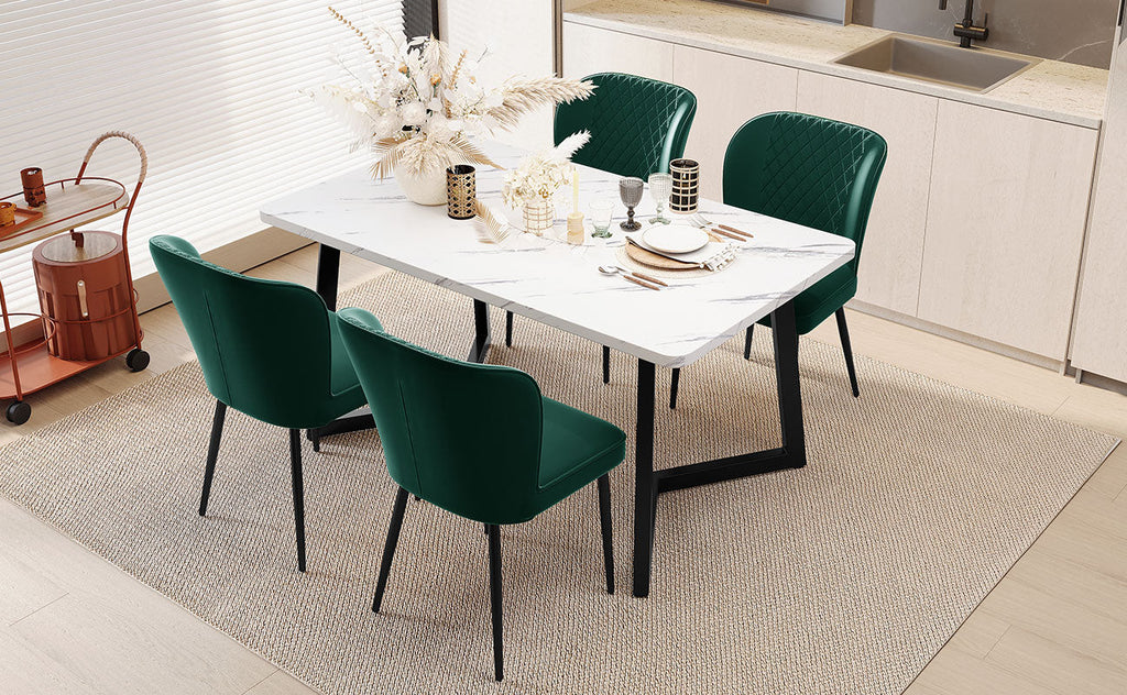 Dining Chair, Upholstered Velvet with Metal Frame, Dark Green (Set of 4)