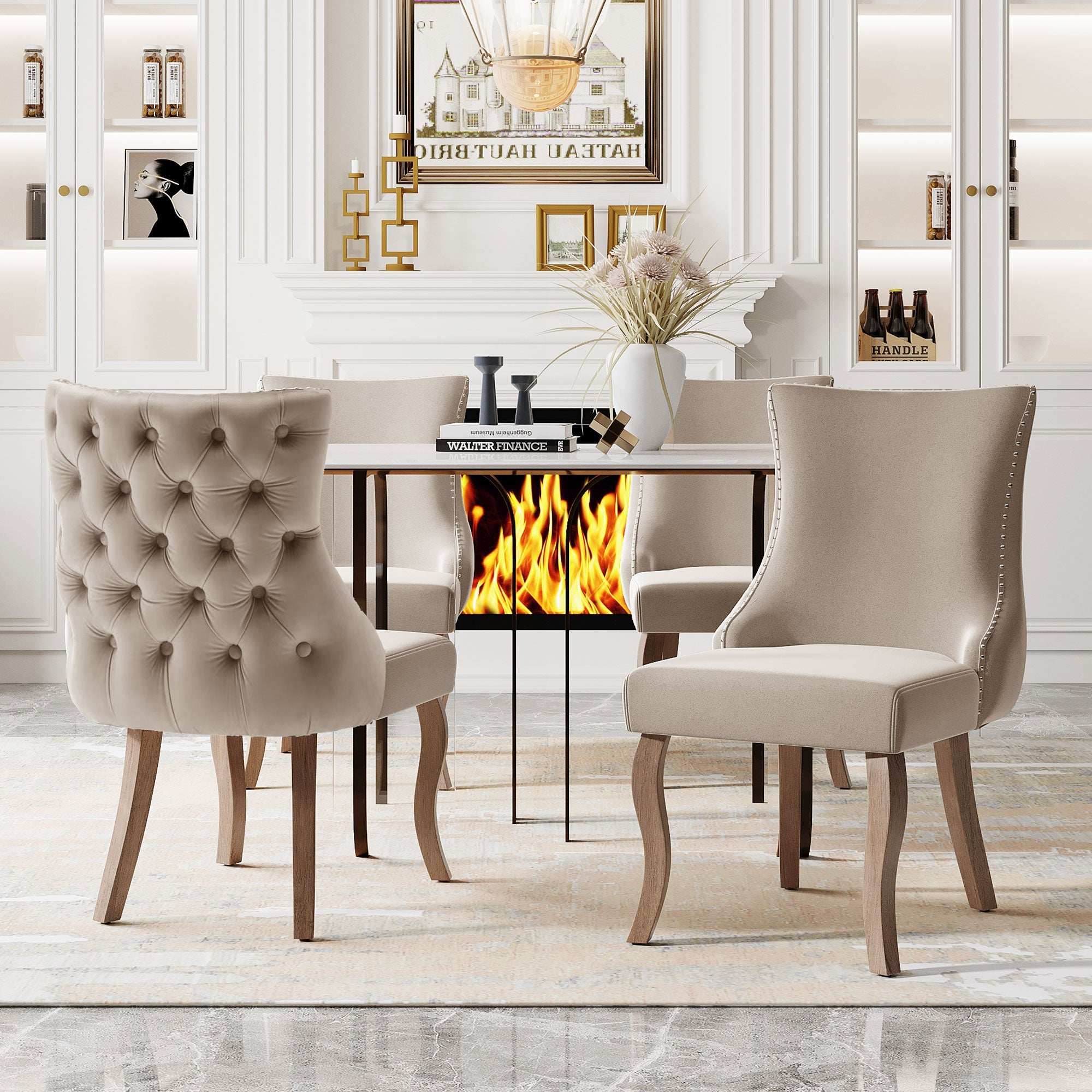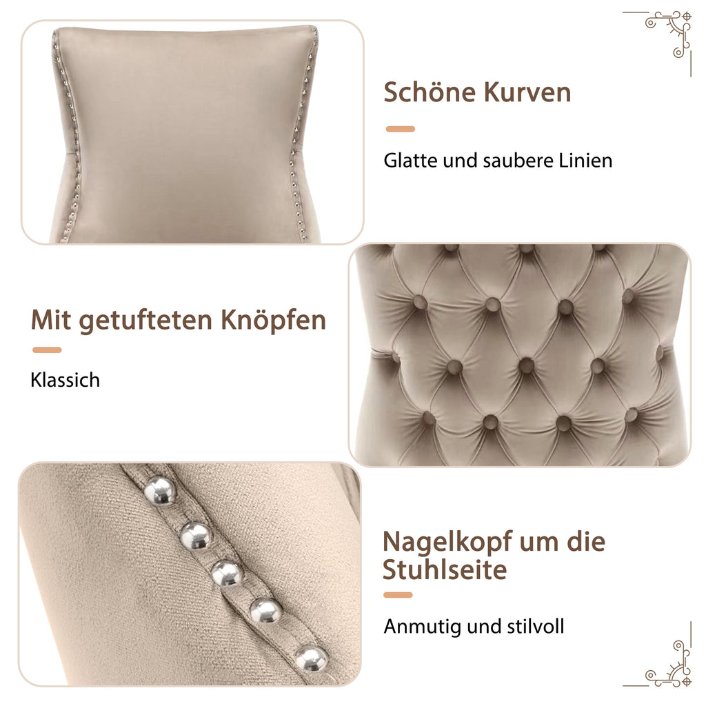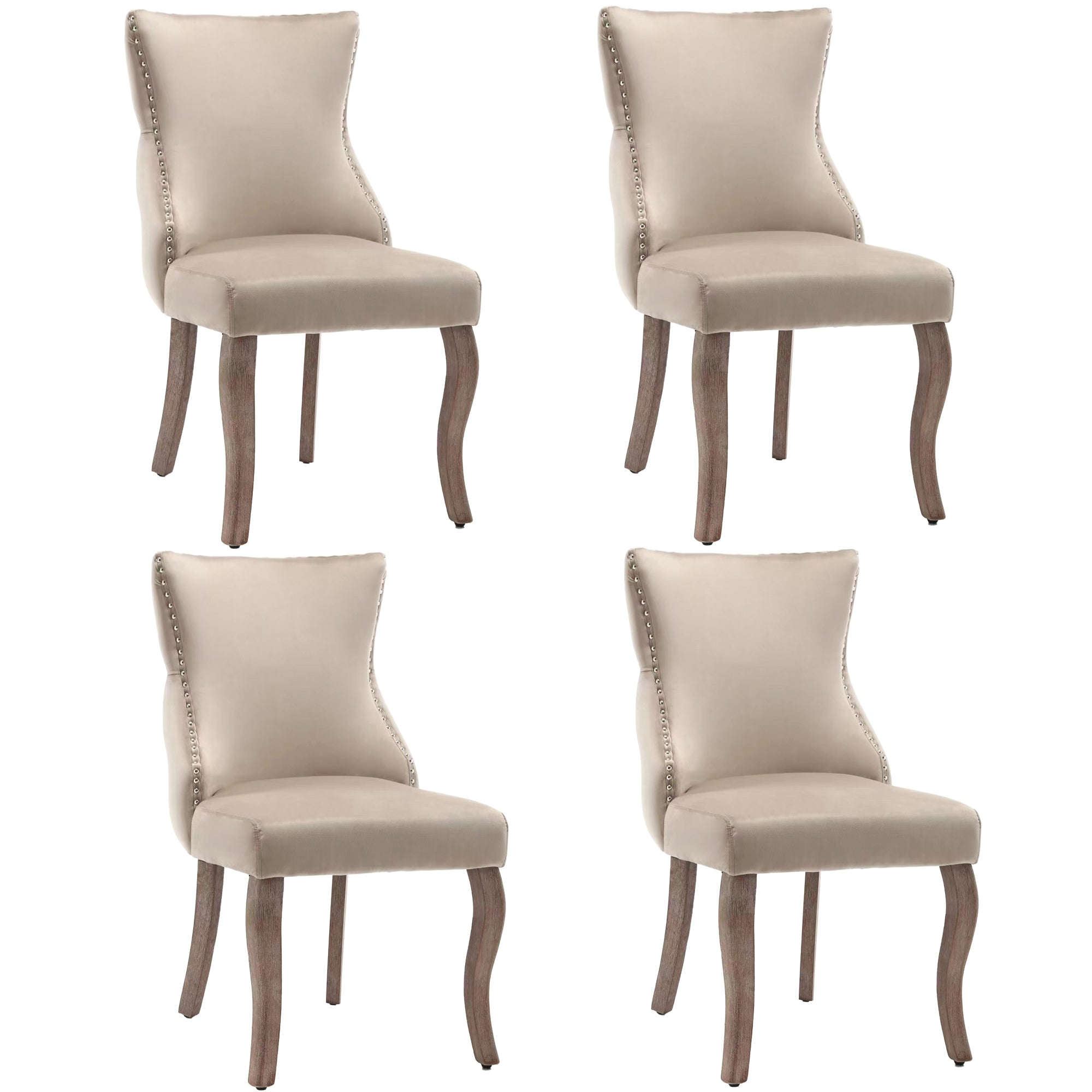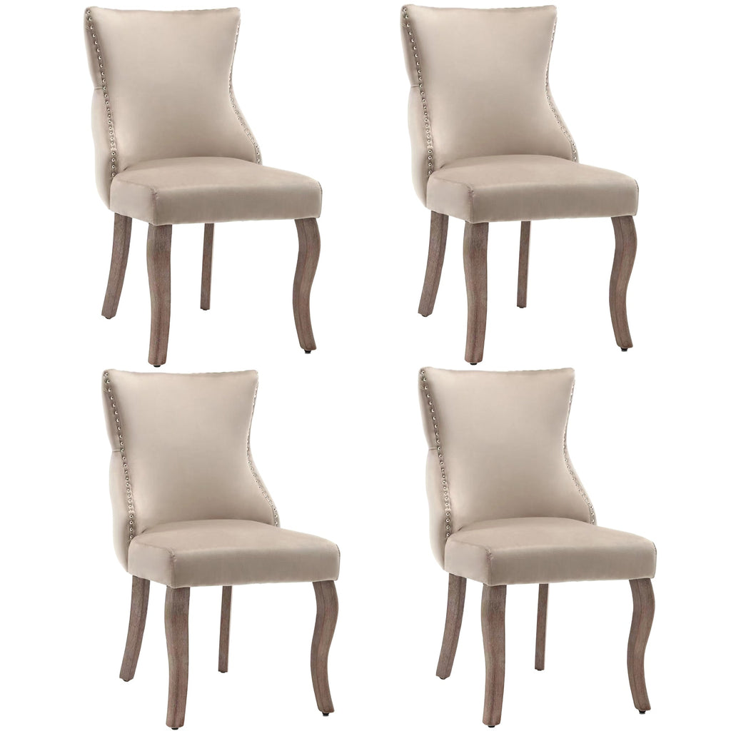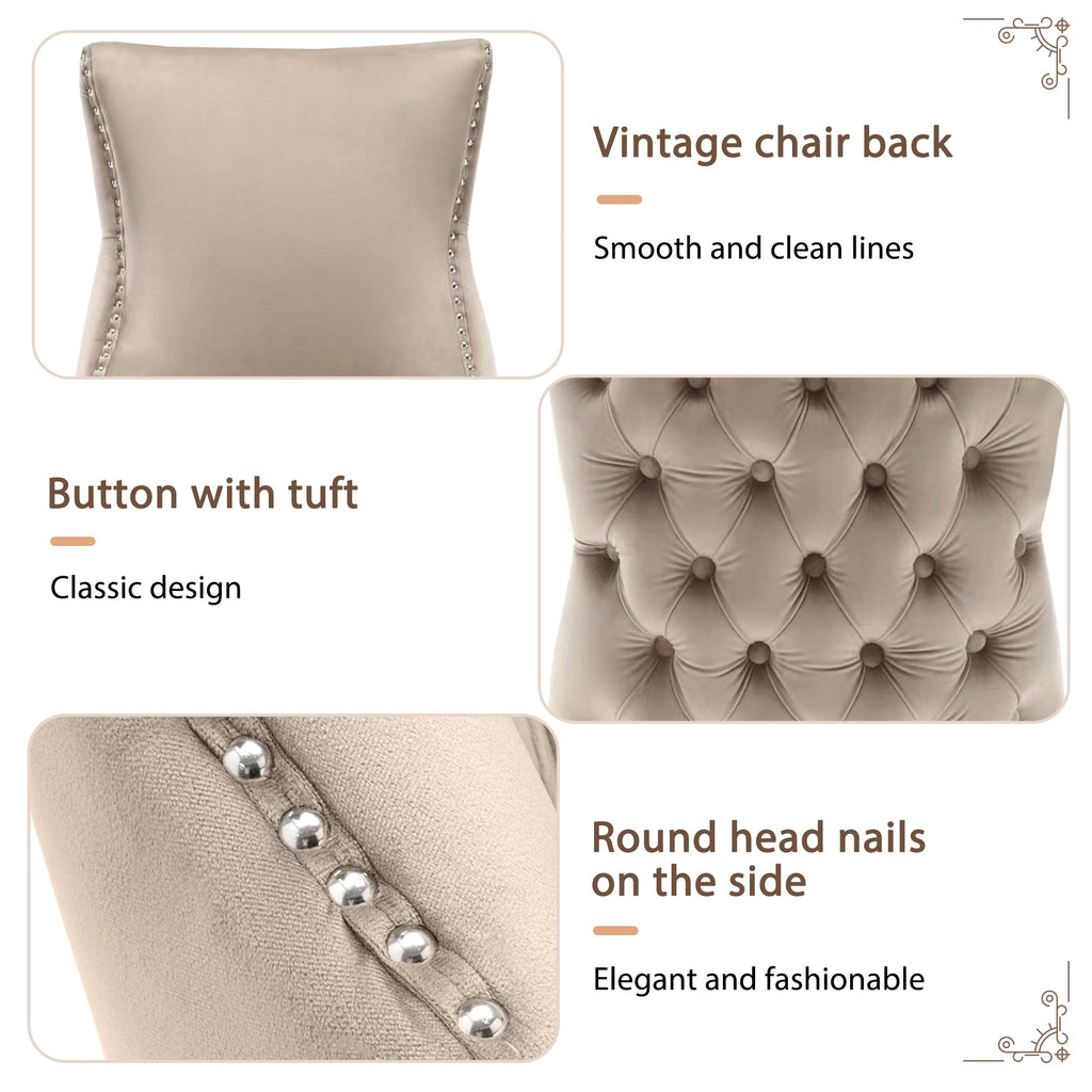 Dining Chair, Upholstered with Button Quilting & Nailhead Trim, Velvet Beige