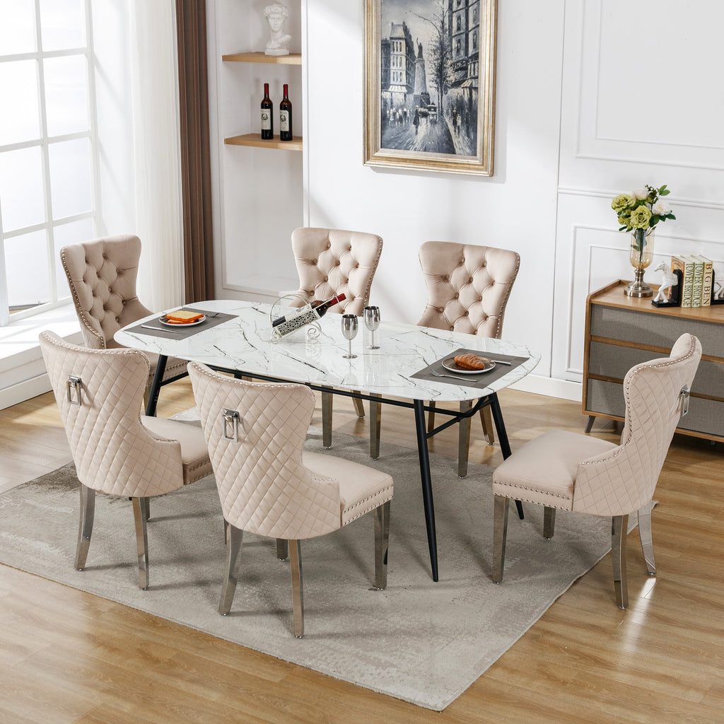 Striking & Versatile Upholstery: This upholstered dining chair with stain-resistant velvet exudes luxury and style, providing a functional seat in the dining room, bedroom, or any leisure area.