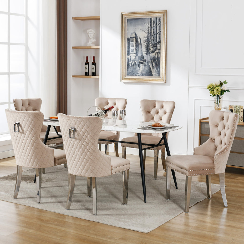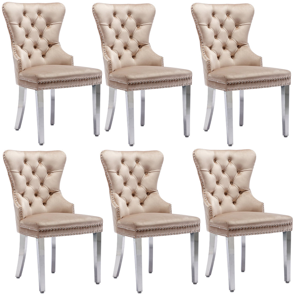 Dining Chair, Upholstered with Nailhead Trim, Metal Legs, Velvet Beige