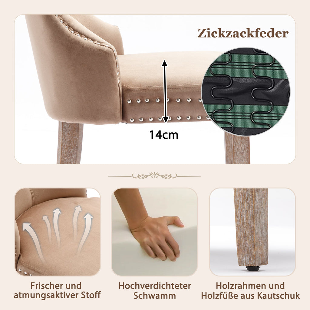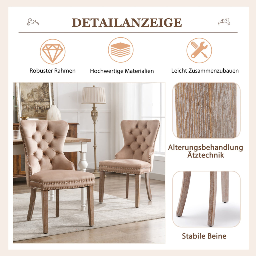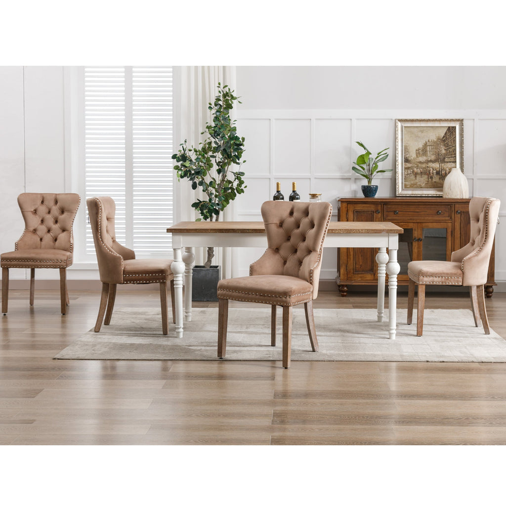 Dining Chair, Upholstered with Nailhead Trim, Solid Wood Legs, Velvet Brown