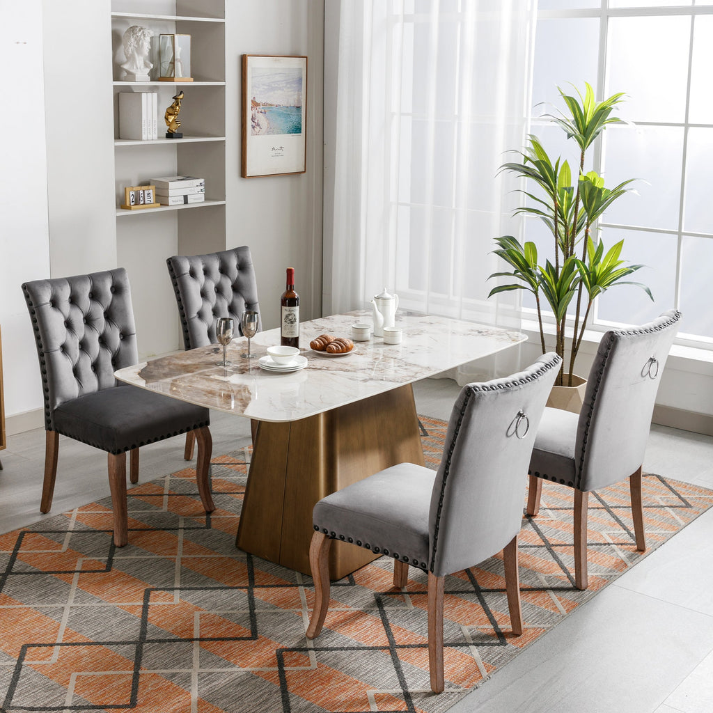 Dining Chair, Upholstered with Nailhead Trim, Solid Wood Legs, Velvet, Grey