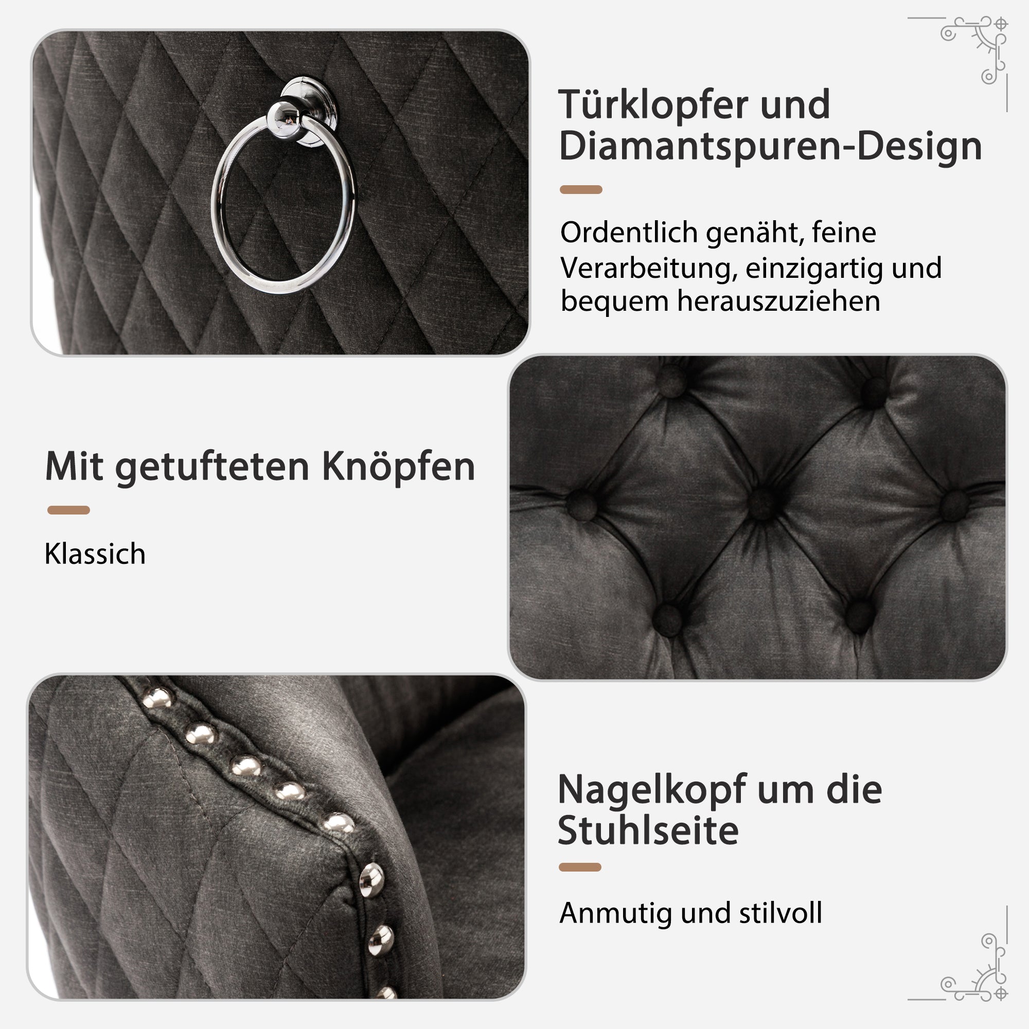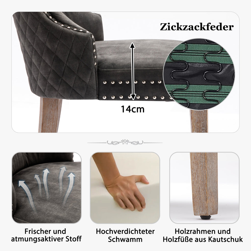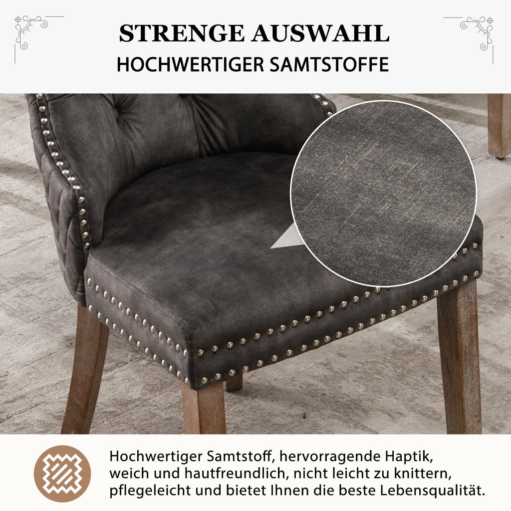 Dining Chair, Upholstered with Nailhead Trim, Velvet Grey