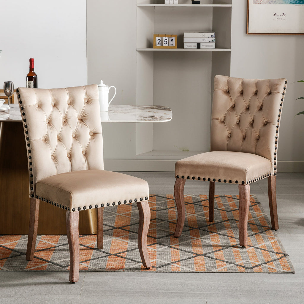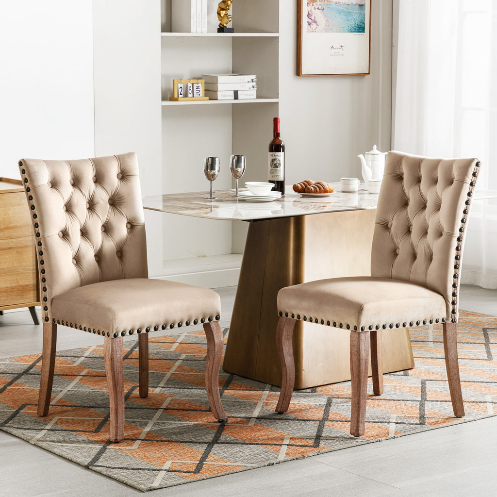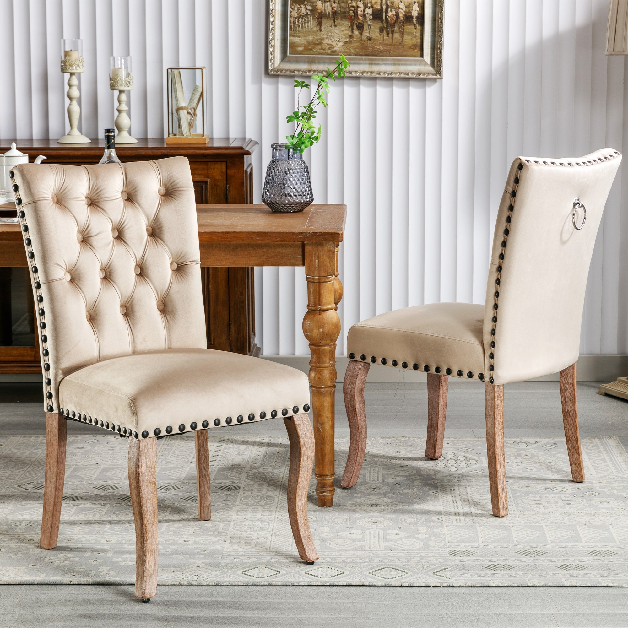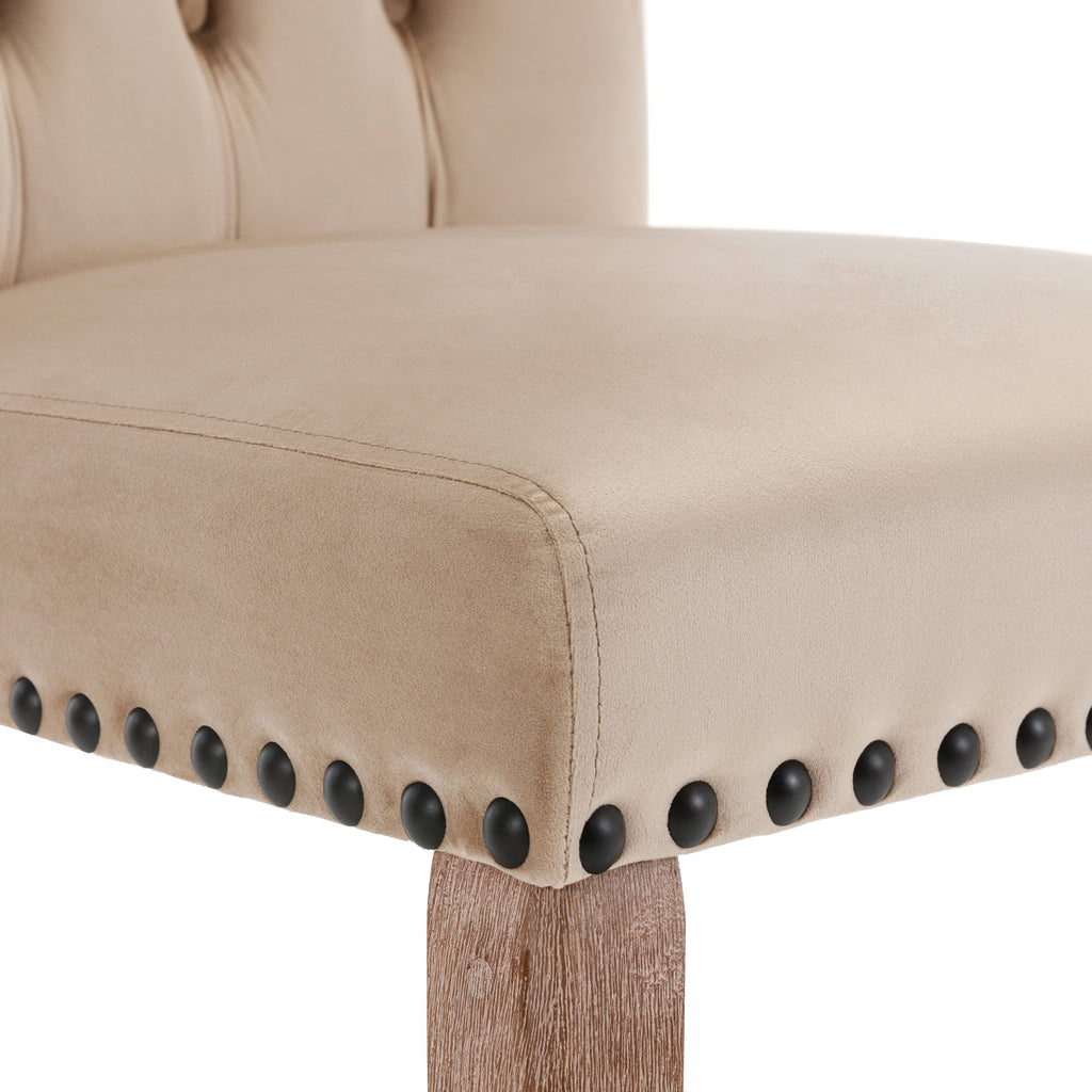 Dining Chair with Door Knocker, Nailhead Trim, Solid Wood Legs, Velvet Light Camel