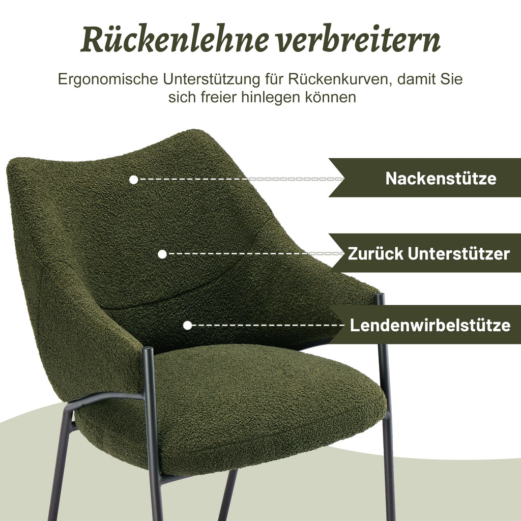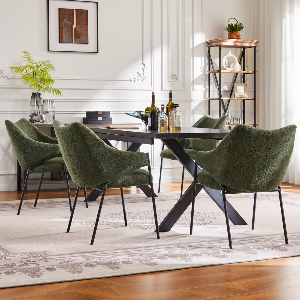 Dining Chairs, 4-Piece Lounge Sofa Armchair, Lamb Plush Fabric, Green