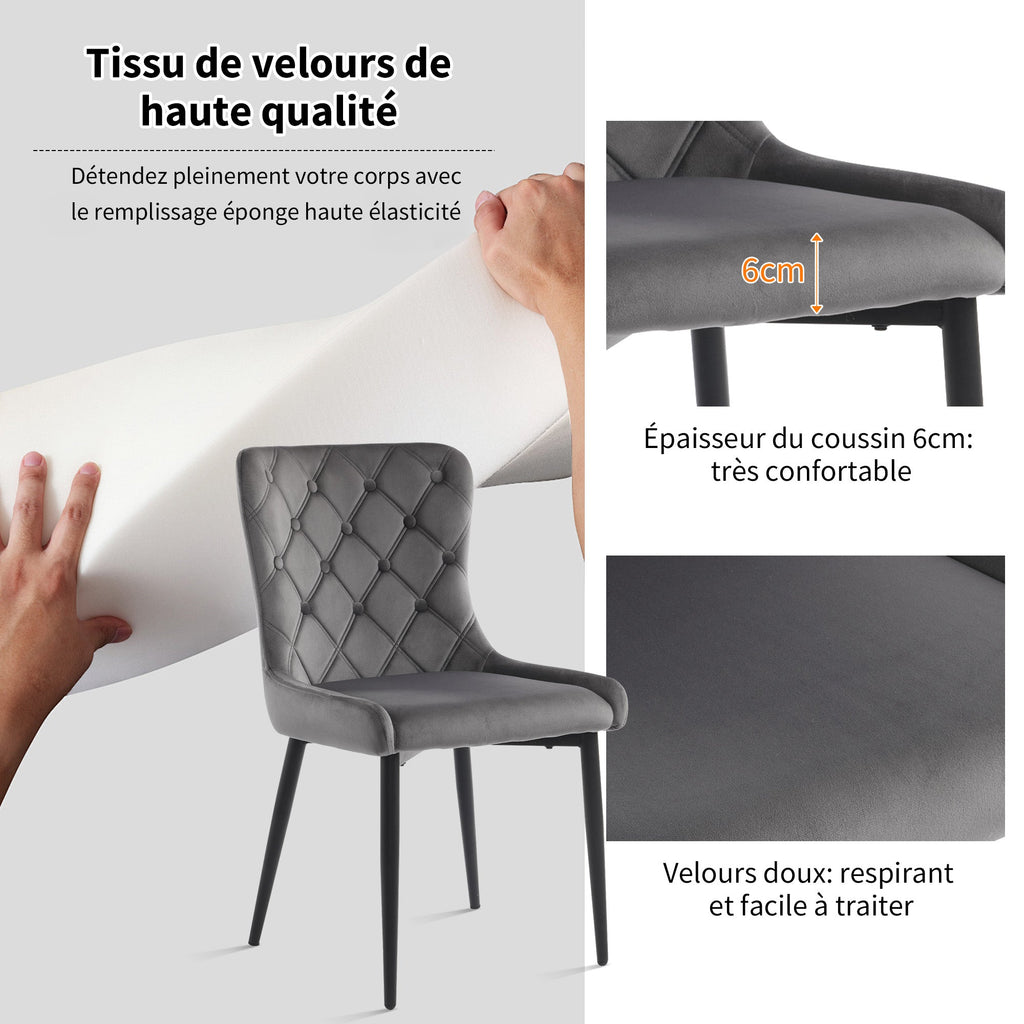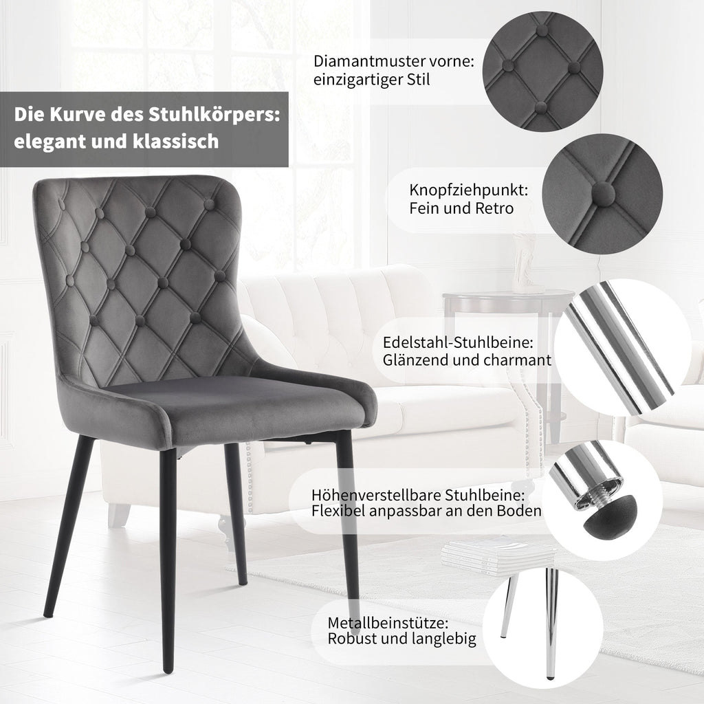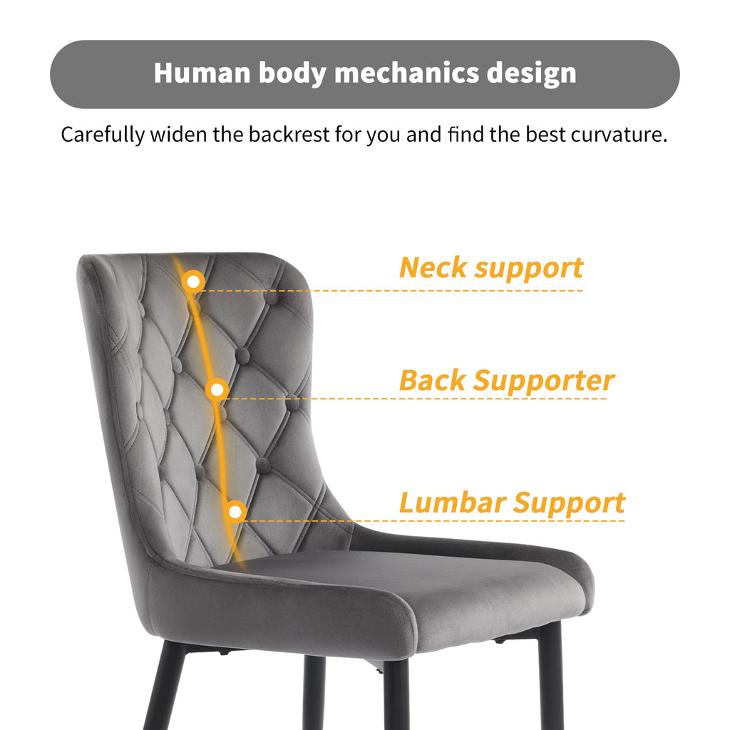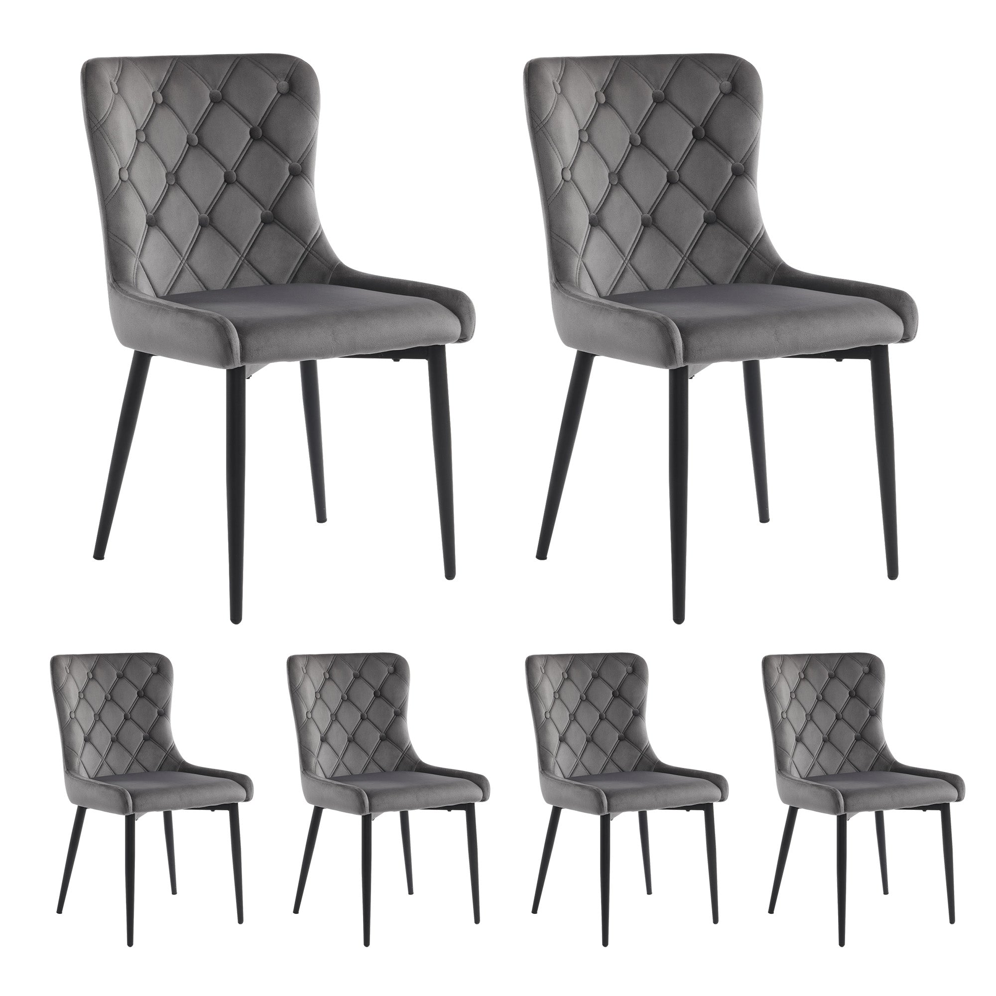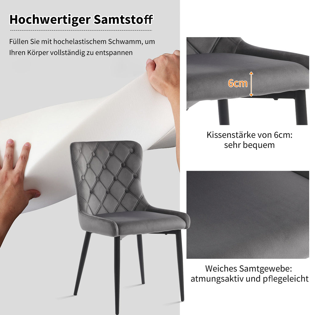 Dining Chairs (6 Pcs), Velvet Upholstered, Ergonomic, Dark Gray