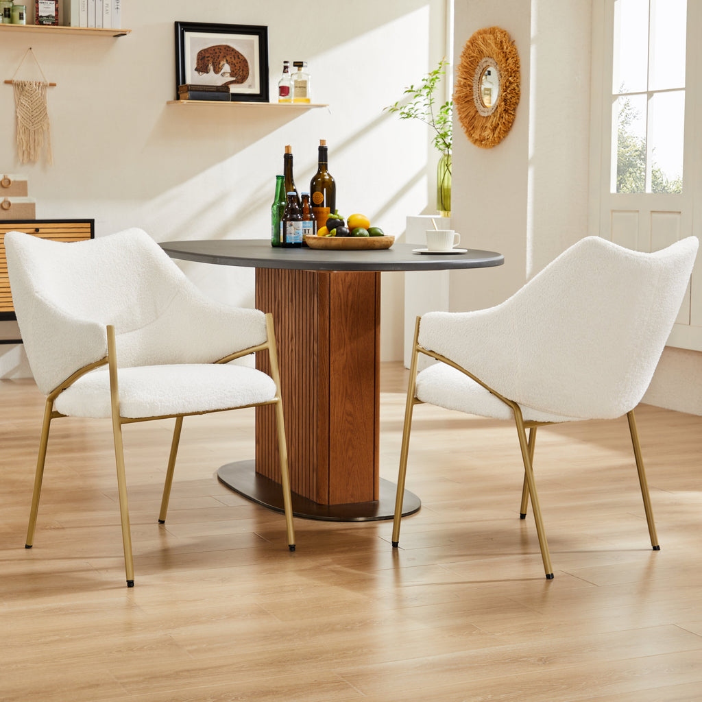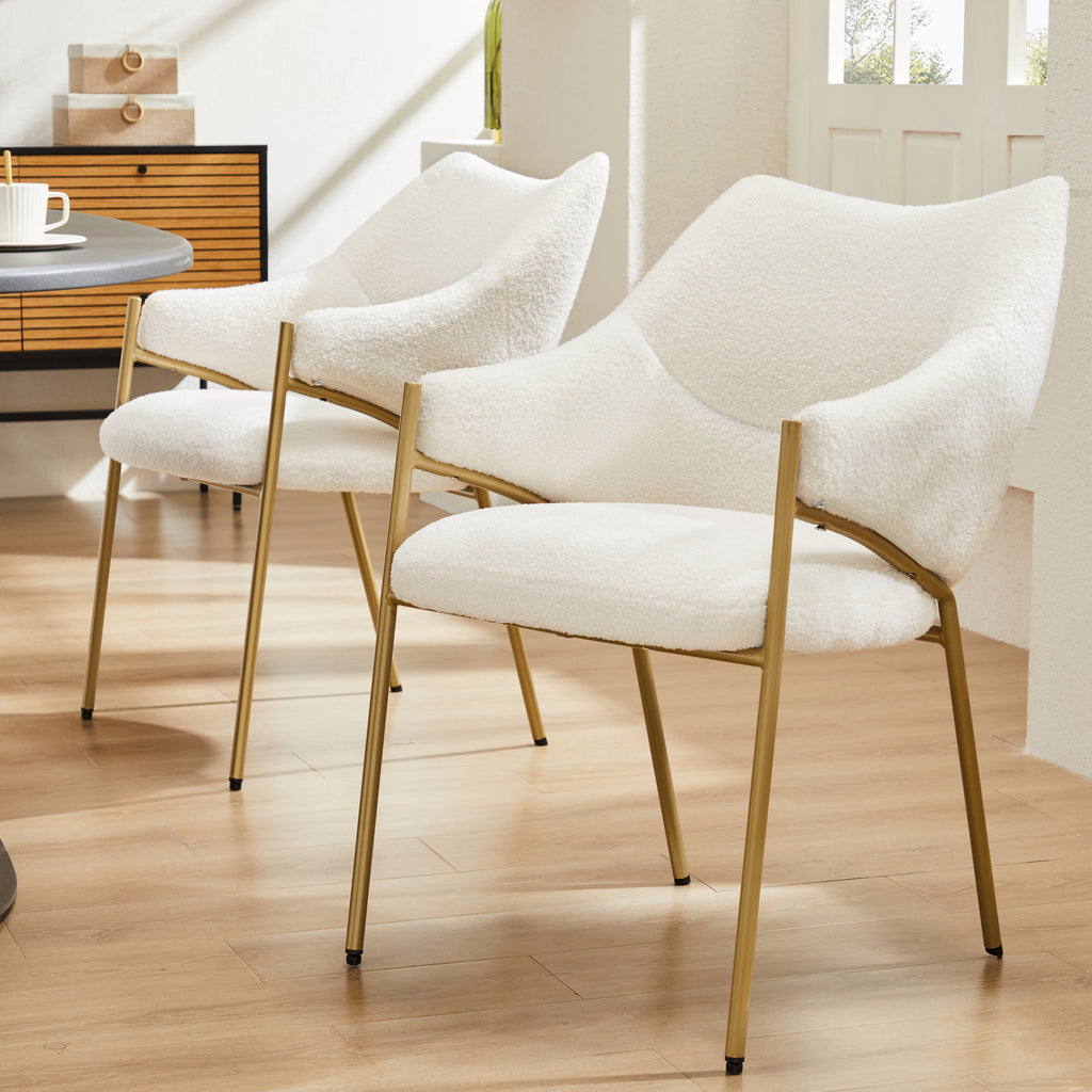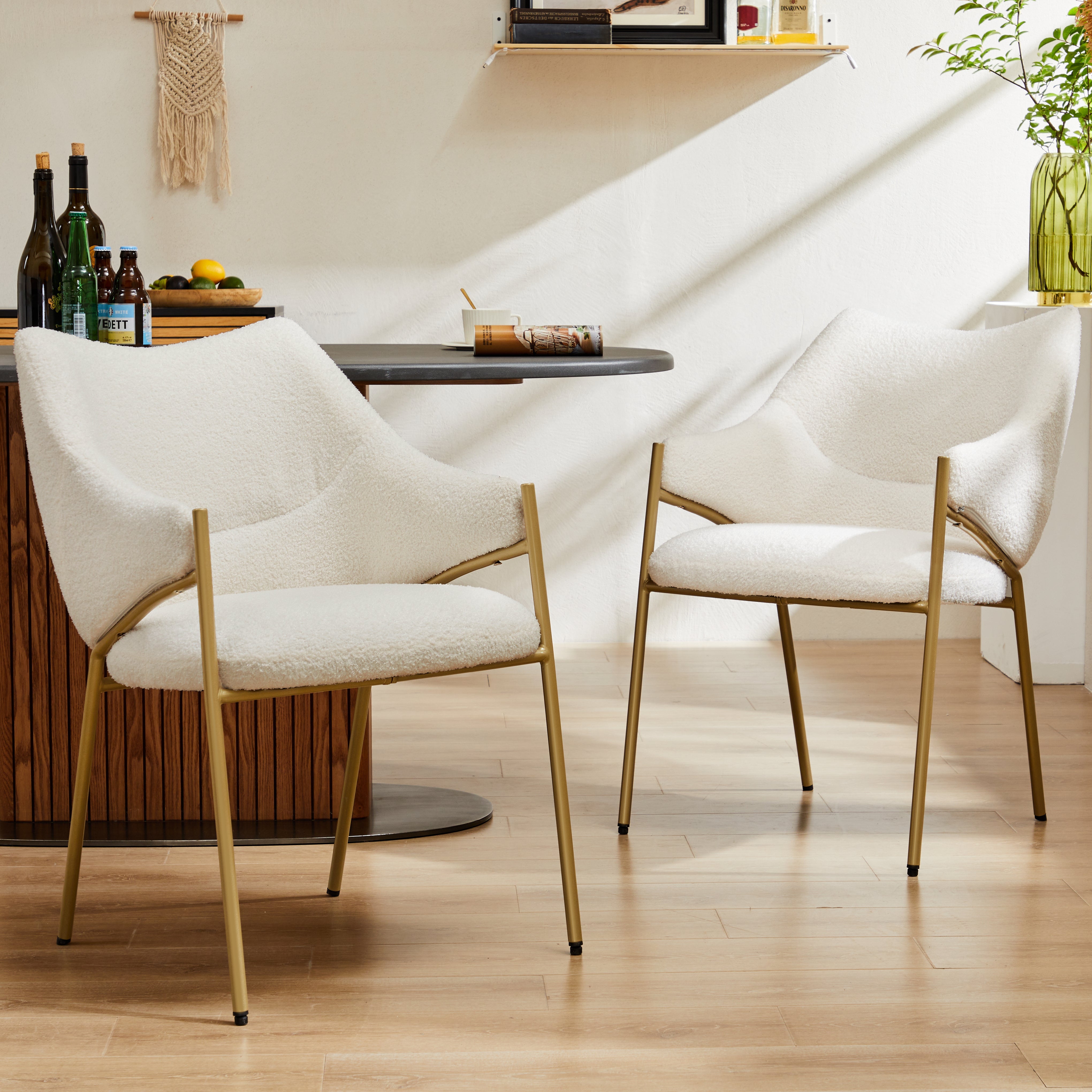 Dining Chairs, Lounge Armchair, Lamb Plush Fabric, Beige