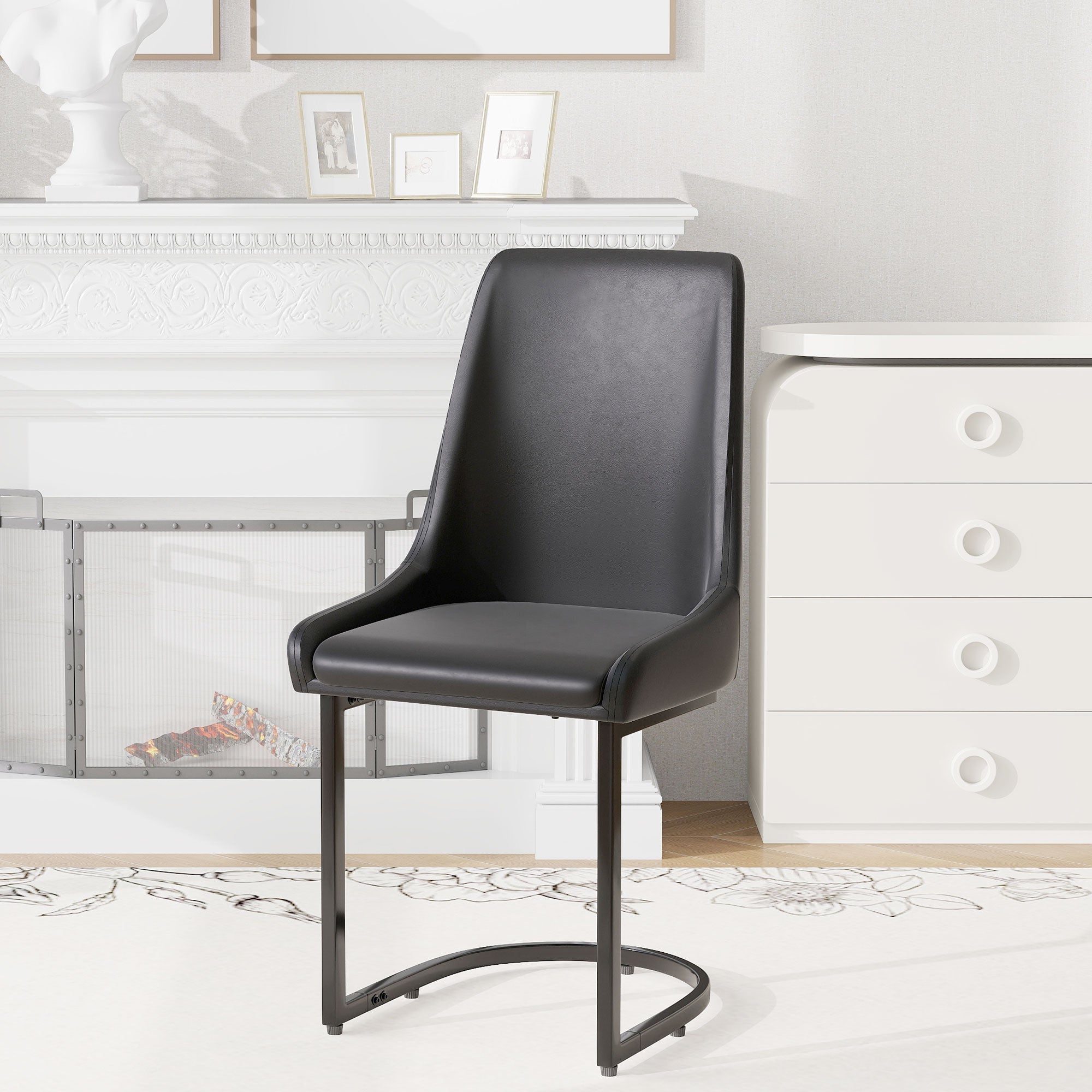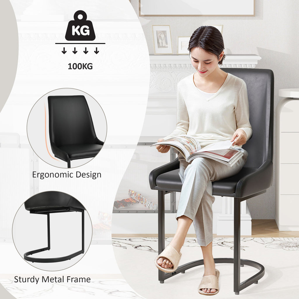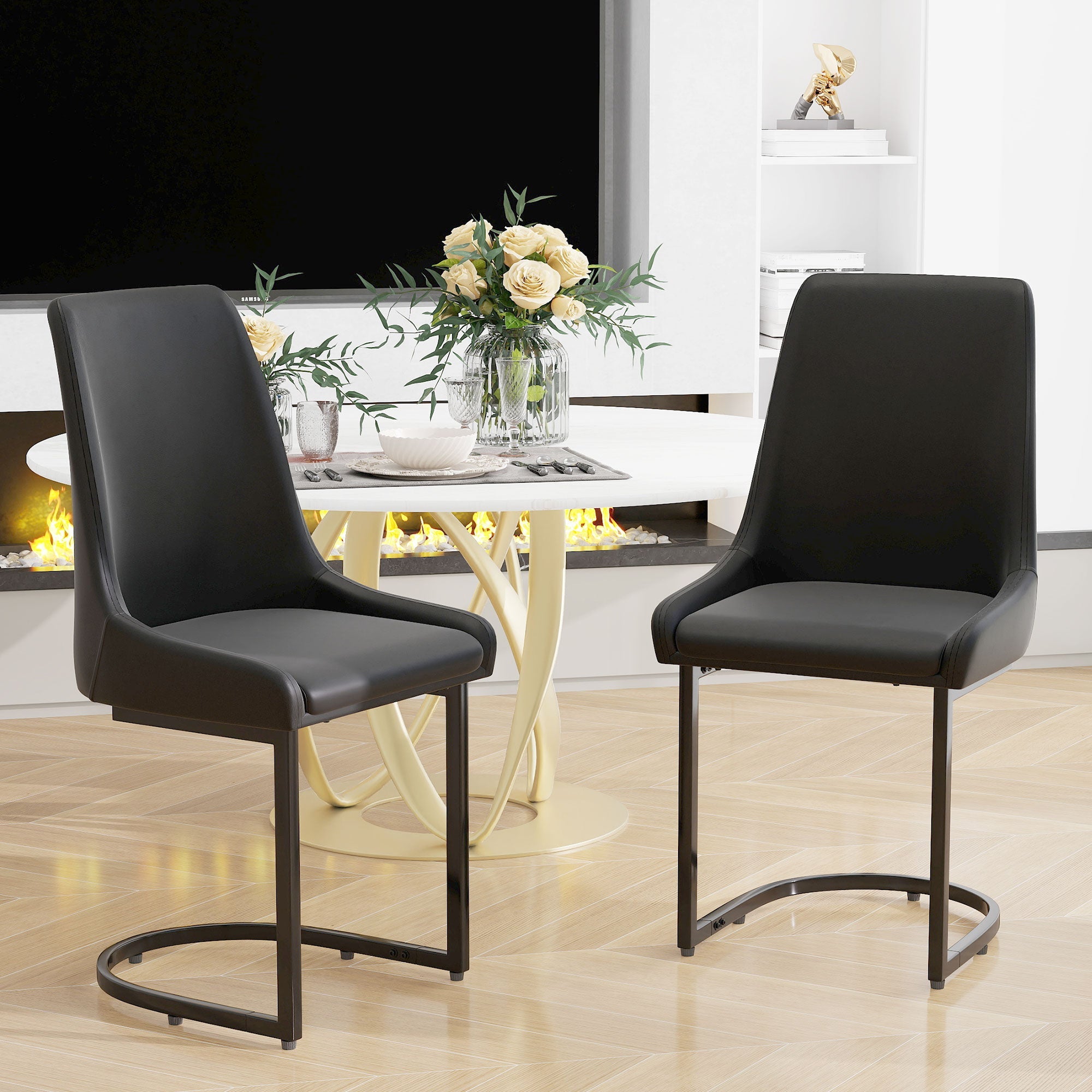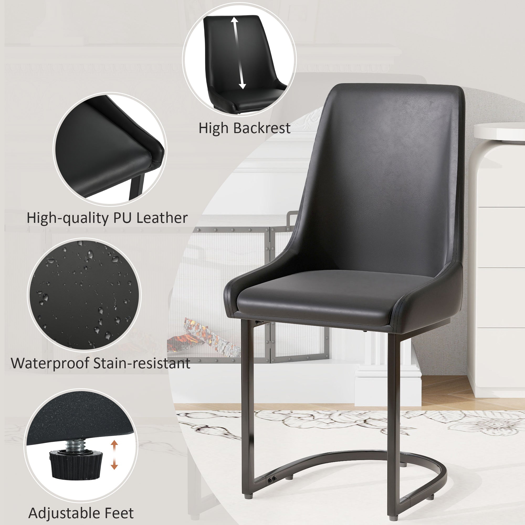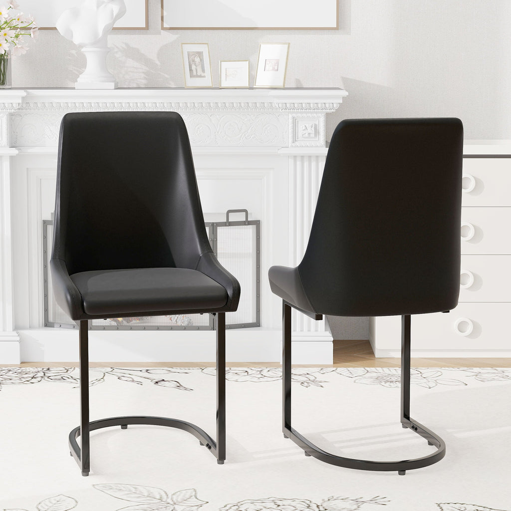 Dining Chairs, Modern Kitchen & Dining Room Chairs with High Back, 2pcs, Black PU Leather