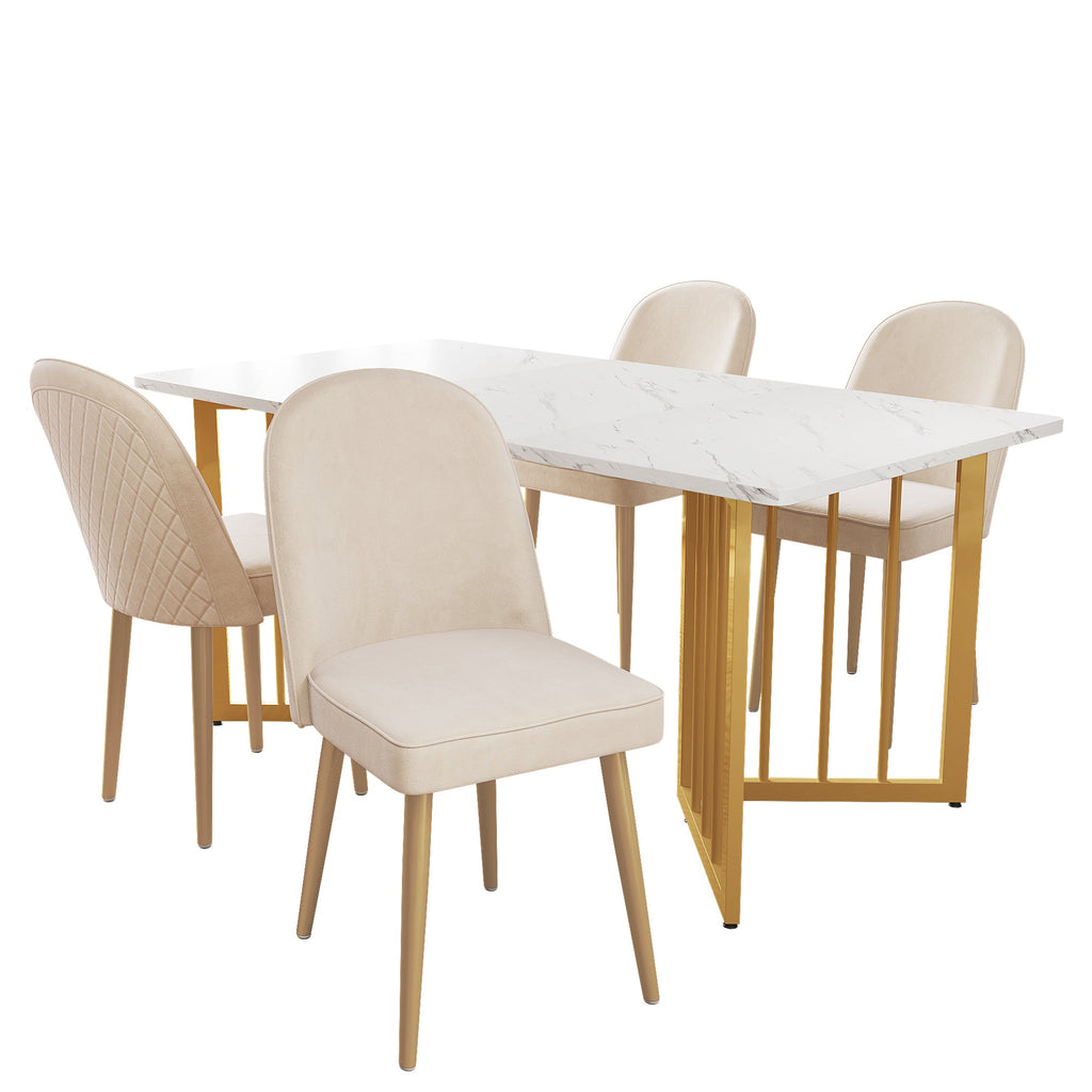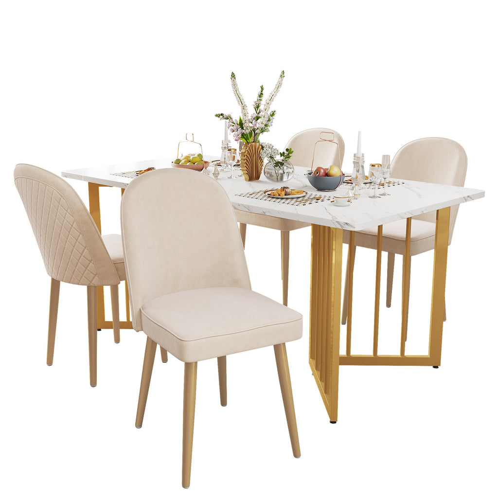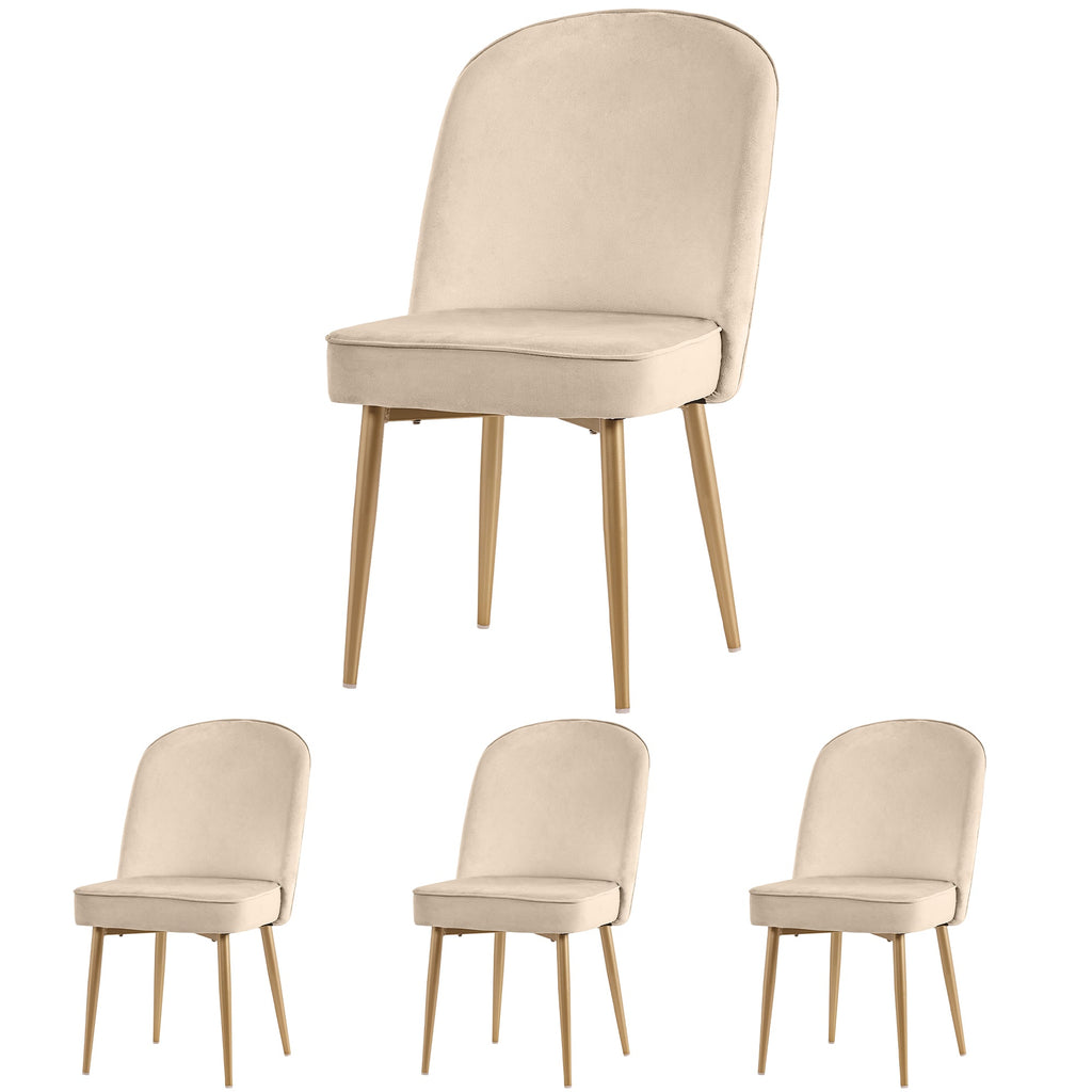 Dining Chairs, Modern Velvet with Golden Metal Legs, Beige (Set of 4)