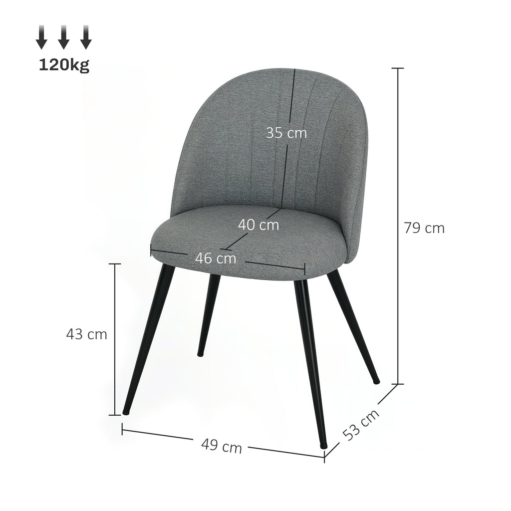 Dining Chairs Set of 2, Modern Upholstered Shell Back Metal Legs Padded Seat, Grey