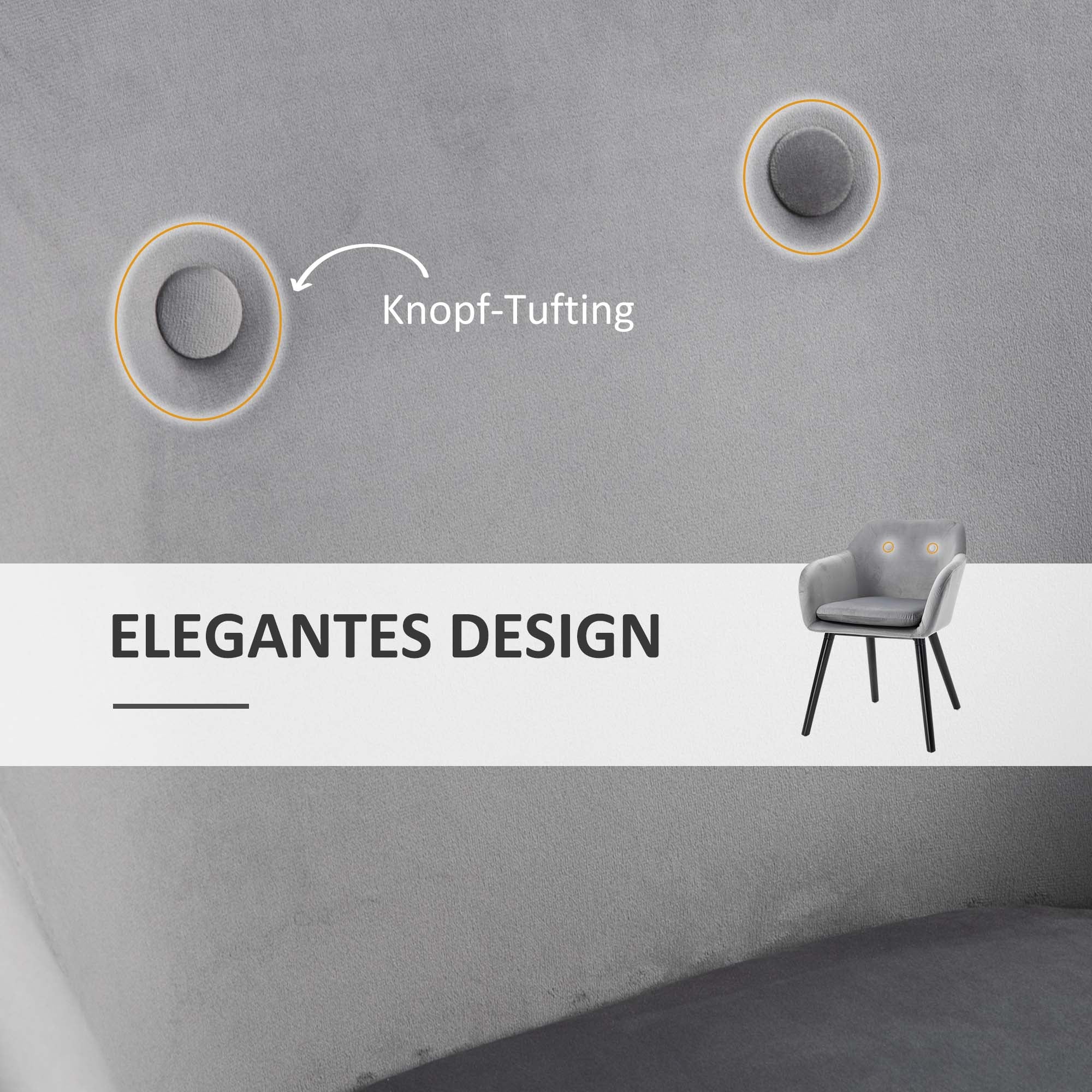 Dining Chairs, Set of 2, Upholstered with Backrest, Velvet Grey