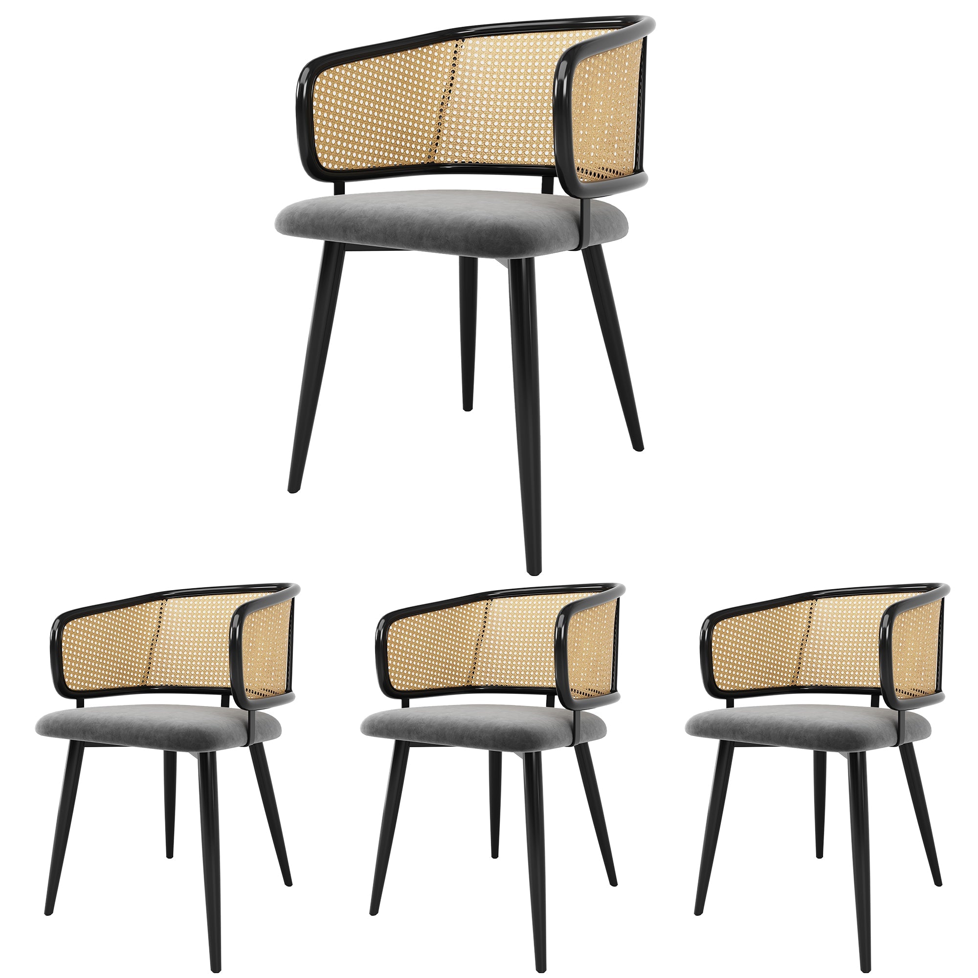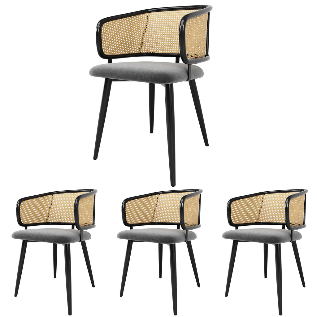 Dining Chairs, Set of 4 Rattan Backrest with Velvet Cushion