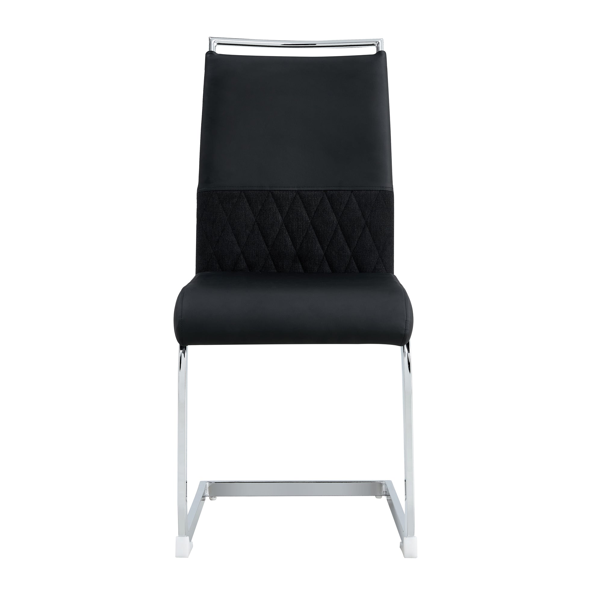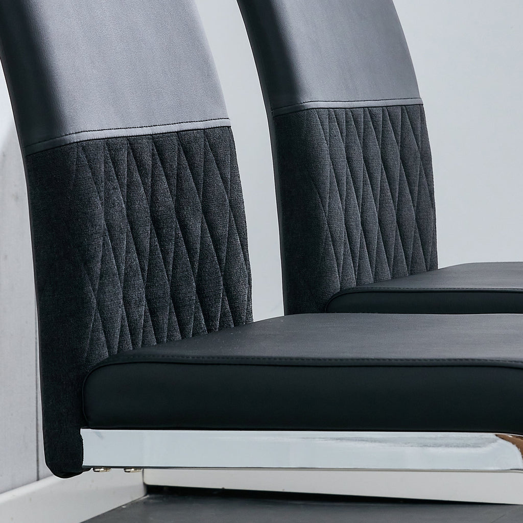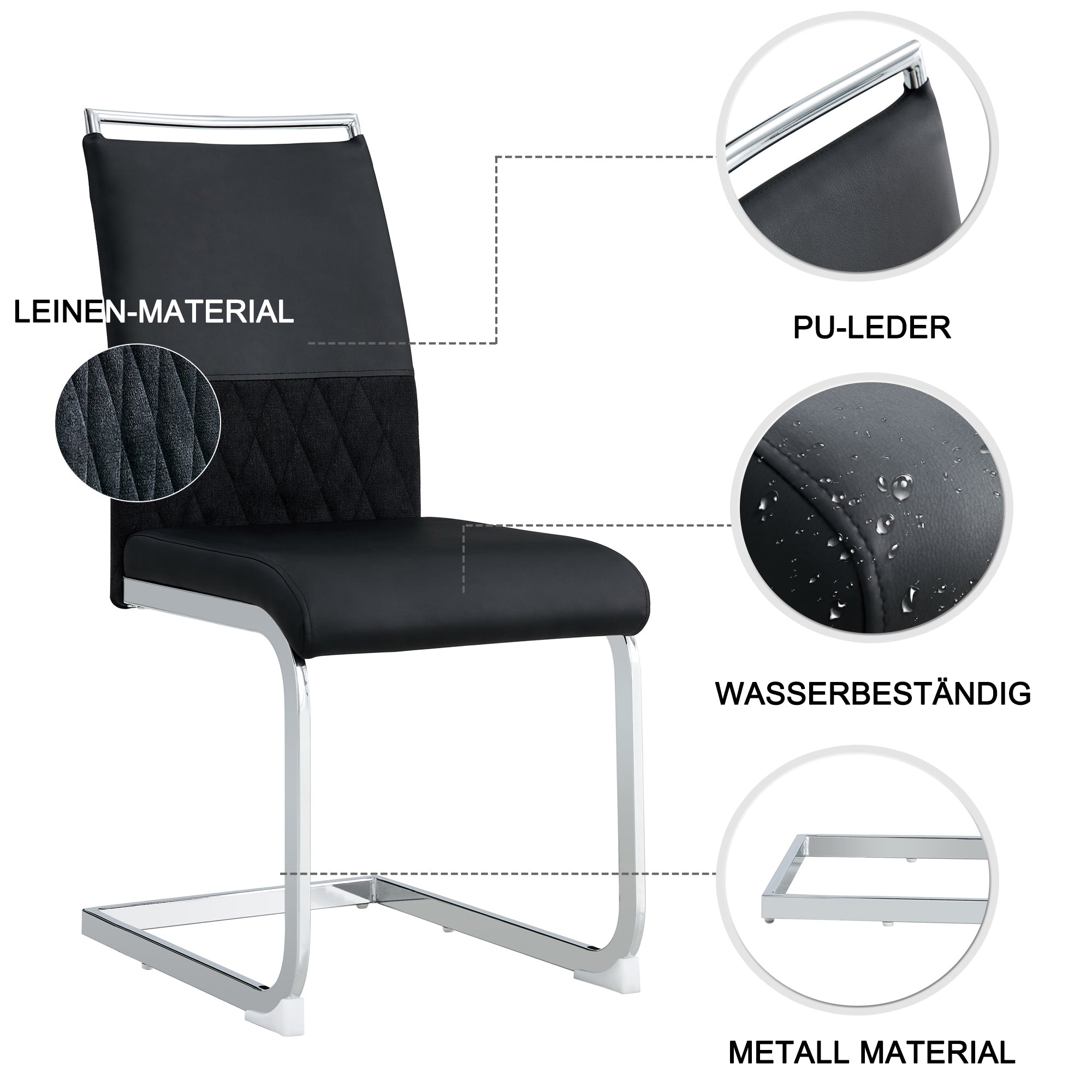 Dining Chairs, Set of 6 High Back Upholstered Side, Black PU Leather and Linen