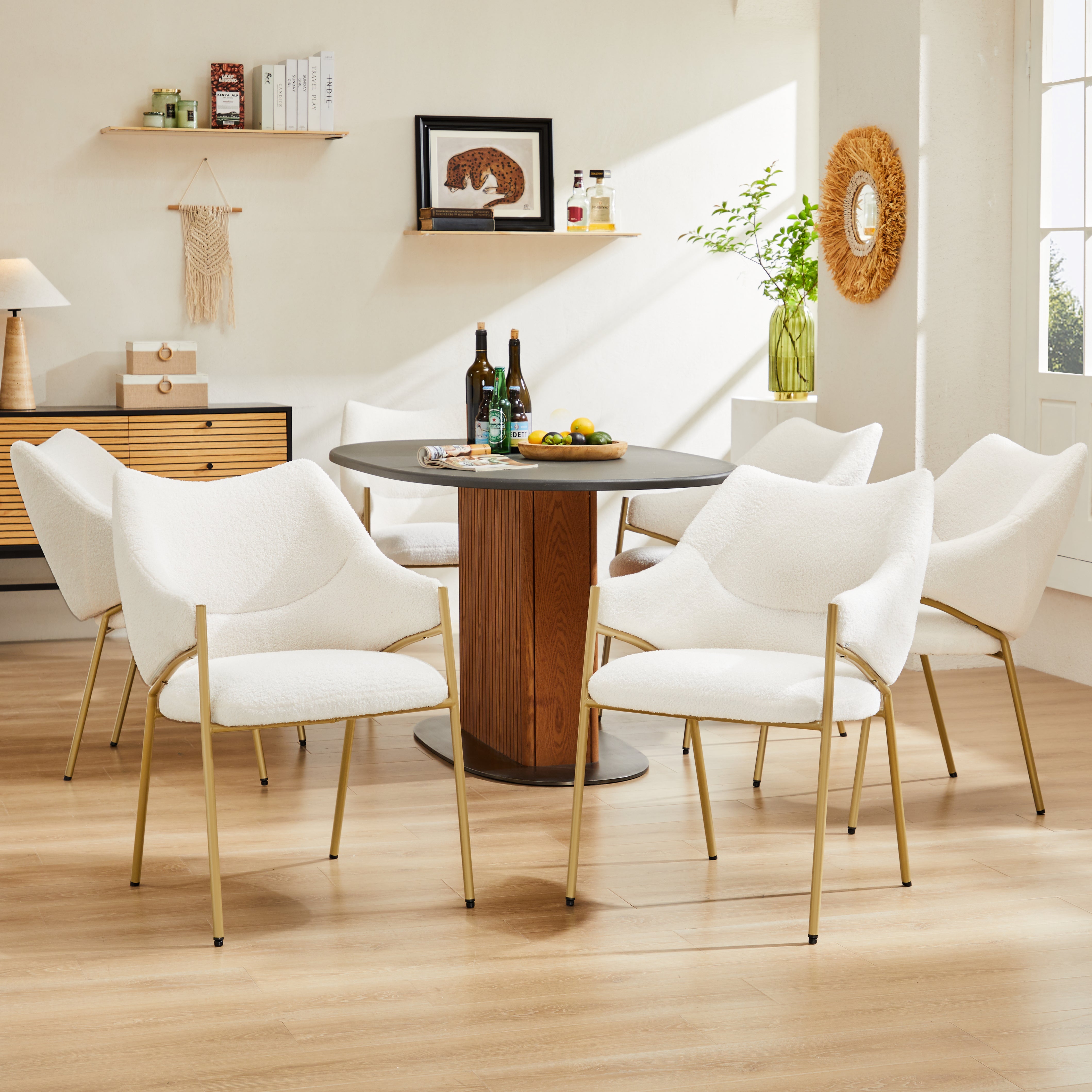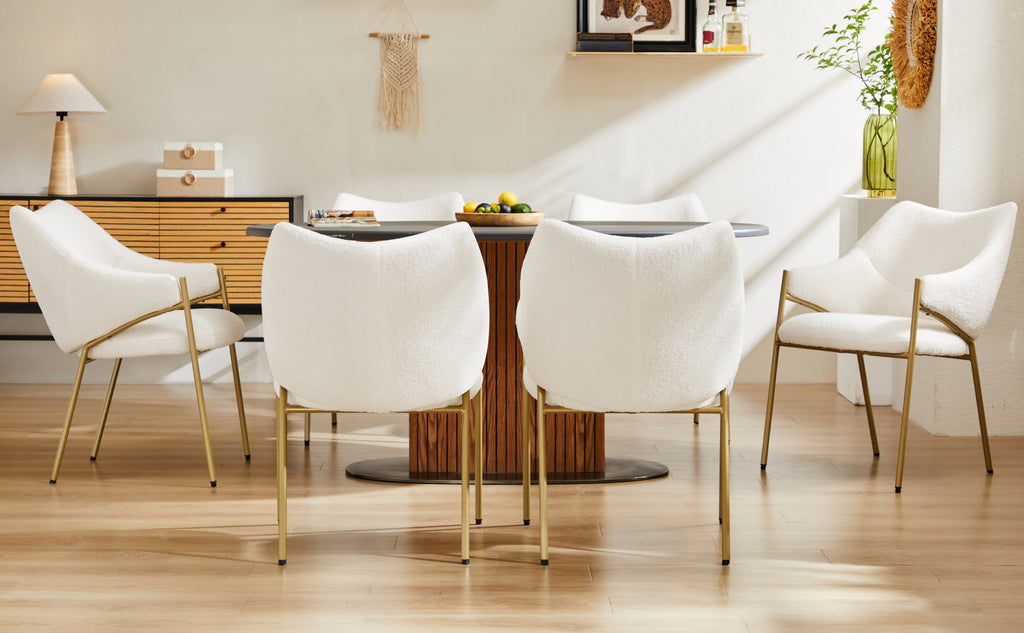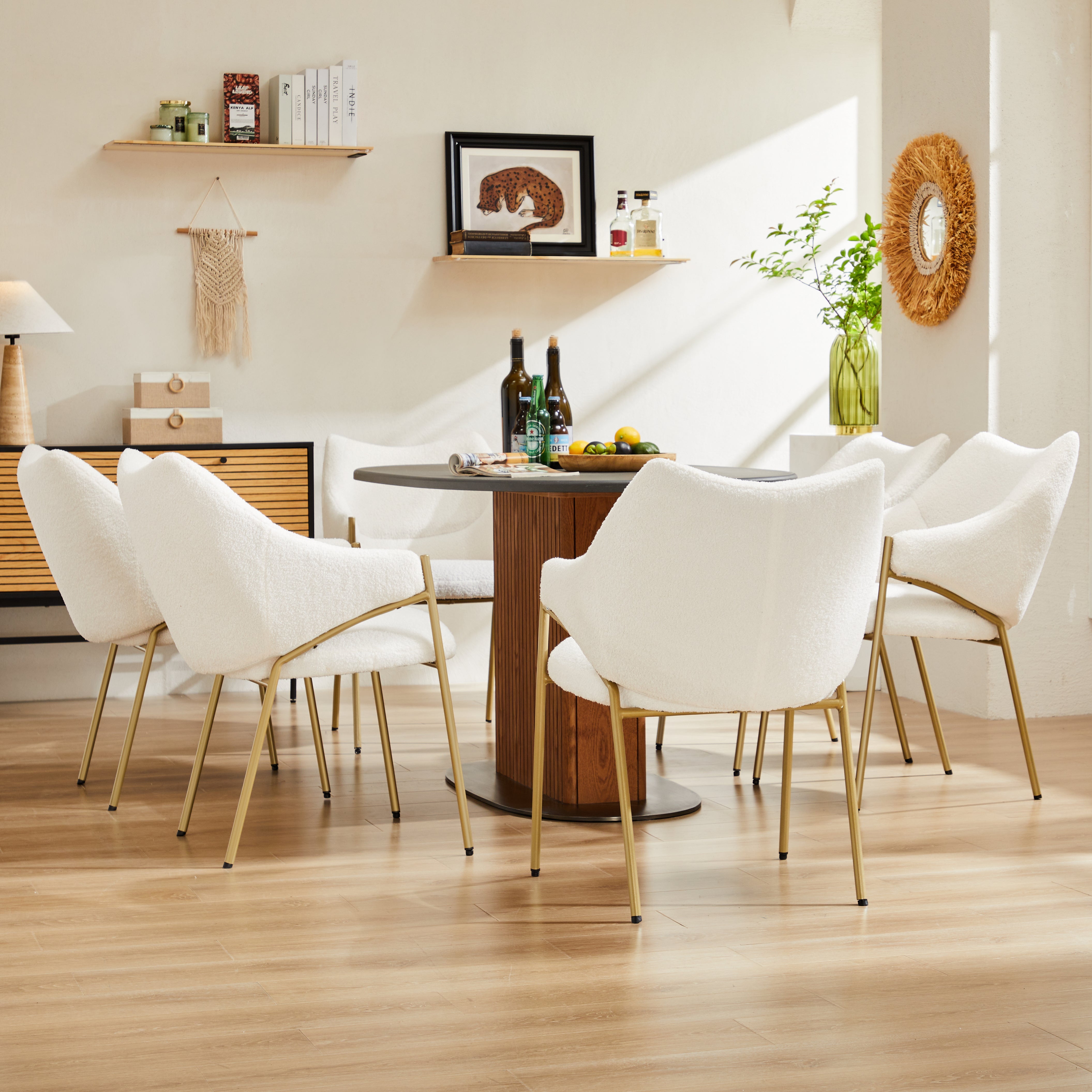 Dining Chairs (Set of 6), Lamb Plush Fabric, Thickened Seat Cushion, Beige