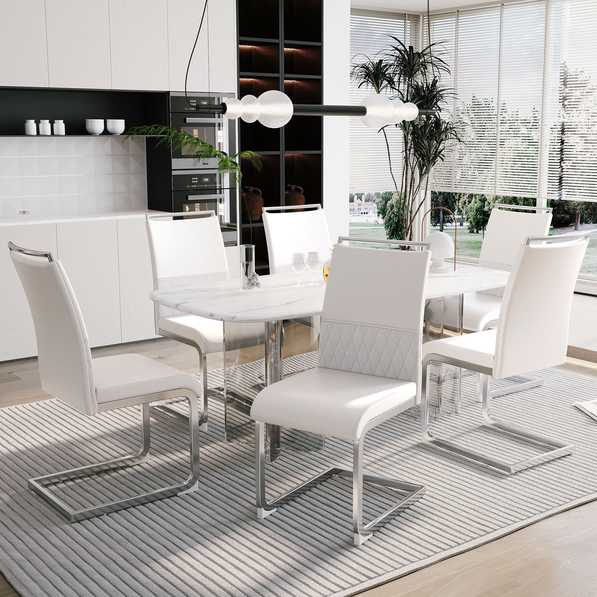 Dining Chairs, Set of 6 Upholstered High Back Side, White