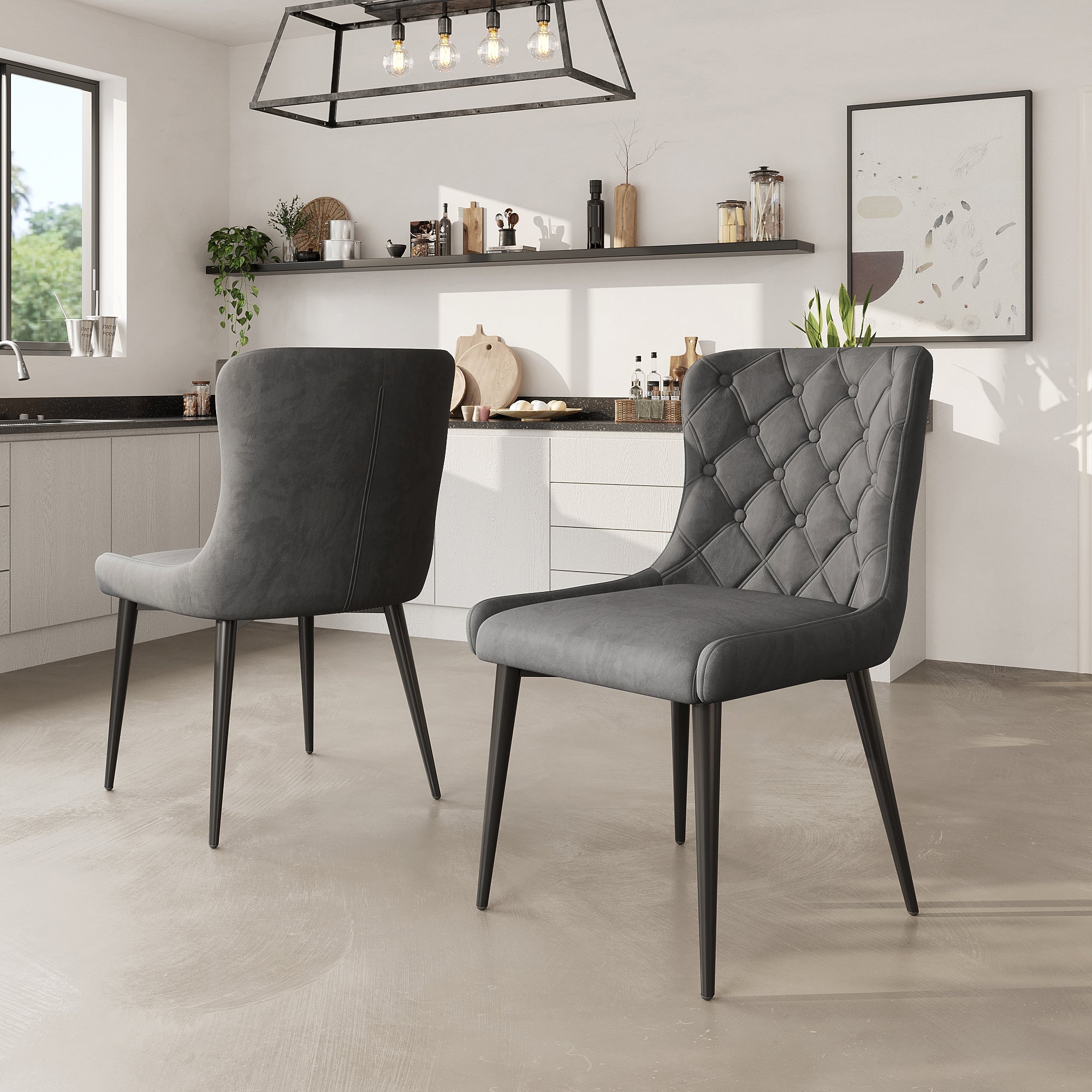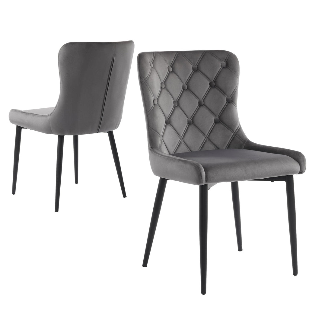 Dining Chairs with Backrest (Set of 2), Velvet Upholstered, Metal, Ergonomic, Dark Gray