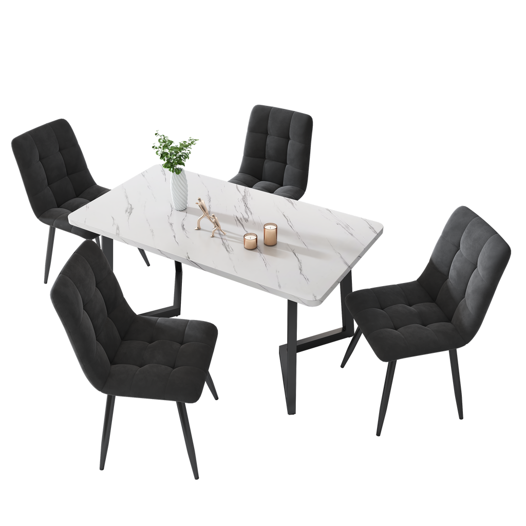 This set of 4 chairs features a durable velvet surface, high-density foam padding, and sturdy metal legs, ensuring high stability and durability. The maximum static load capacity is 150 kg.