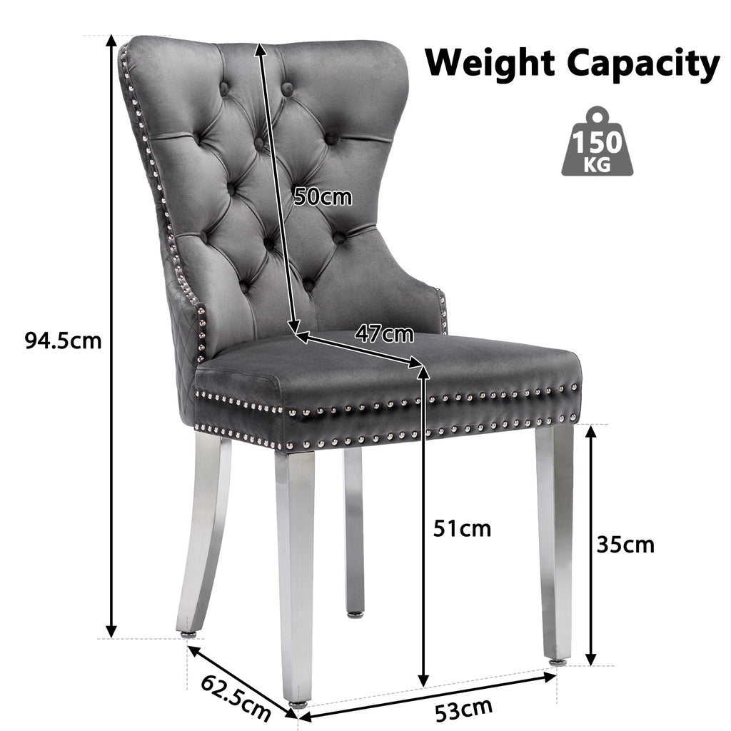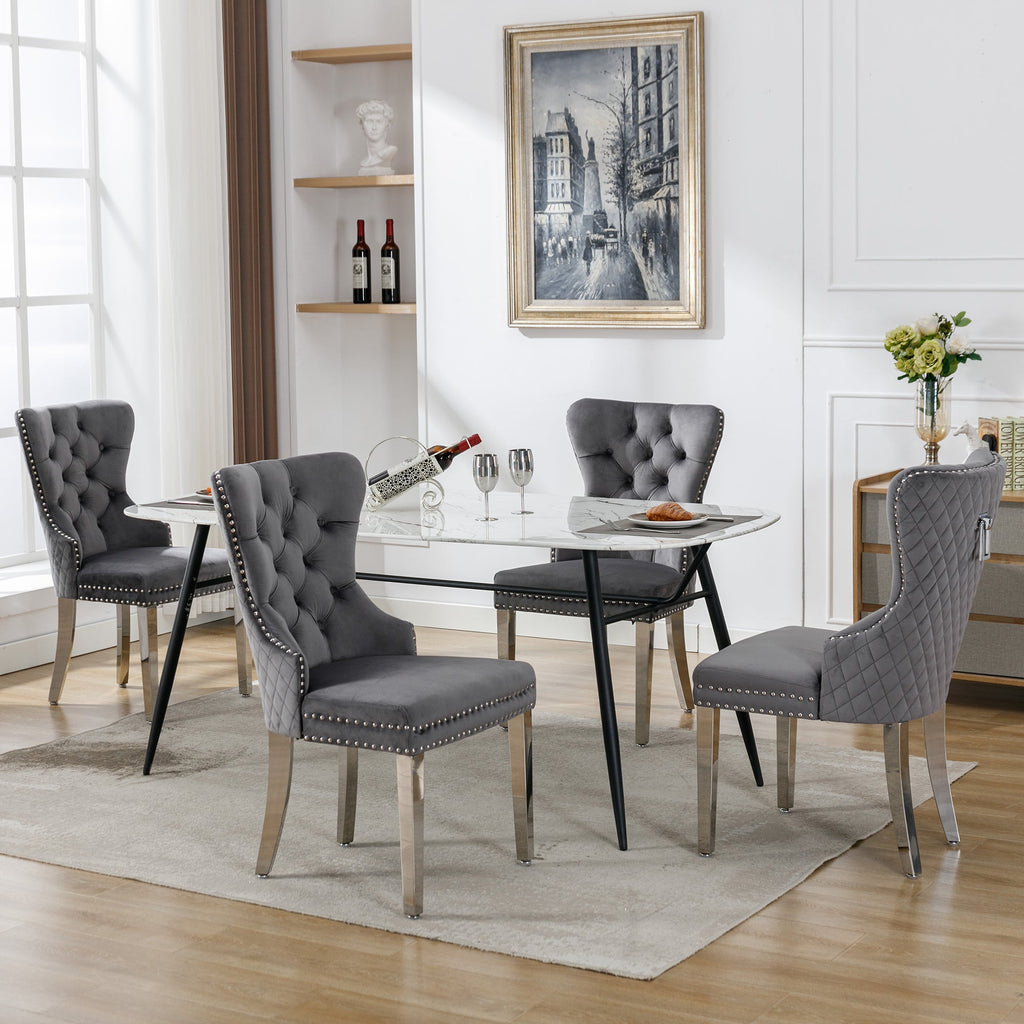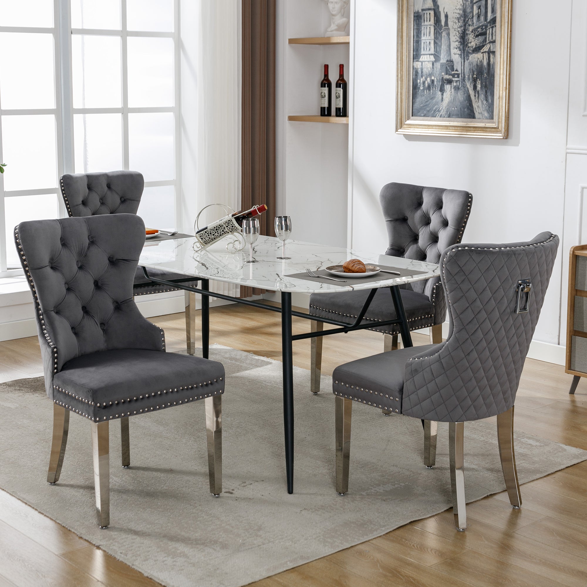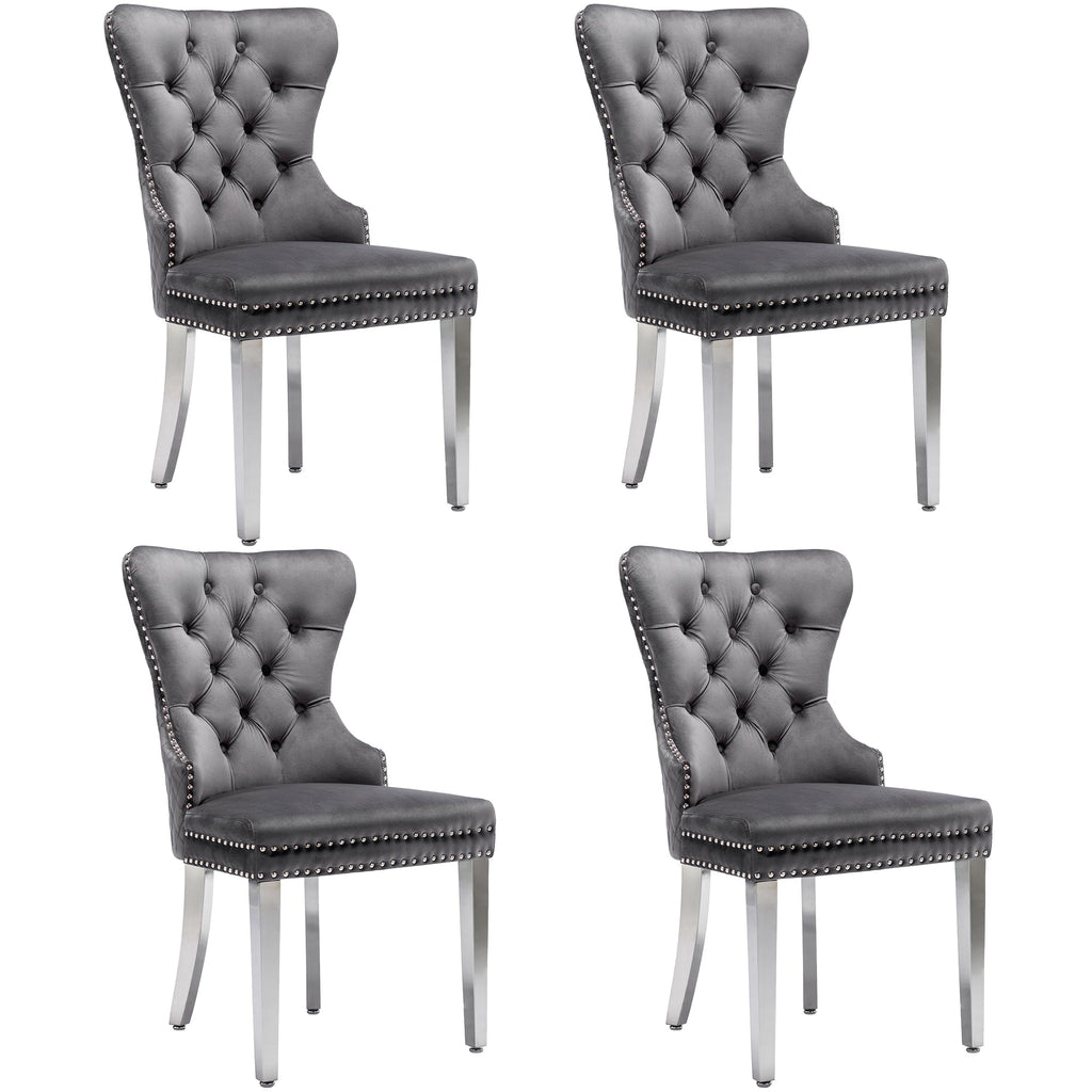 Dining Room Chair, 4-Piece Upholstered with Nailhead Trim, Velvet Grey
