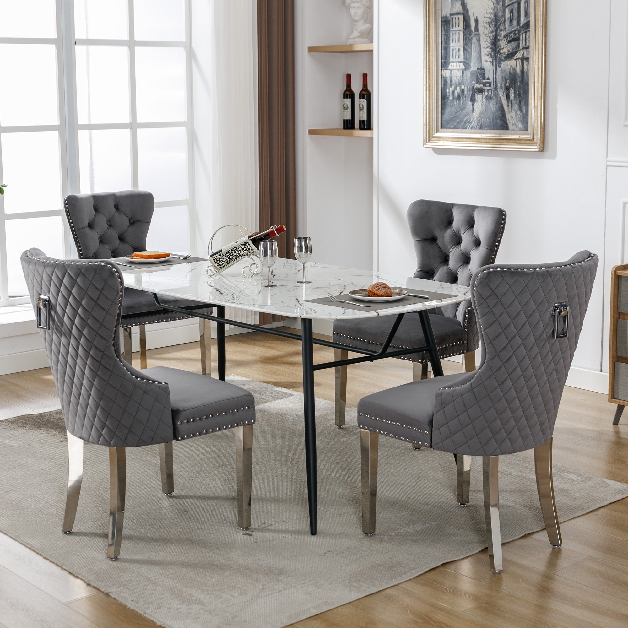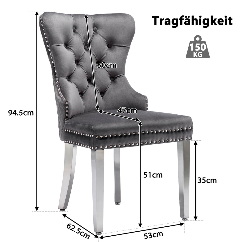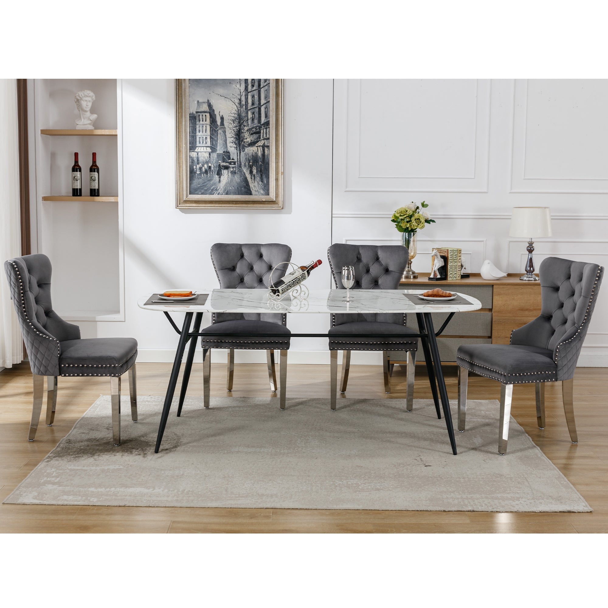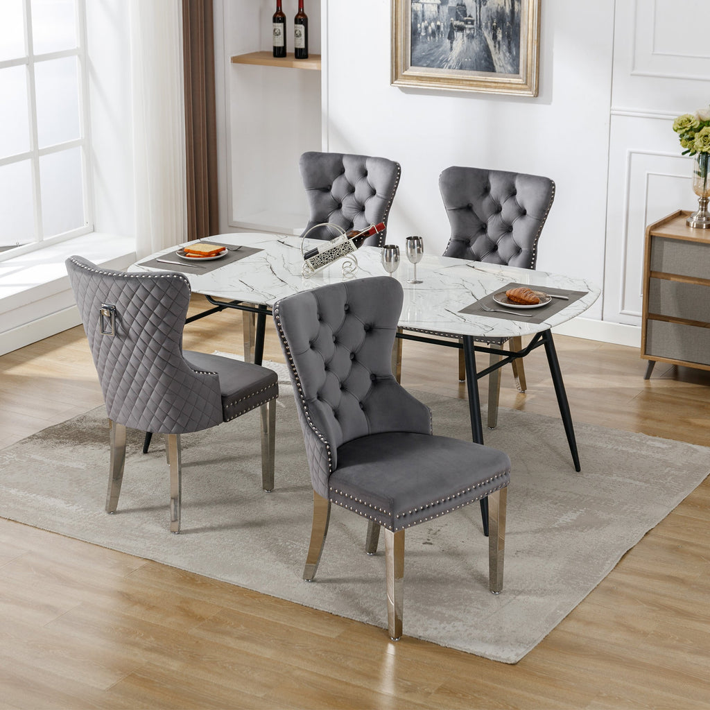 Dining Room Chair, 4-Piece Upholstered with Nailhead Trim, Velvet Grey