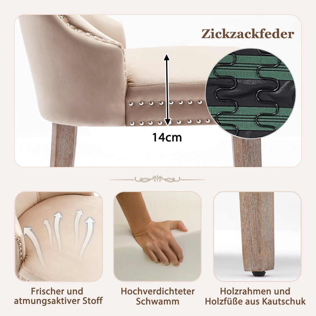 Dining Room Chair, Upholstered with Nailhead Trim & Door Knocker, Solid Wood Legs, Velvet, Beige