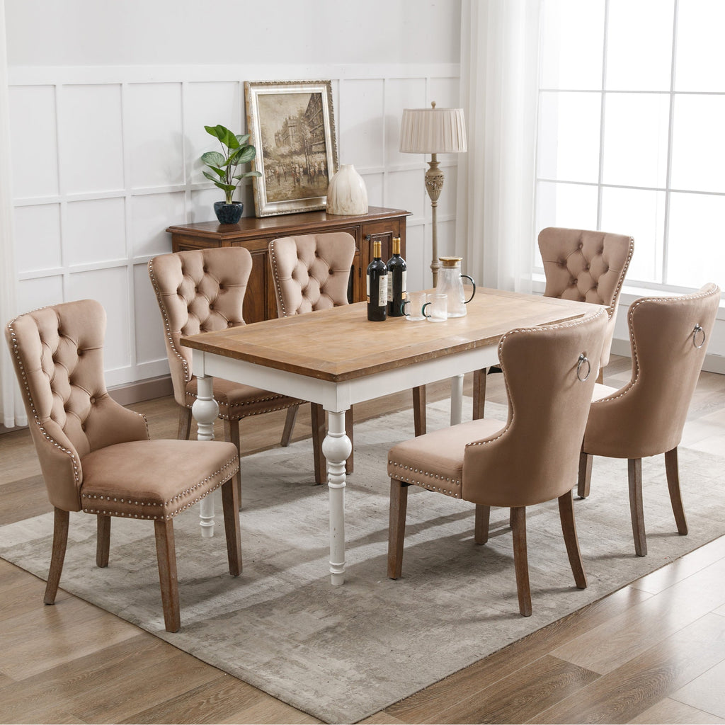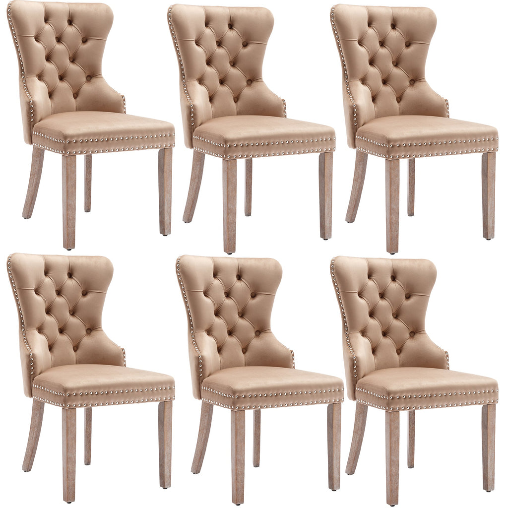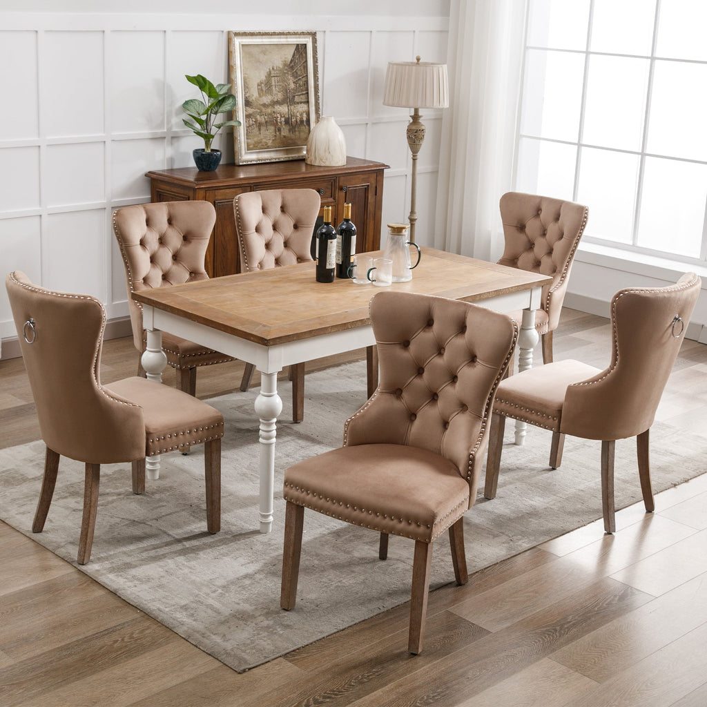 Dining Room Chair, Upholstered with Nailhead Trim, Solid Wood Legs, Velvet, Brown