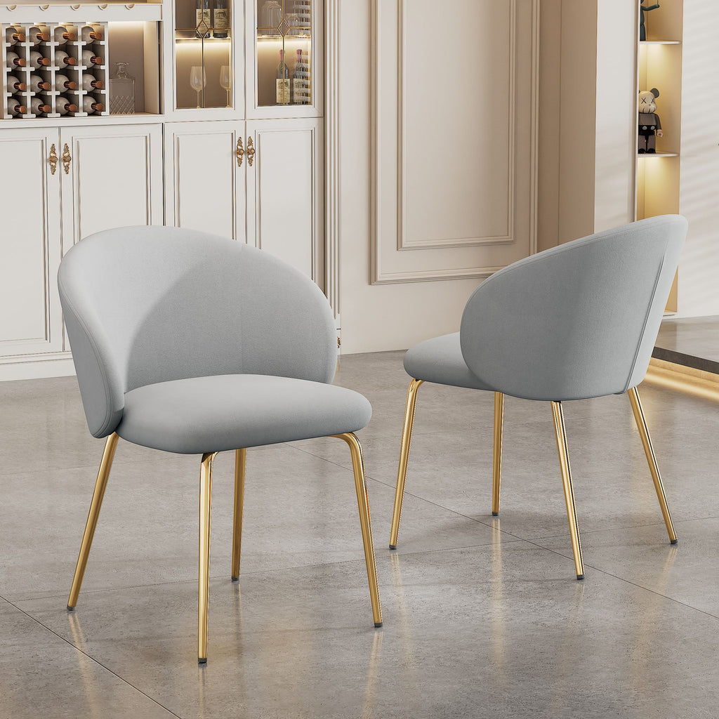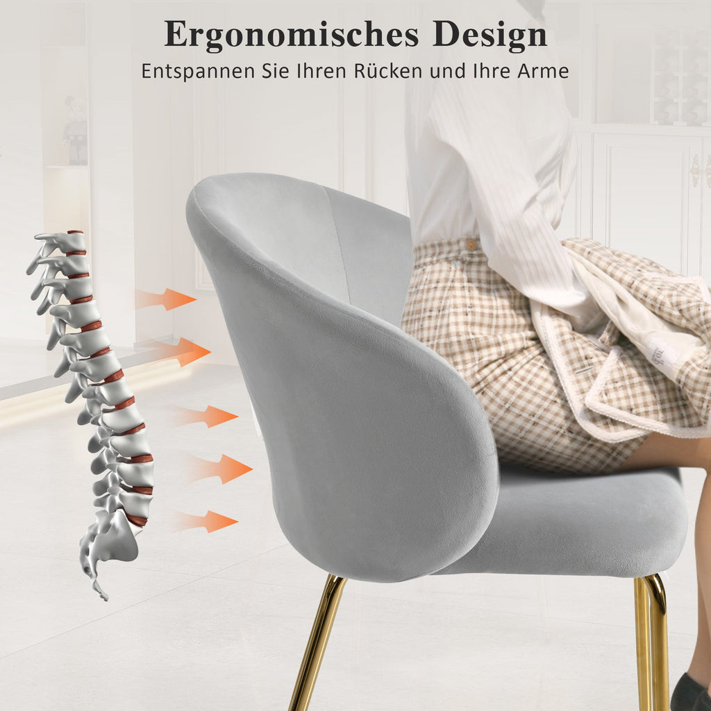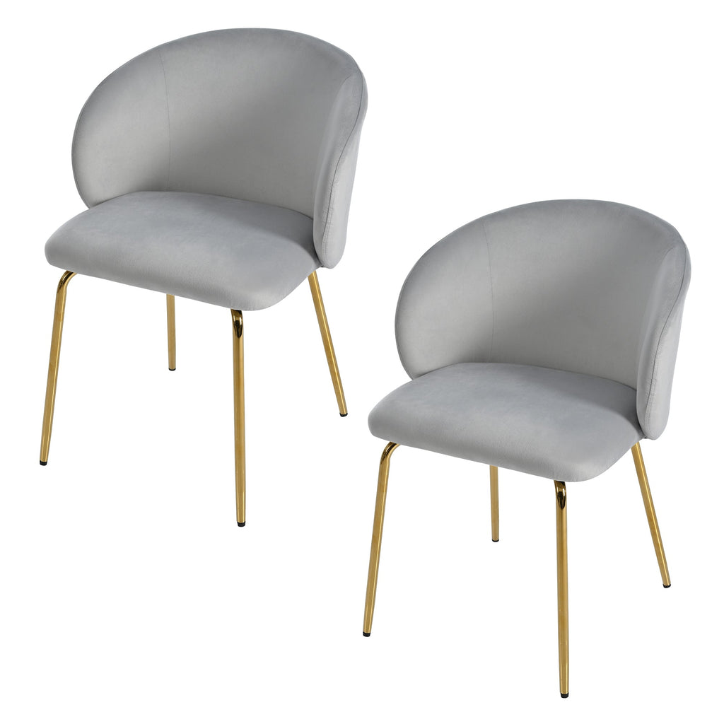 Elegant Dining Chairs with Armrests and Golden Metal Legs, Velvet Grey