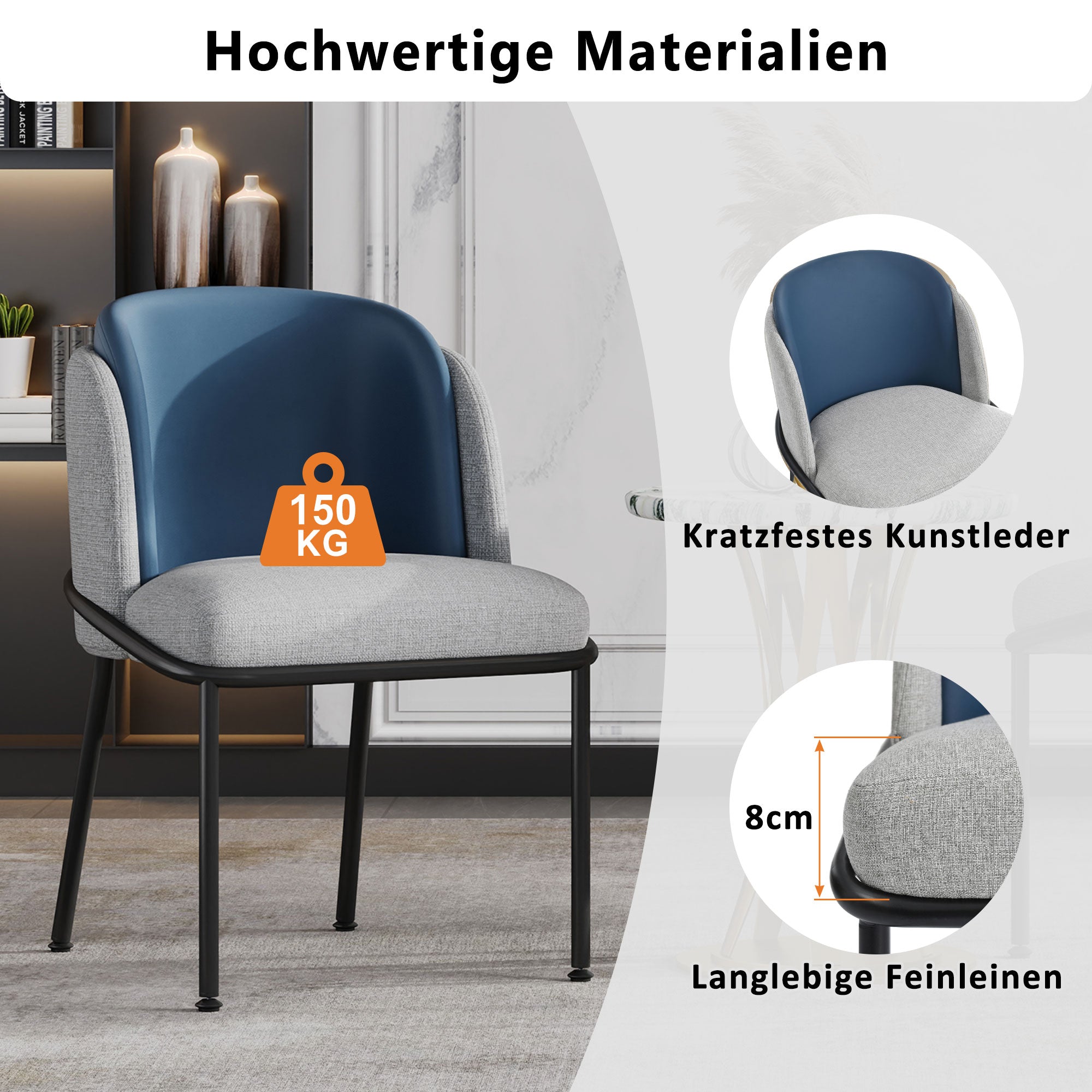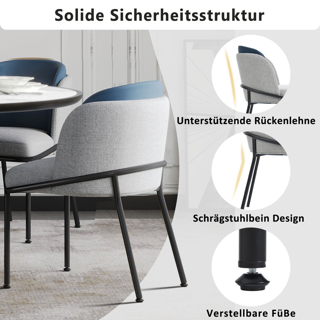 Modern Chair, 2 pcs with Slanted Legs & Adjustable Feet, Gray+Navy