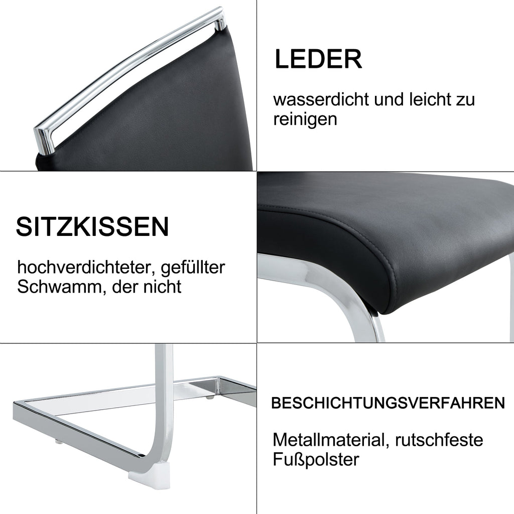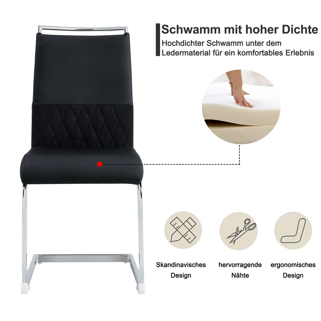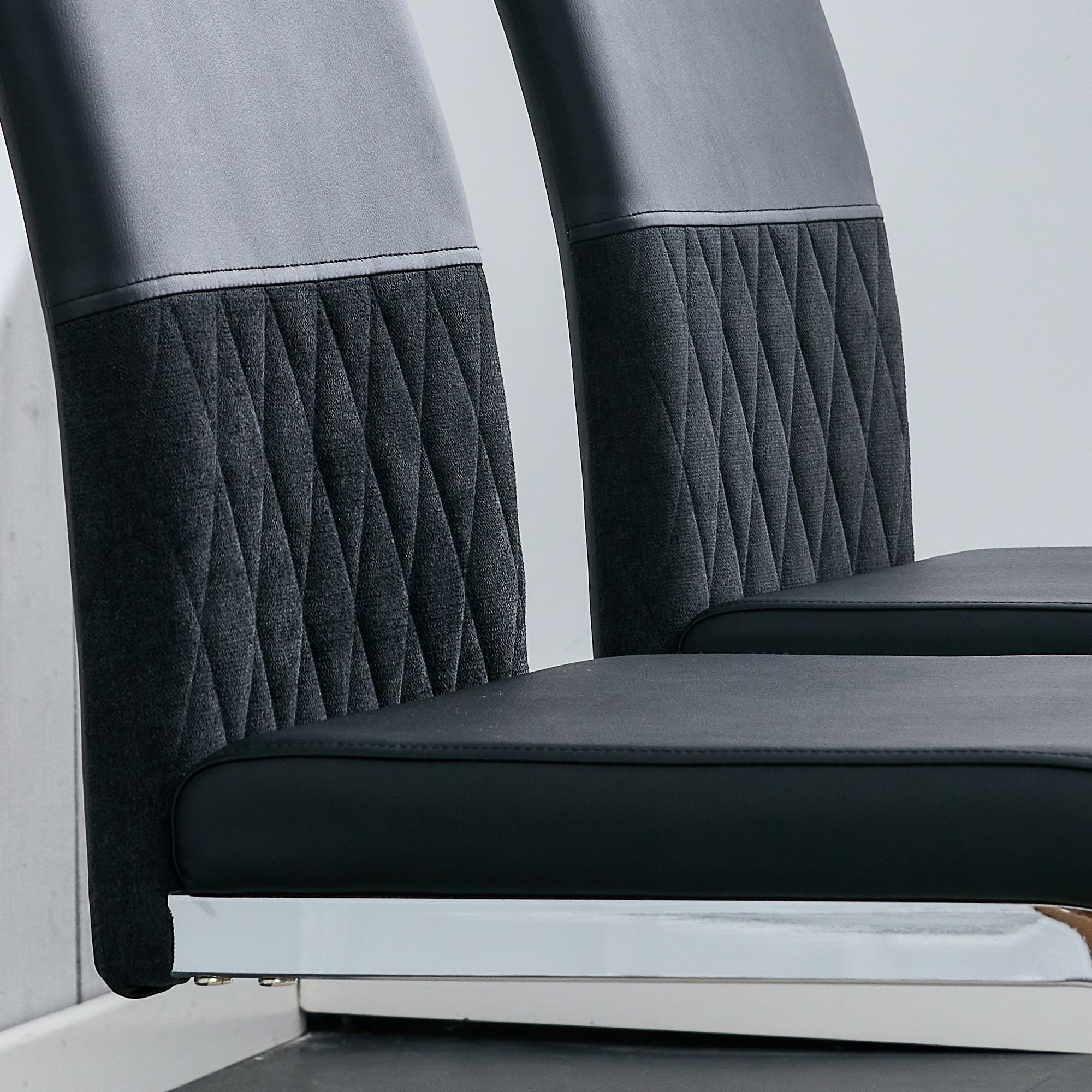 Modern Dining Chairs Set of 2, High Back Upholstered Side Chair, PU Leather and Linen, Black