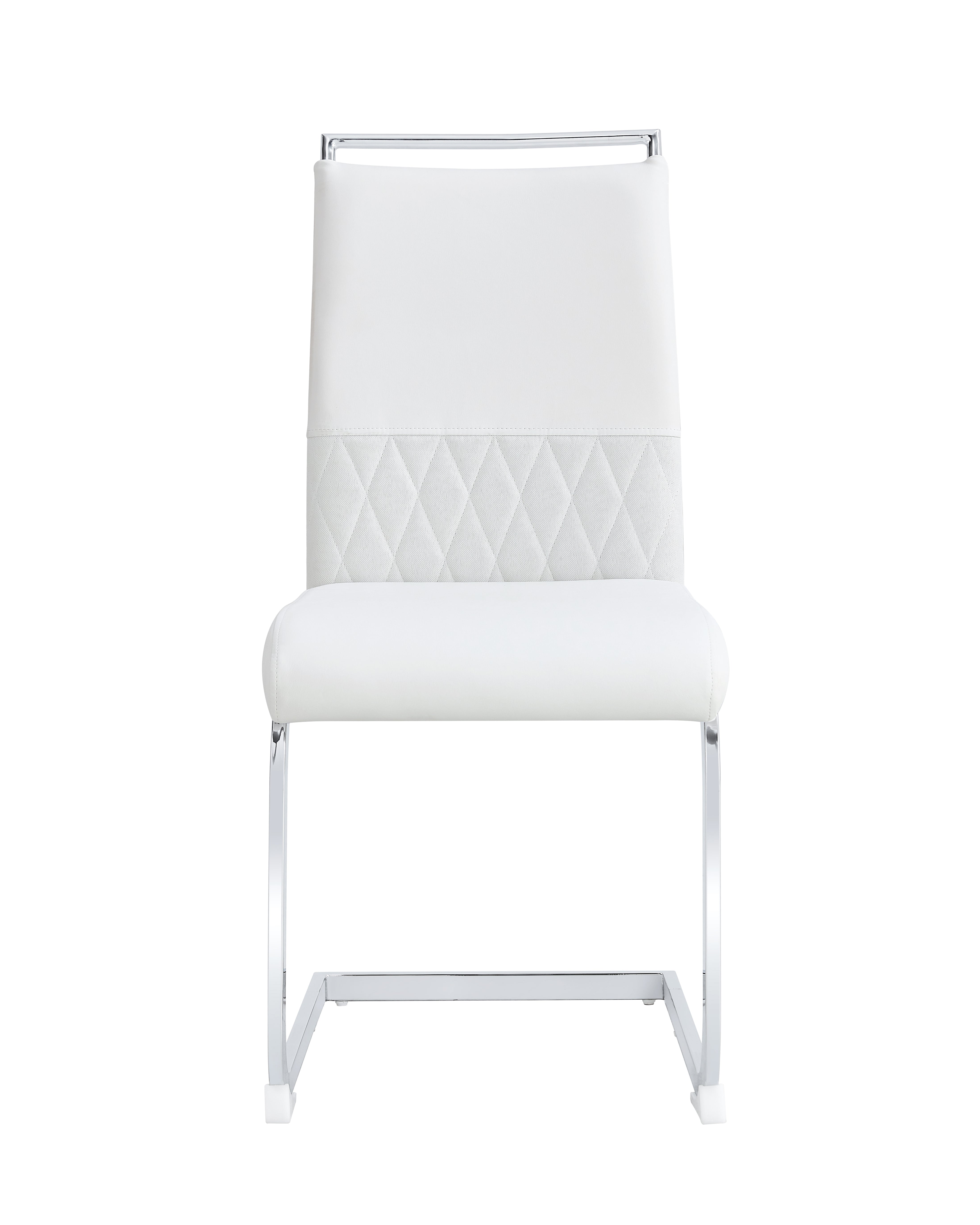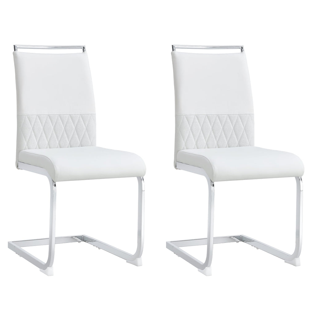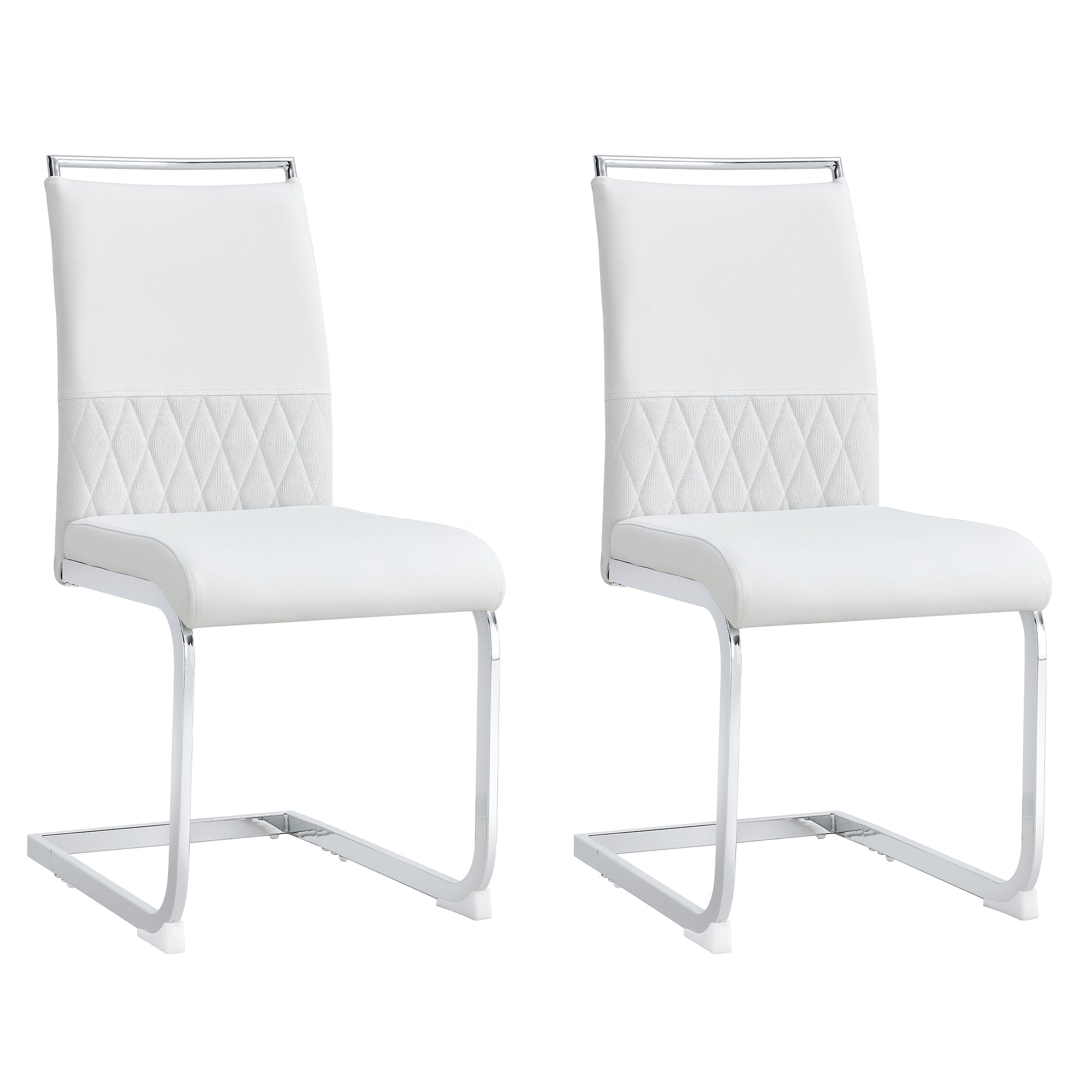 Modern Dining Chairs Set of 2, High Back Upholstered Side Chair with Horizontal Stripe Backrest, White PU Leather and Linen