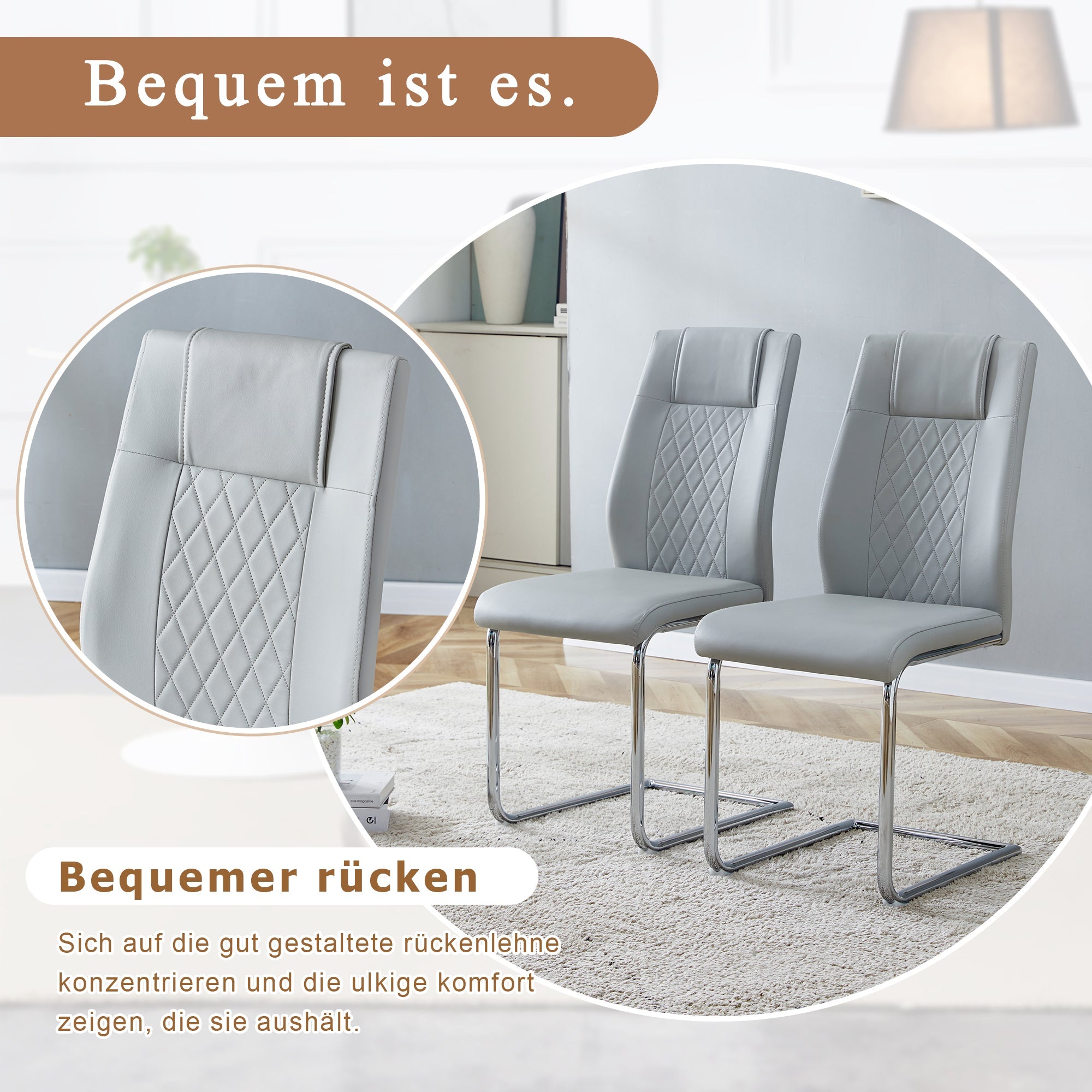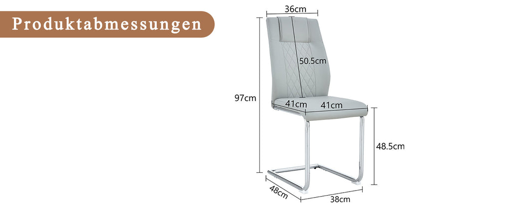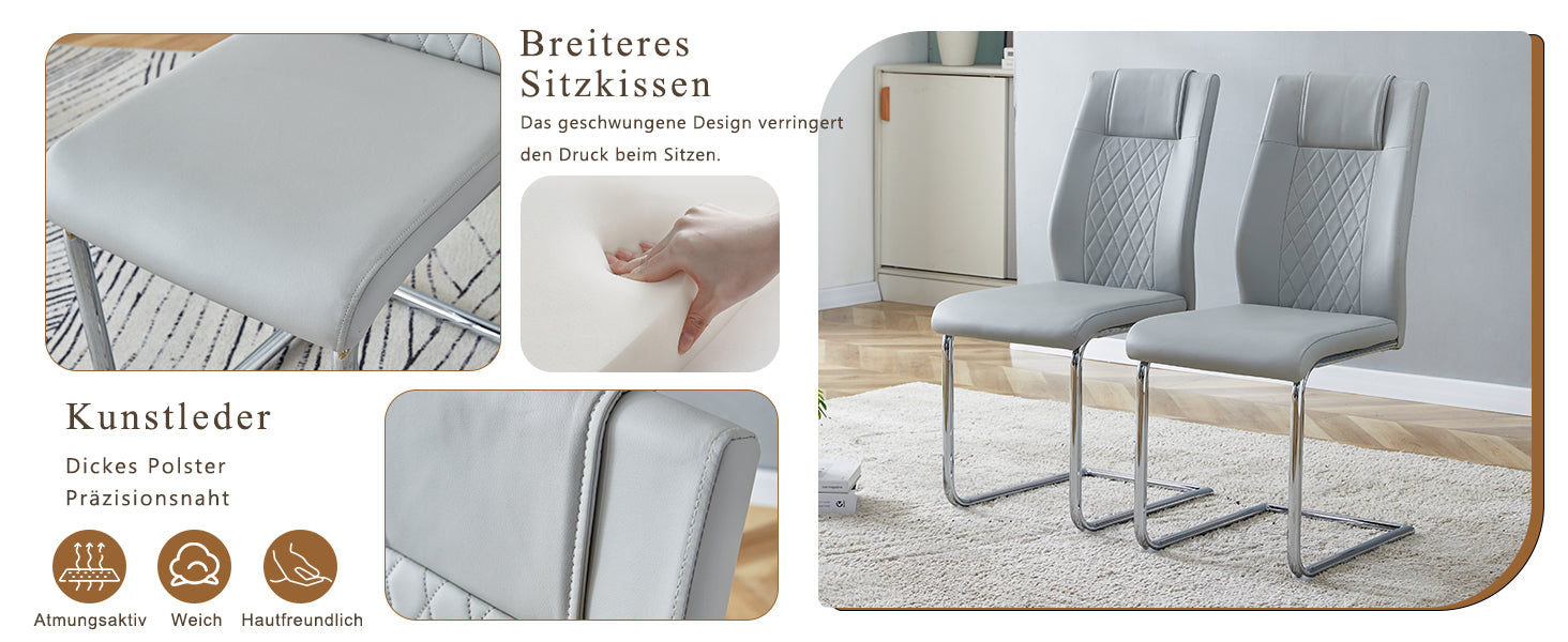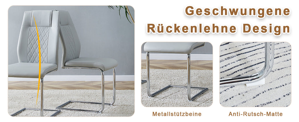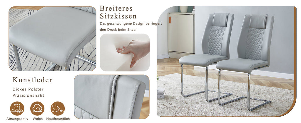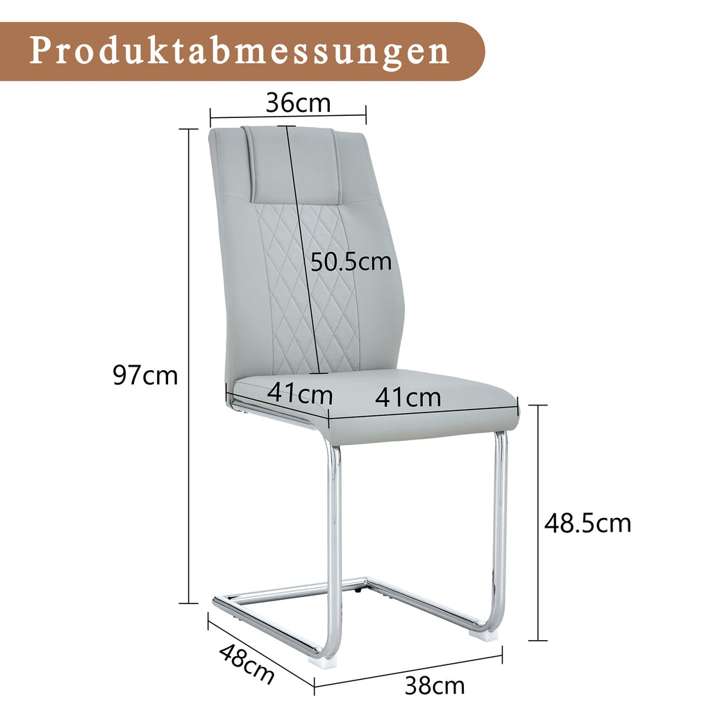 Elegant metal chair legs: The silver metal legs, paired with light gray PU seats and backrests, create a harmonious and unified style, adding a bright touch that reflects the sophistication and luxury of modern home furnishings.