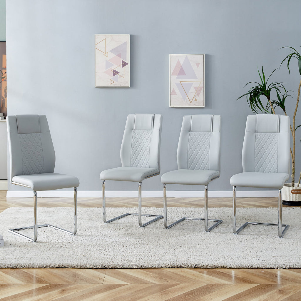 Nordic Dining Chair - Lattice Stitching, Non-Slip, Silver Metal, Light Grey PU
