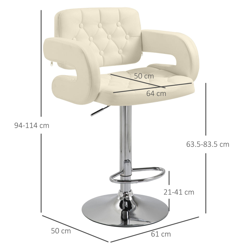 The bold retro design includes sleek faux leather upholstery with a cut-out backrest and button tufting throughout, ensuring this breakfast bar stool makes an impression.