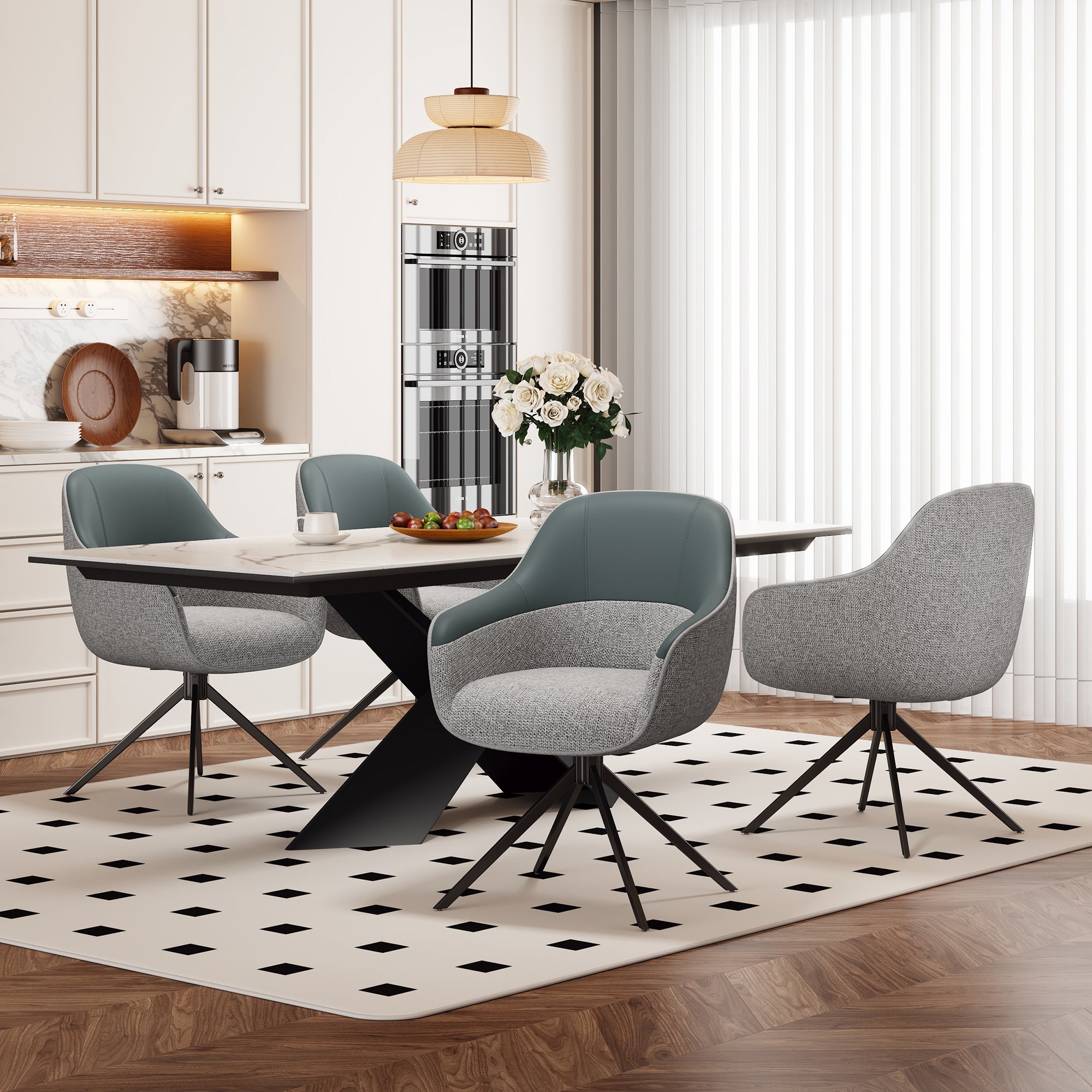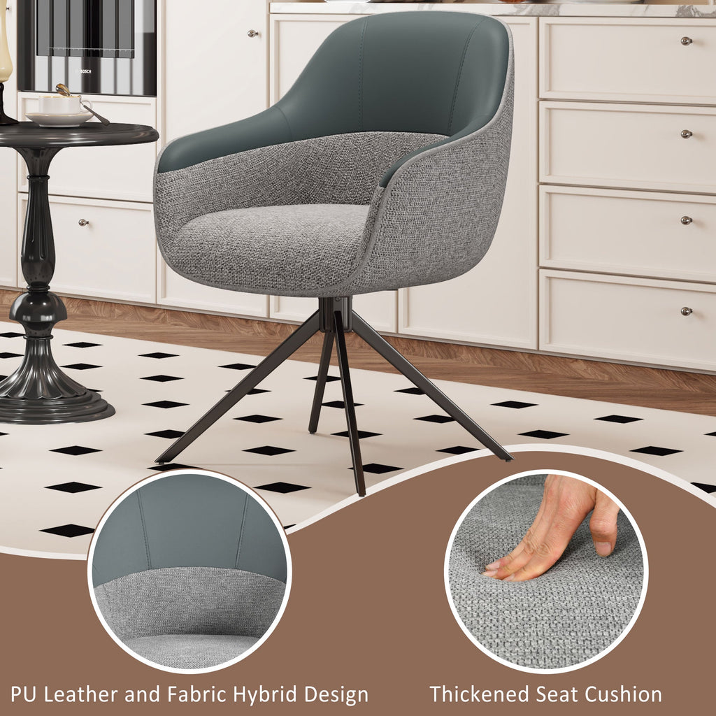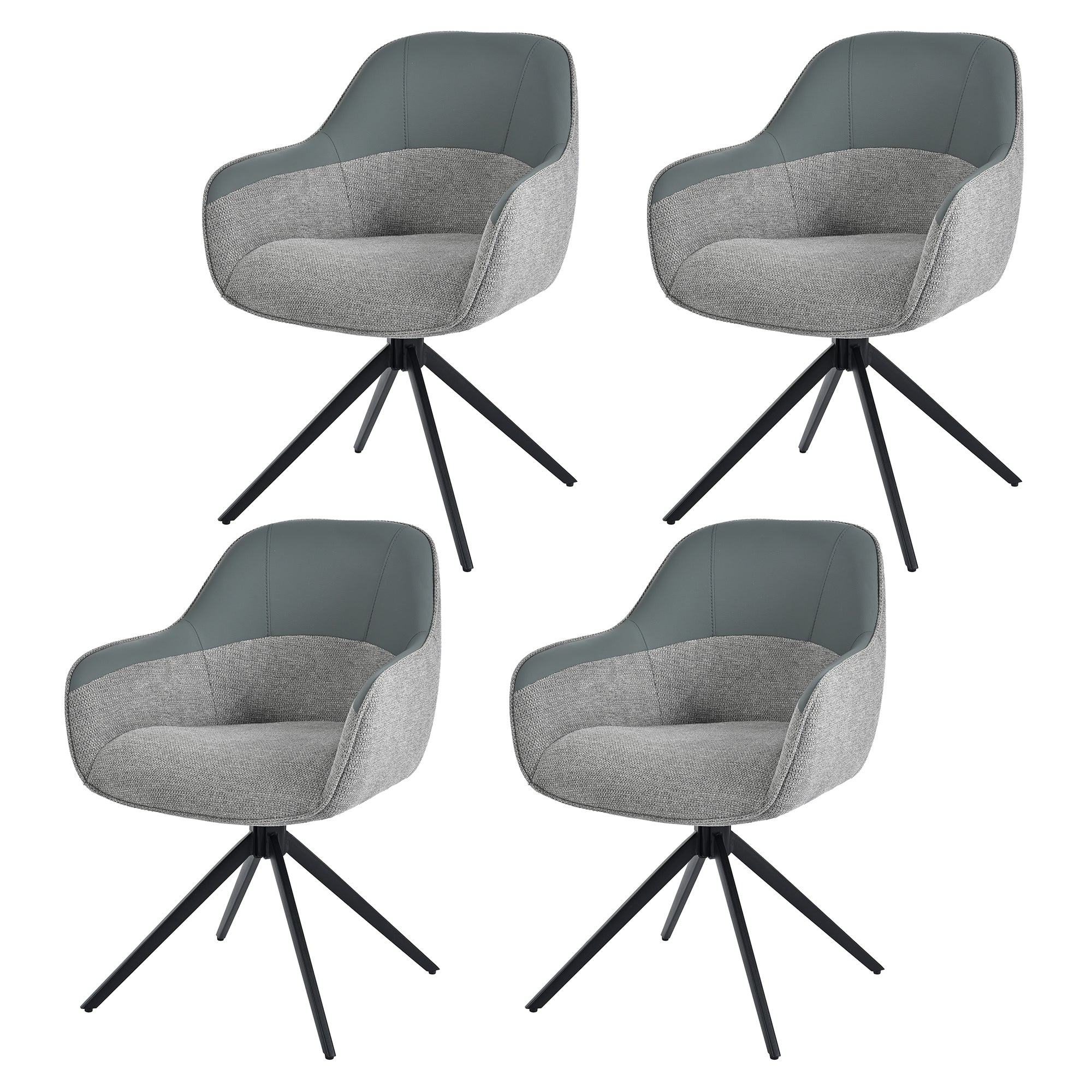 Swivel Dining Chairs, Set of 4, Faux Leather & Fabric, Grey