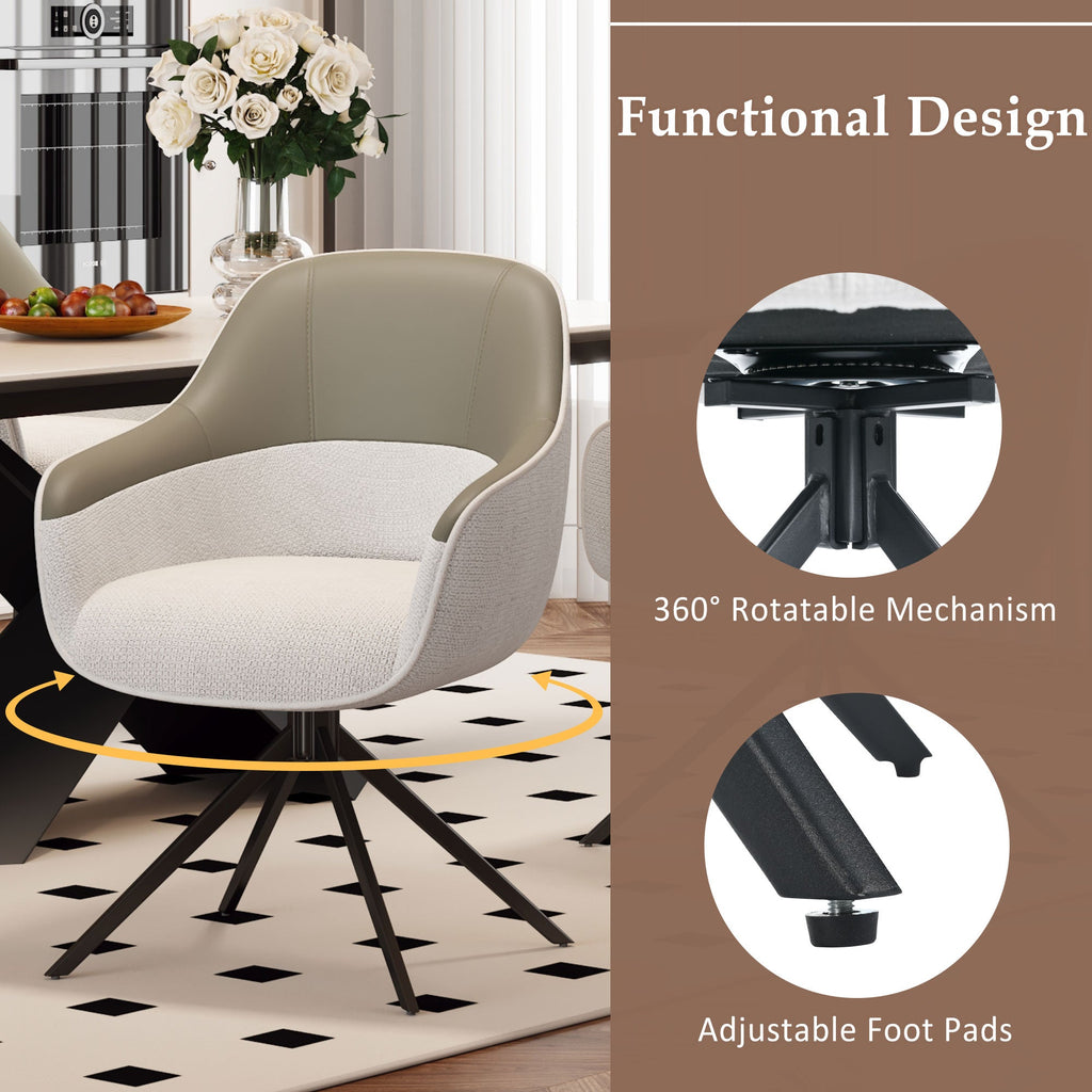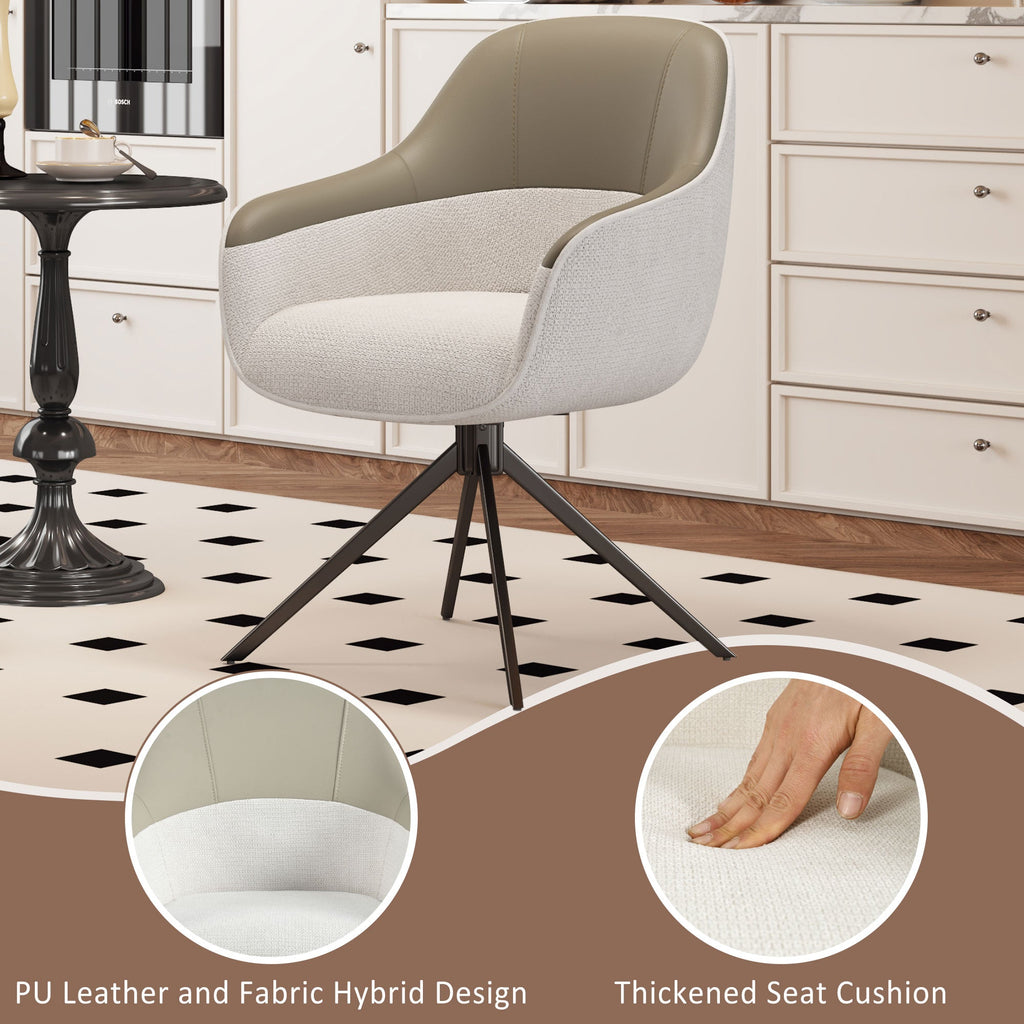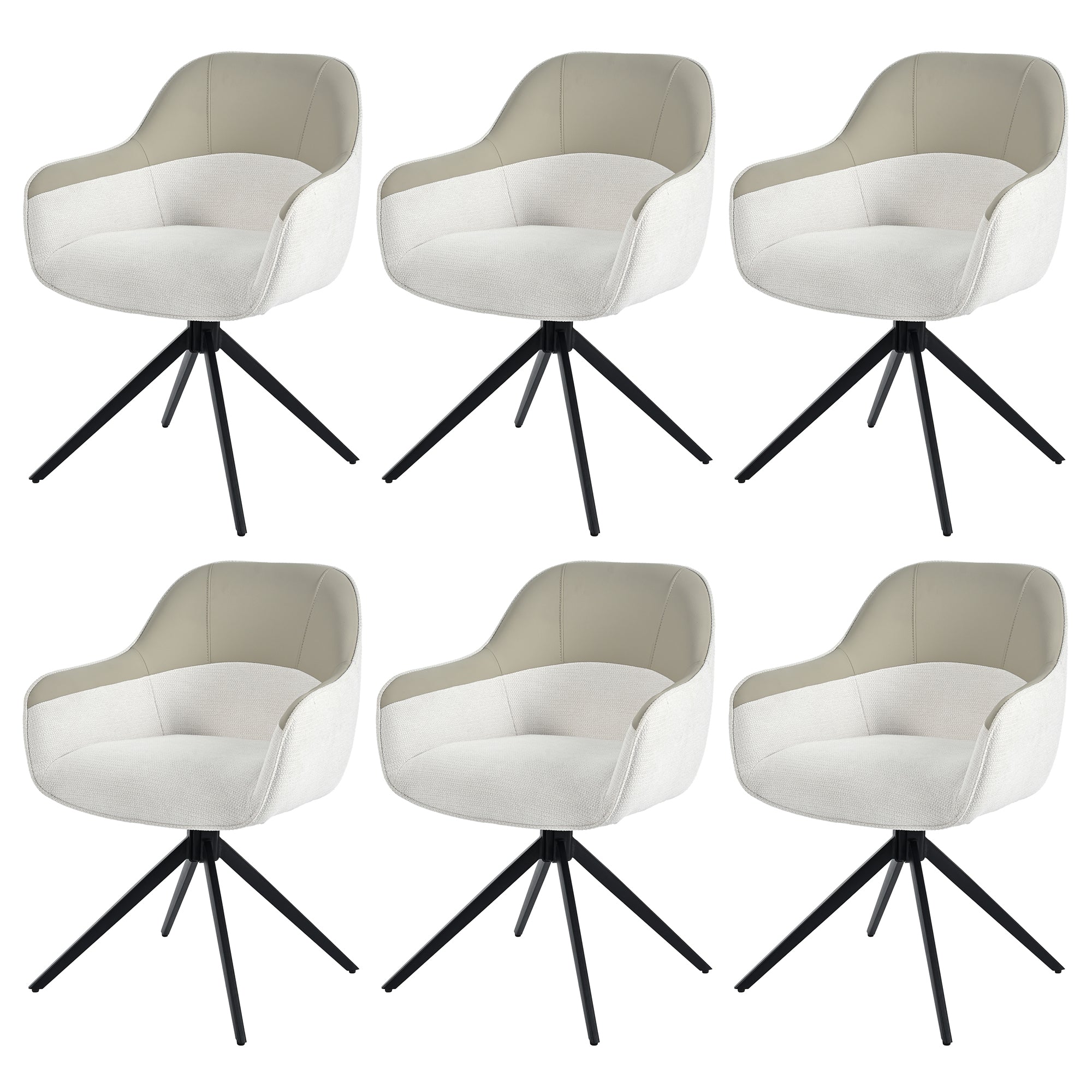 Swivel Dining Chairs, Set of 6, Faux Leather & Fabric, Beige