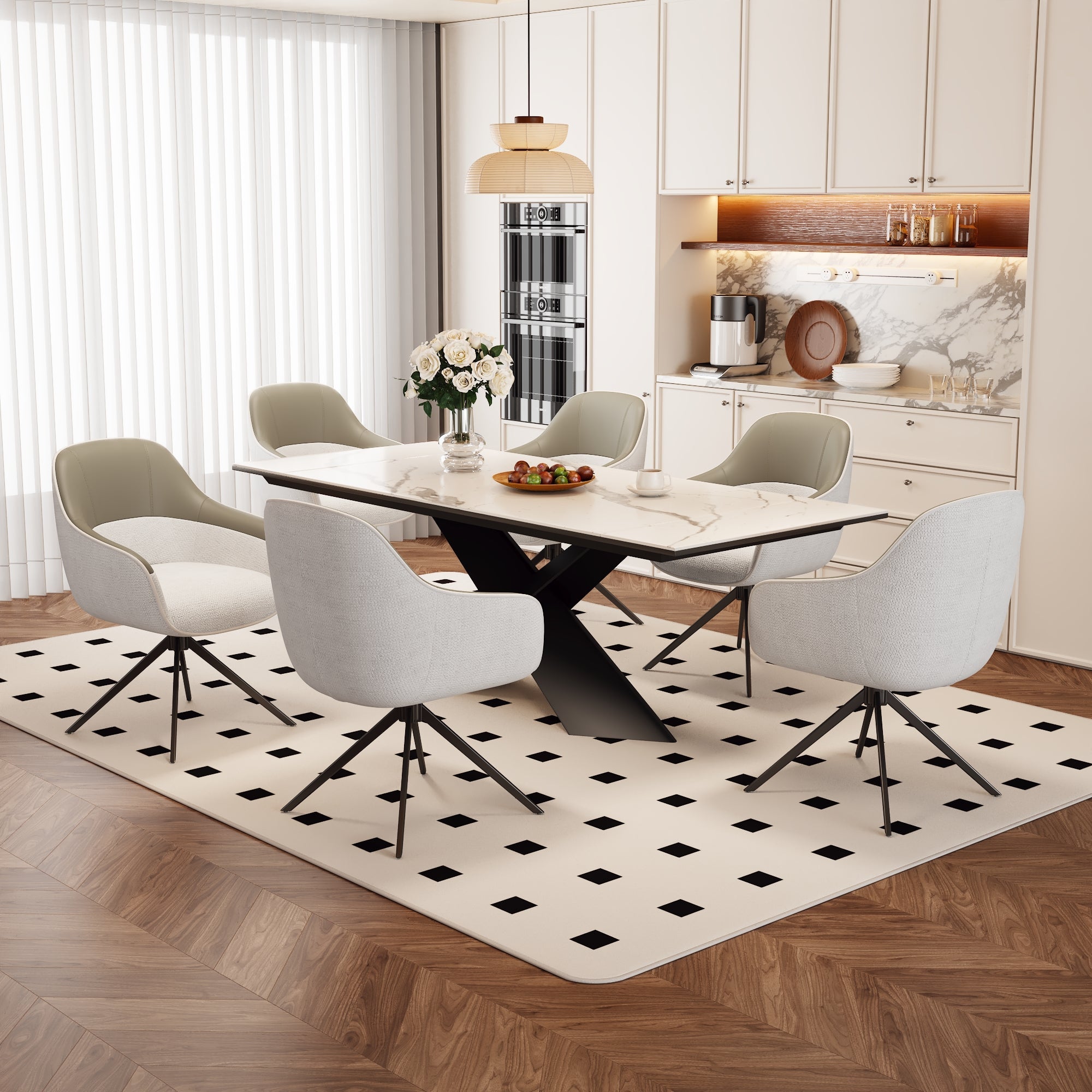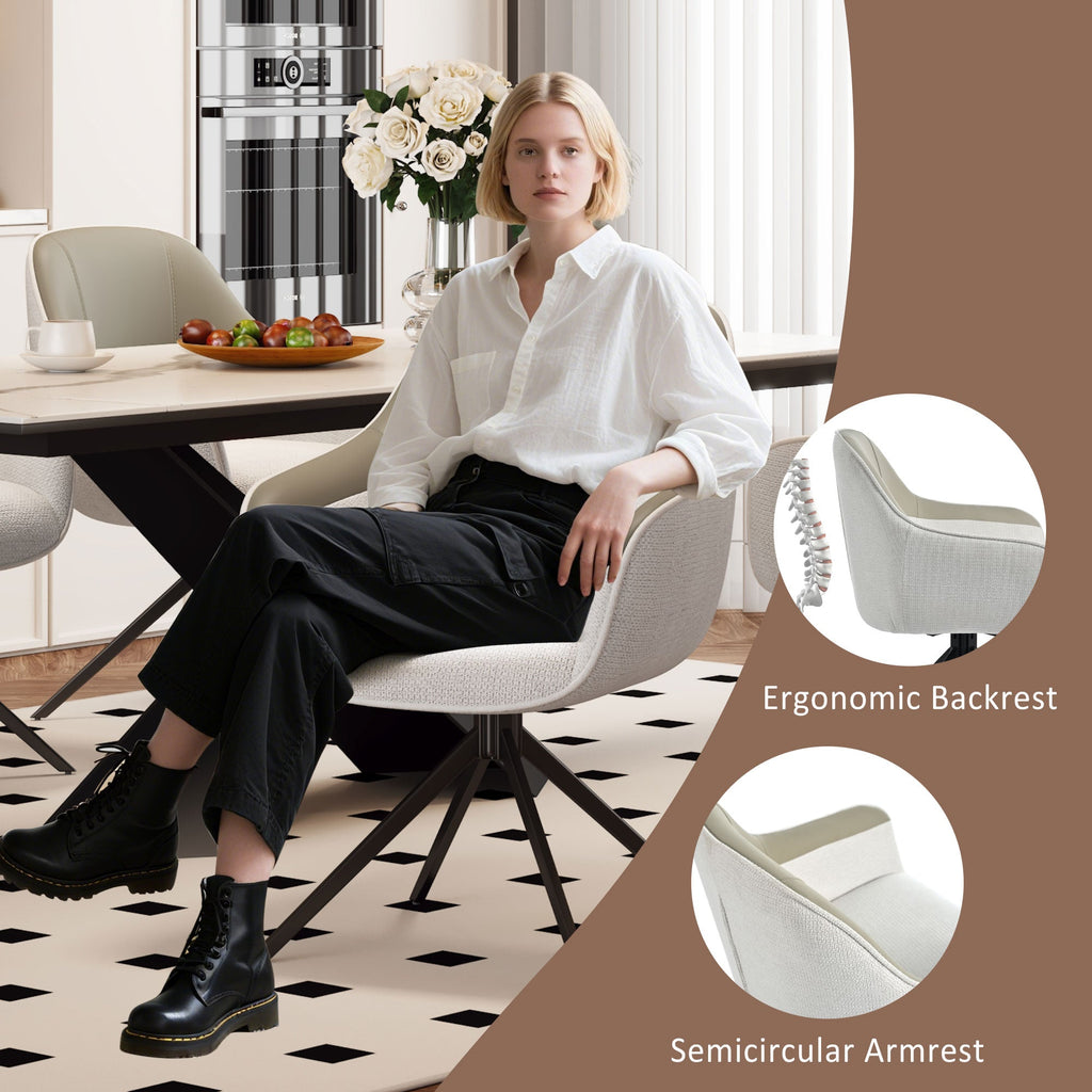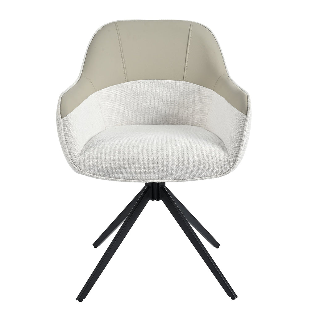 Swivel Dining Chairs, Set of 6, Faux Leather & Fabric, Beige