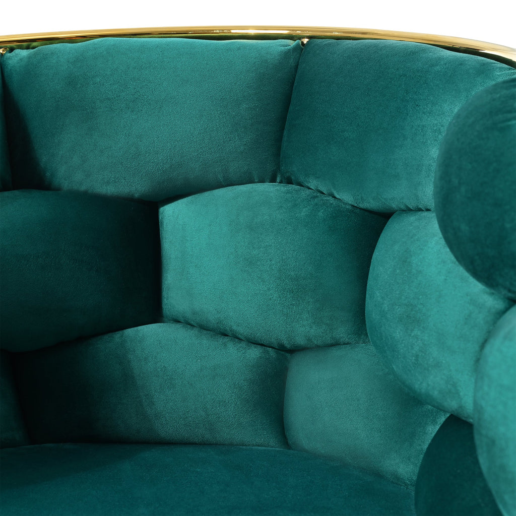 Golden Shine in the Back Frame: The back frame exudes a captivating golden shine, adding a touch of luxury to your room. This velvet chair, with its unique appearance, becomes a symbol of style and elegance.