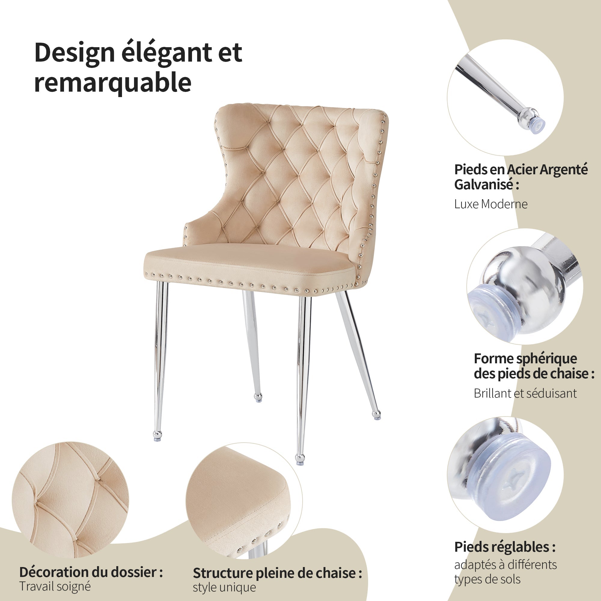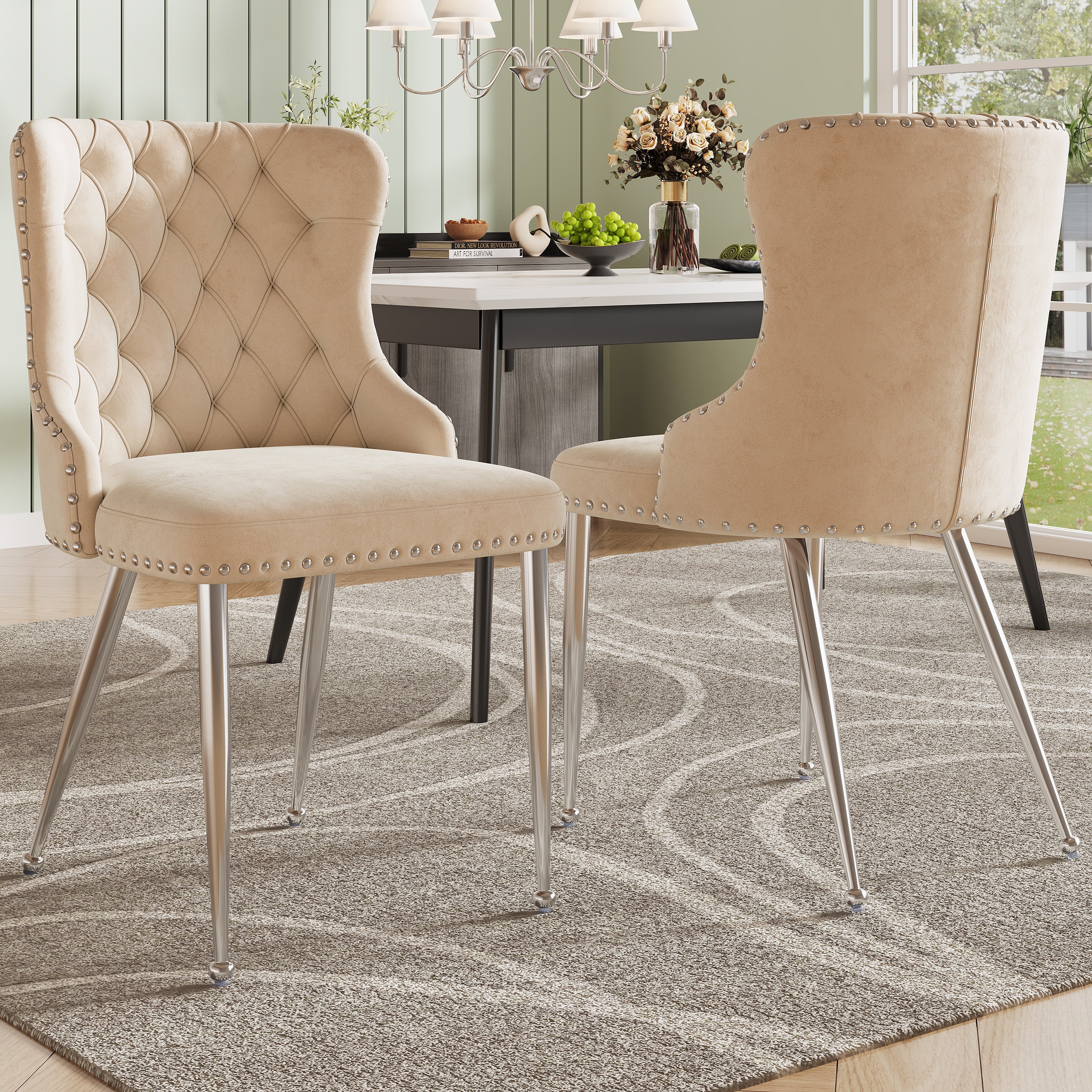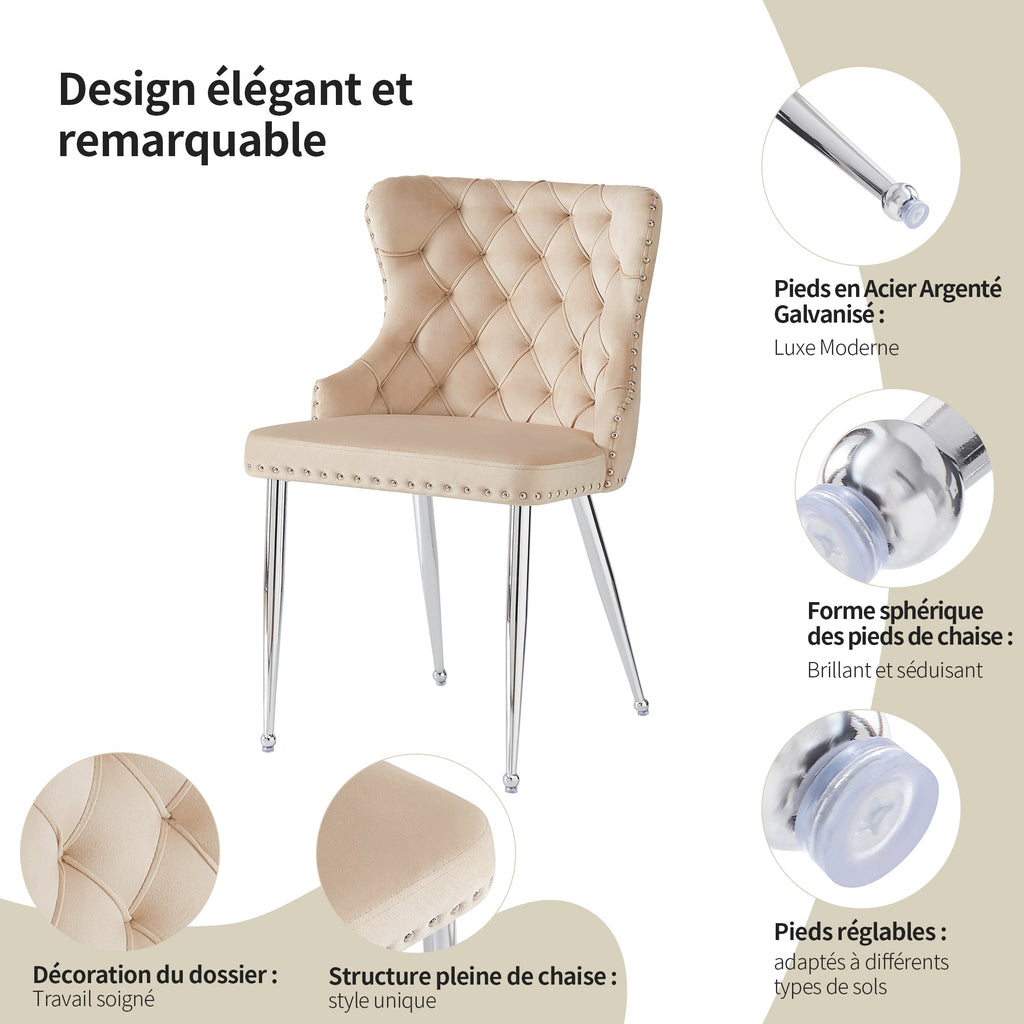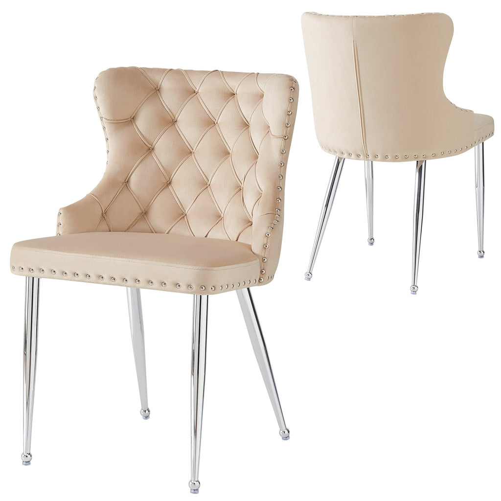 Velvet Dining Chair (2-piece), Ergonomic with Adjustable Foot Design, Silver Legs