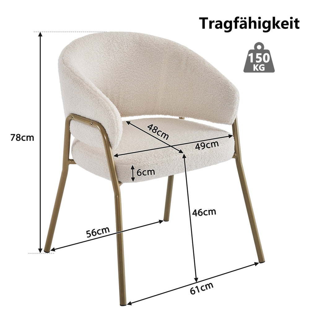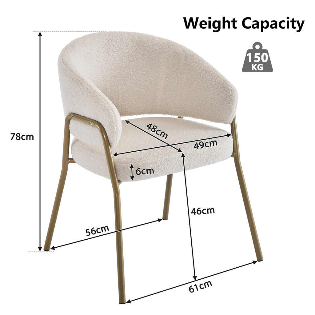 White Dining Chair - Modern, Lamb Velvet, Gold Finish