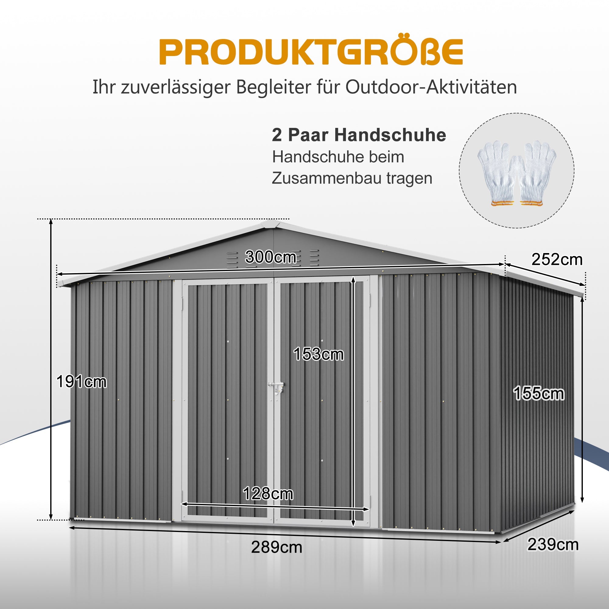 Garden Shed XXXL 300x252x191 cm Pitched Roof Storage Metal, Grey