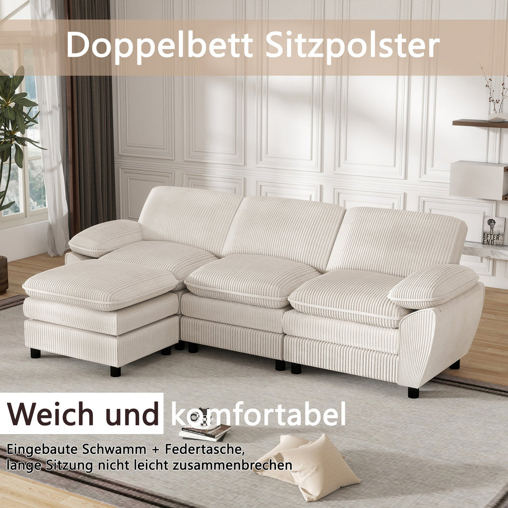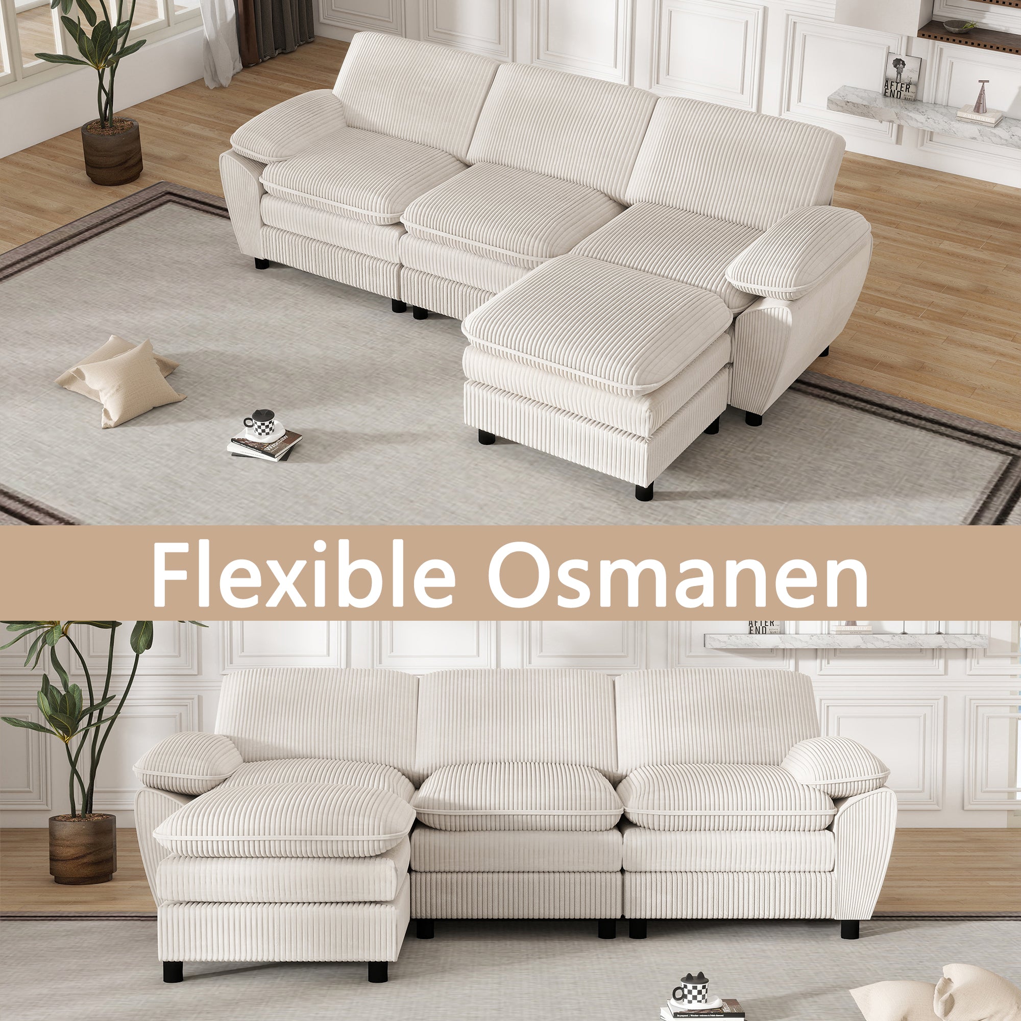 Modular Combo Sofa, Double Cushion Velvet with Removable Ottoman