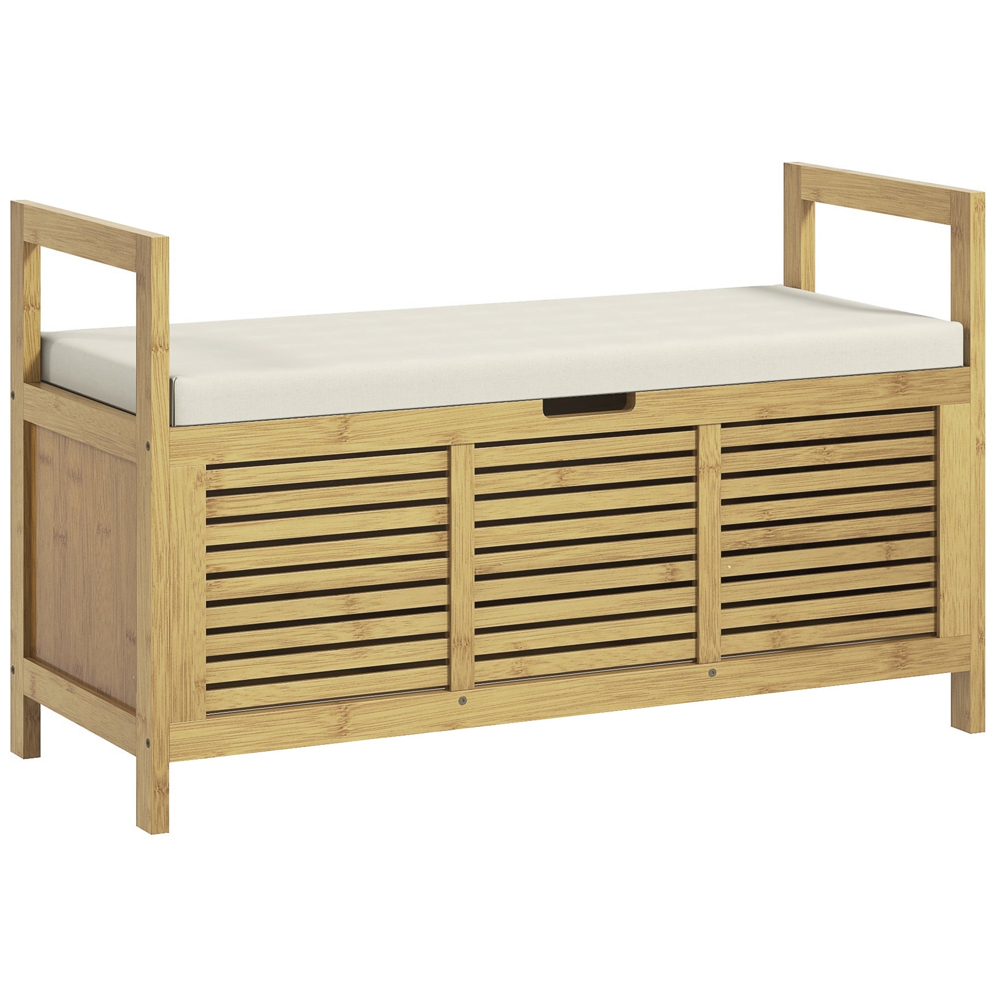 Shoe Bench with Hinged Lid and Rack, Hallway Storage, 100 x 40 x 60 cm, Bamboo
