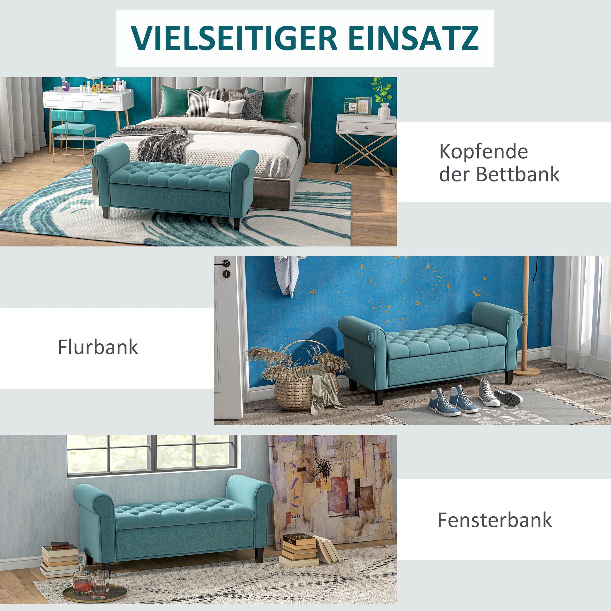 Upholstered Bench with Storage, 120 kg Load Capacity, 126x48.5x47 cm, Green Velvet Look