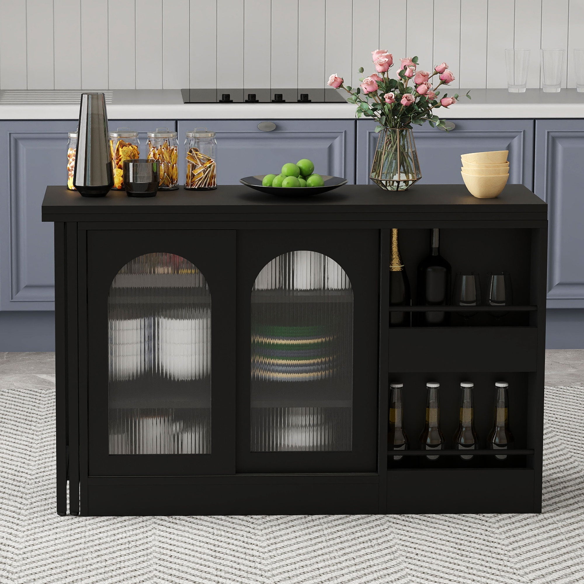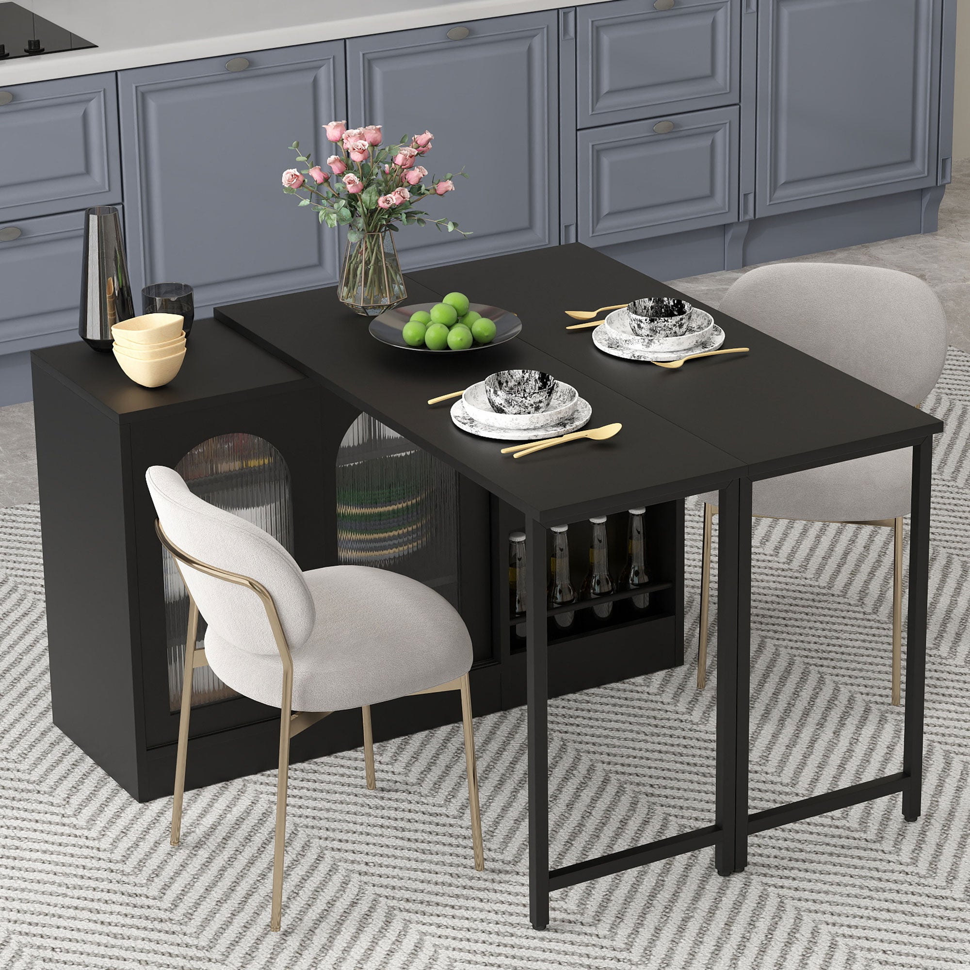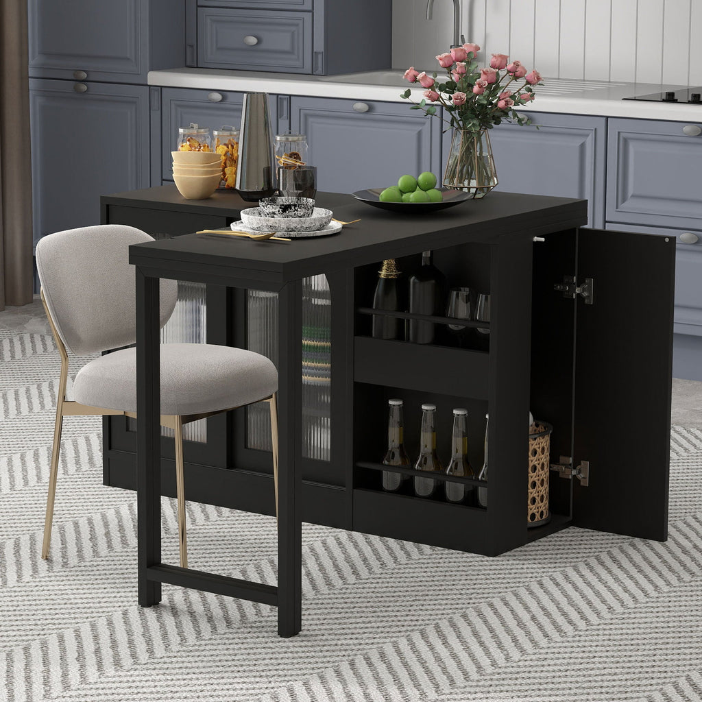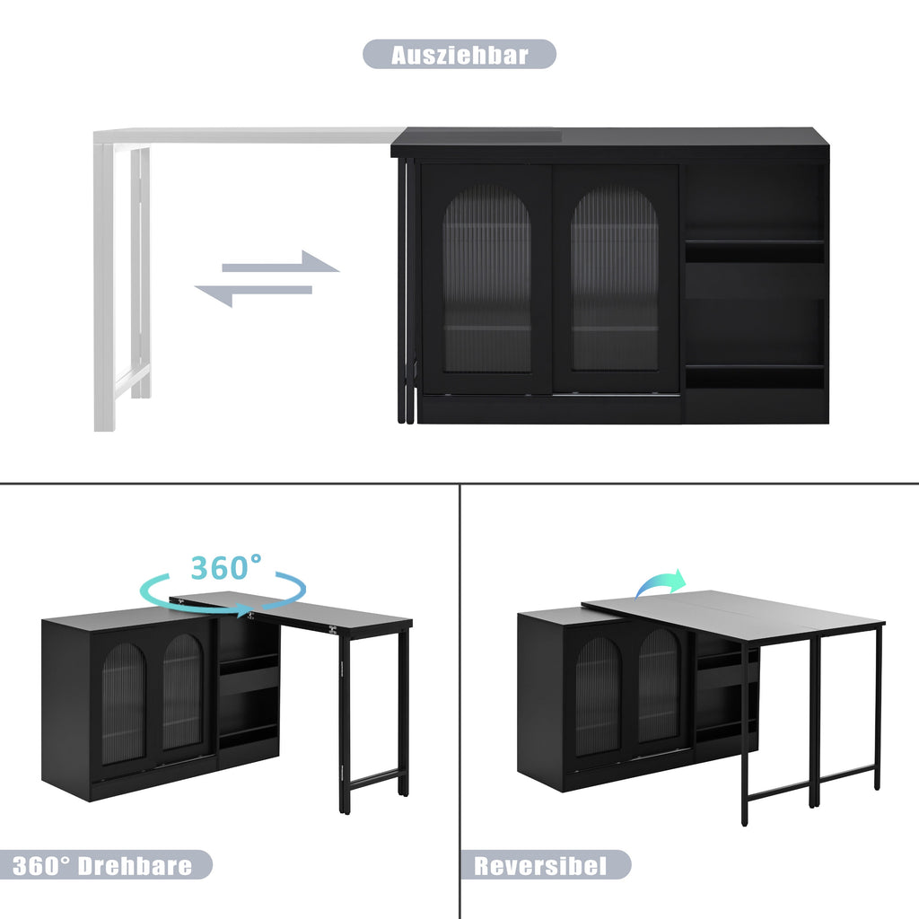 Bar Table, Extendable 360° Rotating with Storage & Glass Cabinet, Black