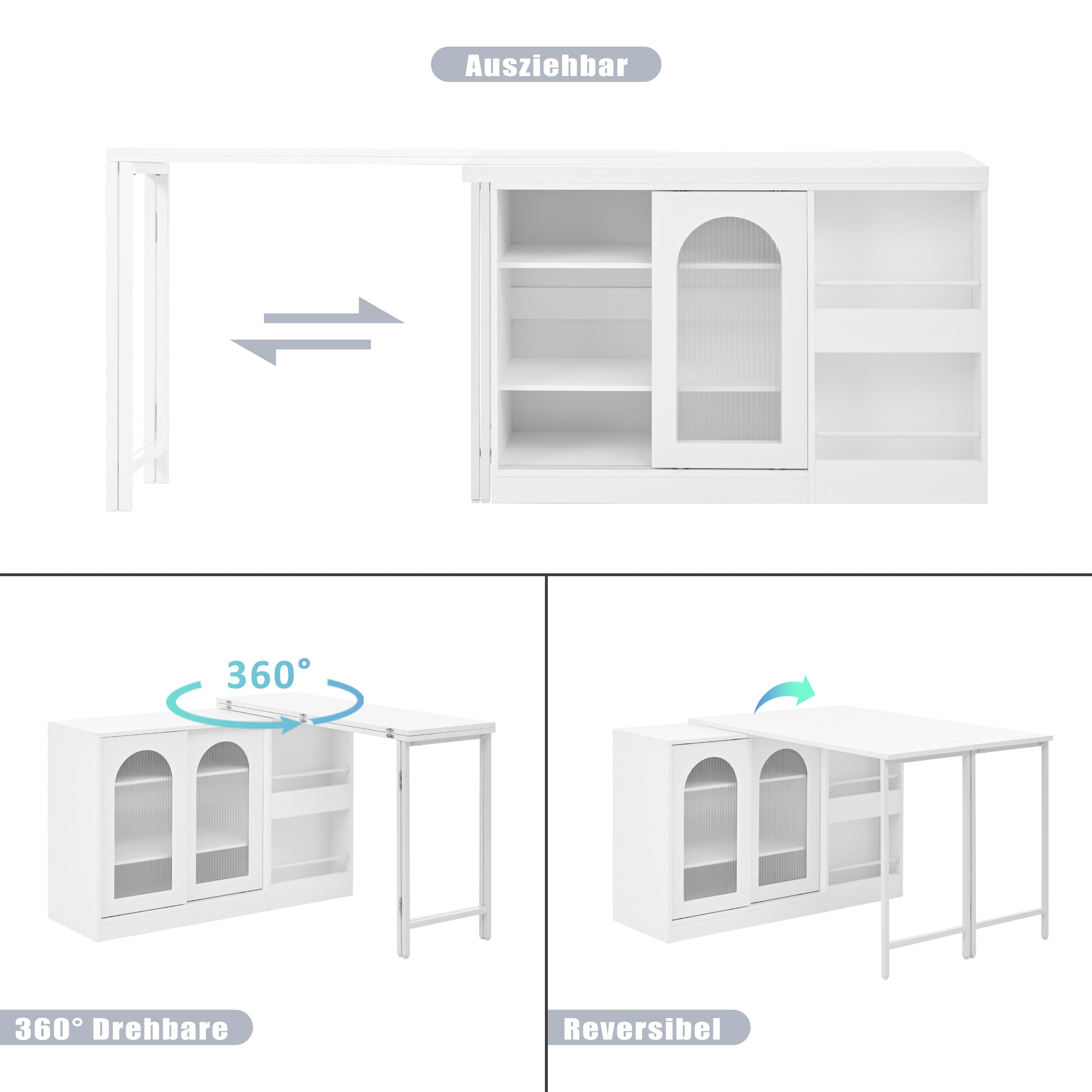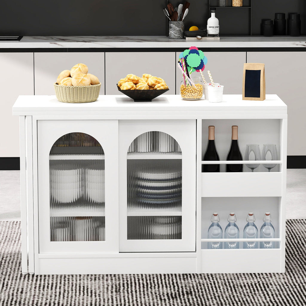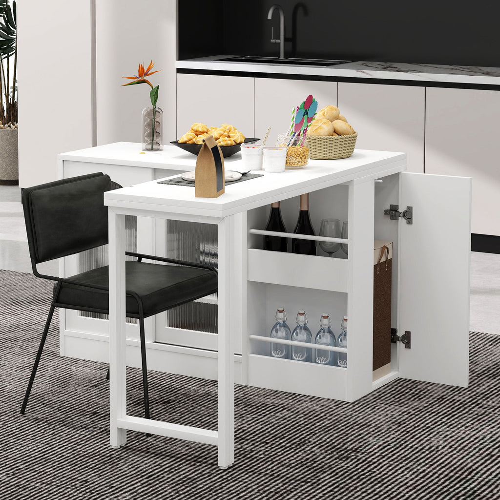 Bar Table, Extendable 360° Rotating with Storage & Glass Door, White