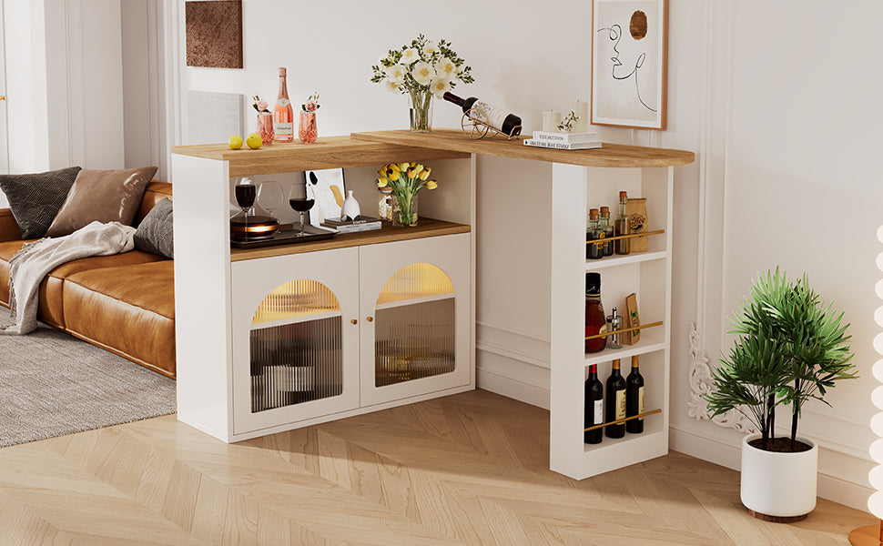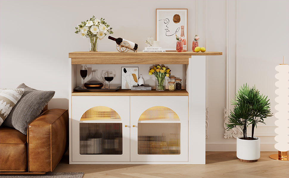 Multi-Tier Storage Concept: A three-tier storage system has been ingeniously designed on the side of the bar, providing additional storage space for your home. You can easily store your glasses, food, and other items here. This not only ensures greater organization but also offers your items a unique and elegant display.