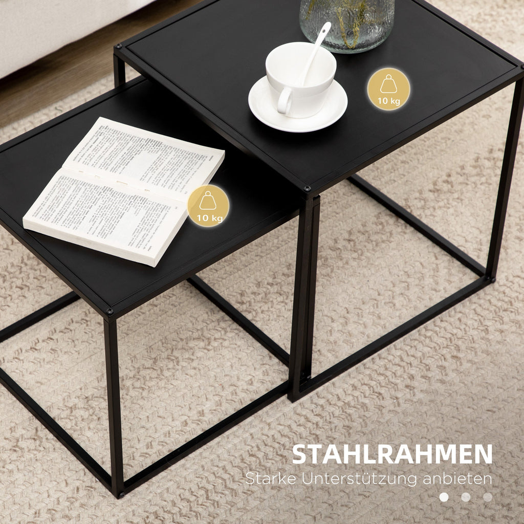 Stylish design: The simple, modern design of this coffee table set combines a sturdy steel frame with an elegant, square tabletop, lending your living space a timeless aesthetic.