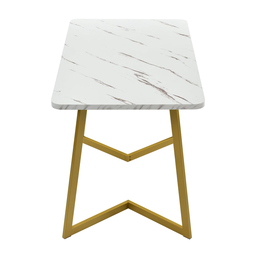 Dining Table, 117x68cm Rectangular with Modern Marble Pattern & Metal Frame, White/Gold