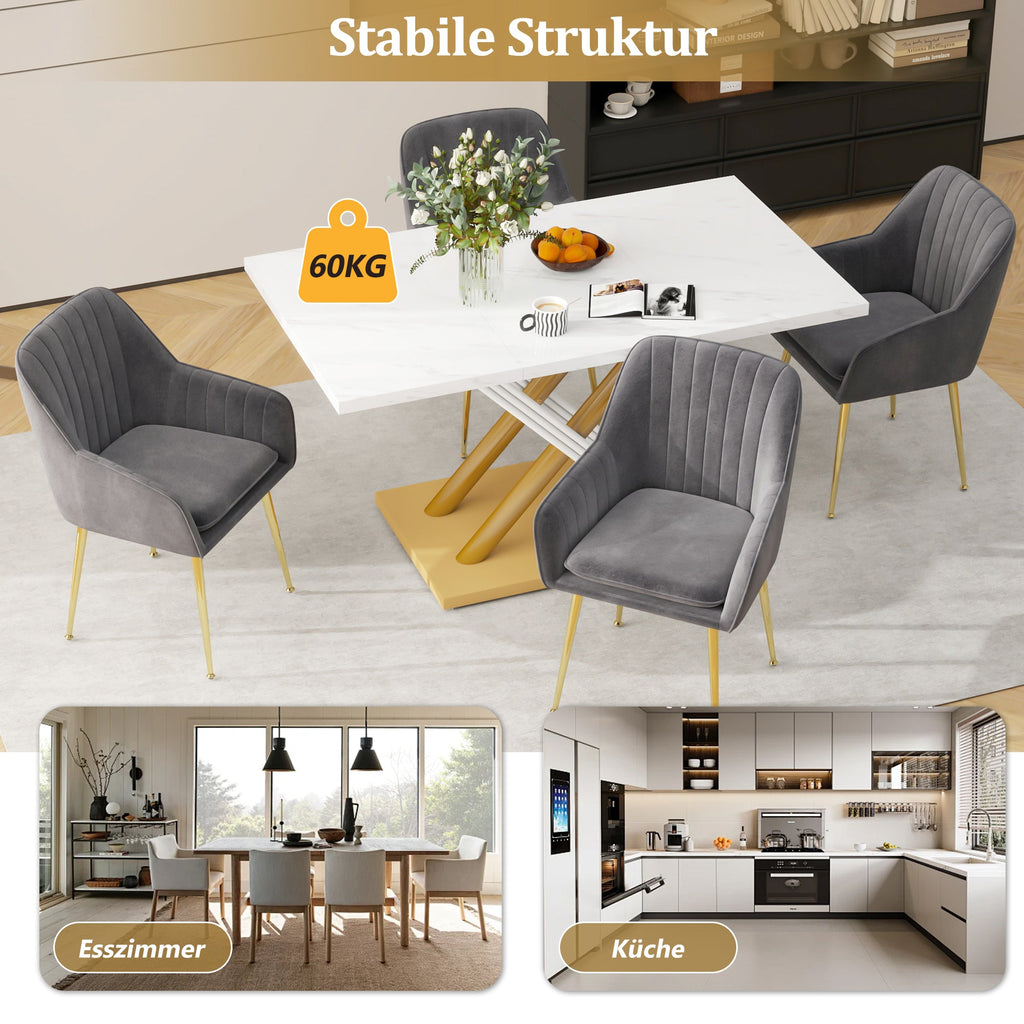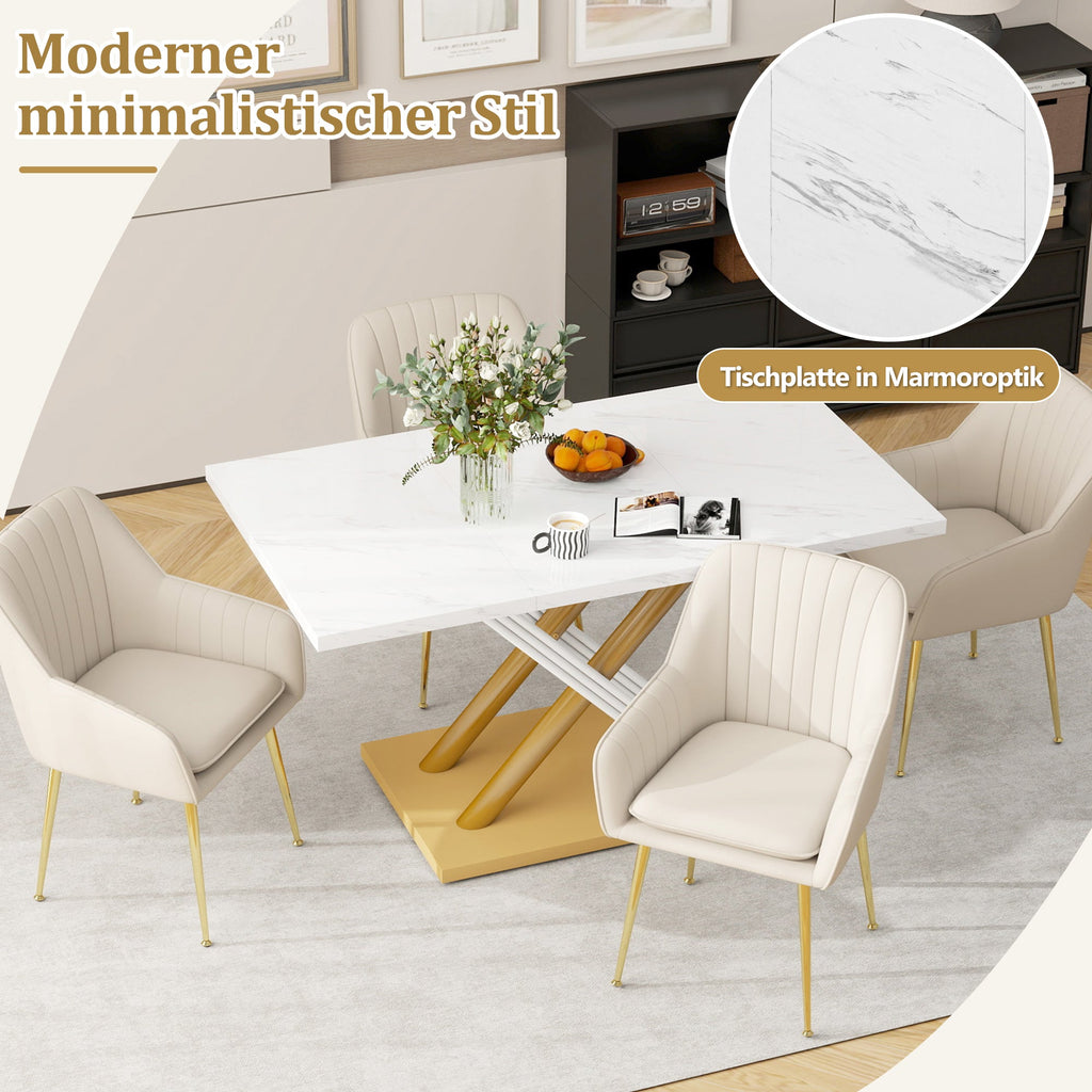 Clean lines and an elegant design highlight the marble-effect tabletop, combining style, quality, and functionality. The white dining table surface is smooth, scratch-resistant, and easy to clean—ideal for various interior design styles, creating a harmonious atmosphere in your dining room or kitchen.